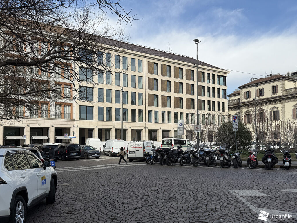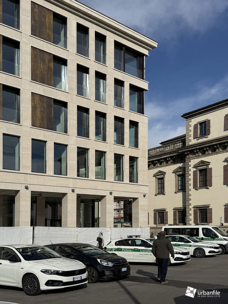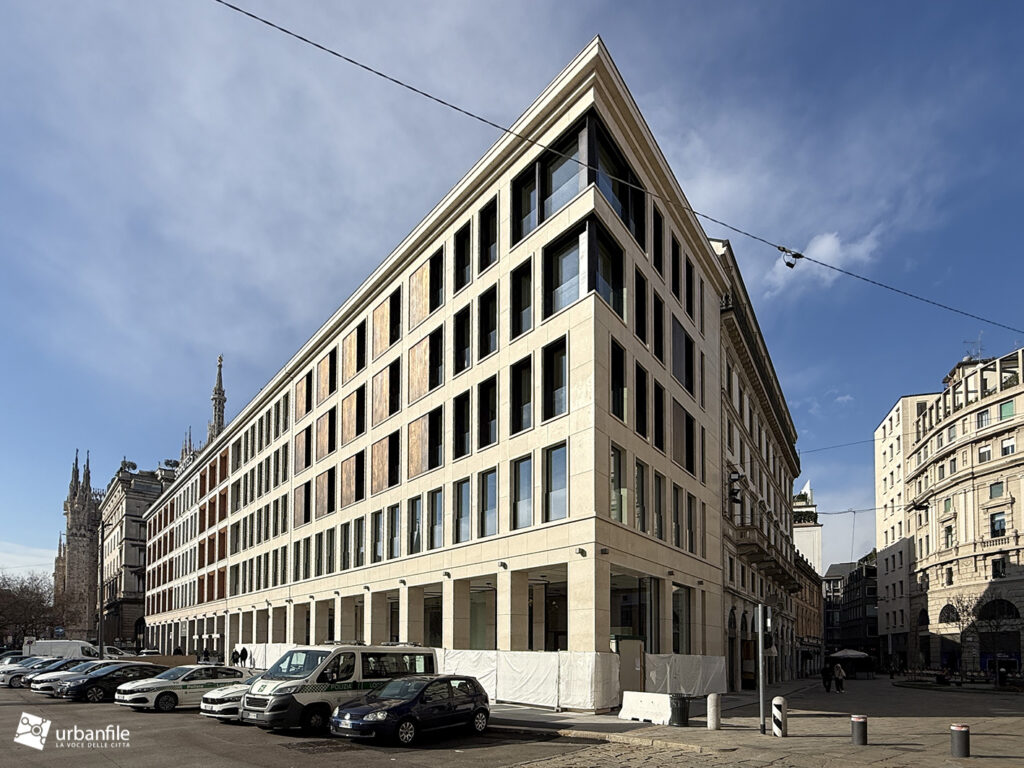 Che dire, l’edificio si colloca perfettamente sul versante settentrionale della piazza, integrandosi anche col seicentesco Palazzo del Capitano pur mantenendo un aspetto moderno. Certo, la memoria storica è andata completamente persa, però risolve finalmente quest’angolo di Milano che non aveva più forma.