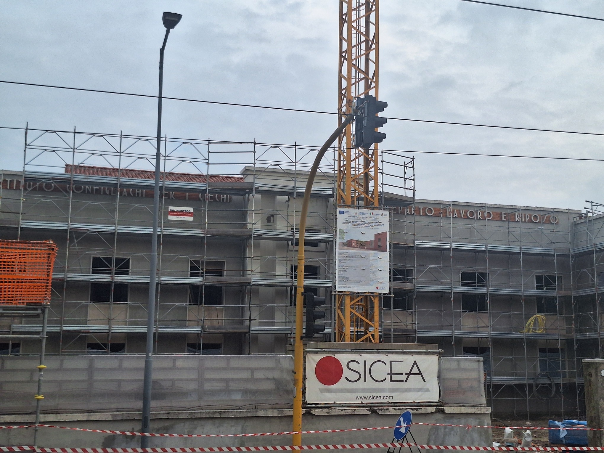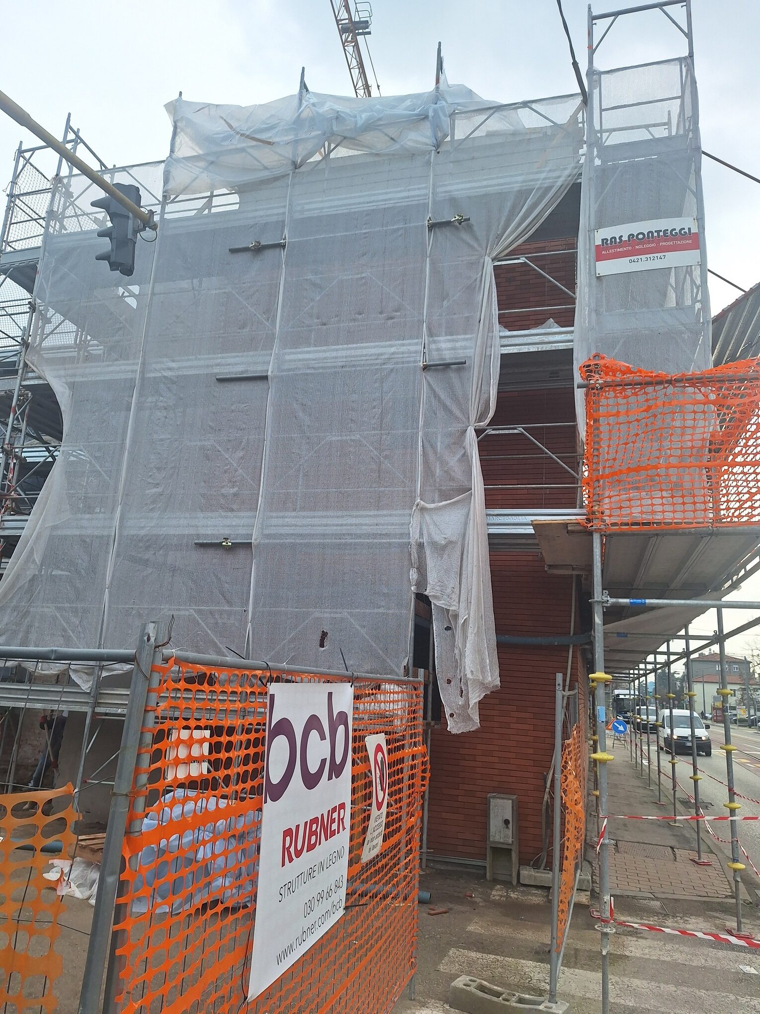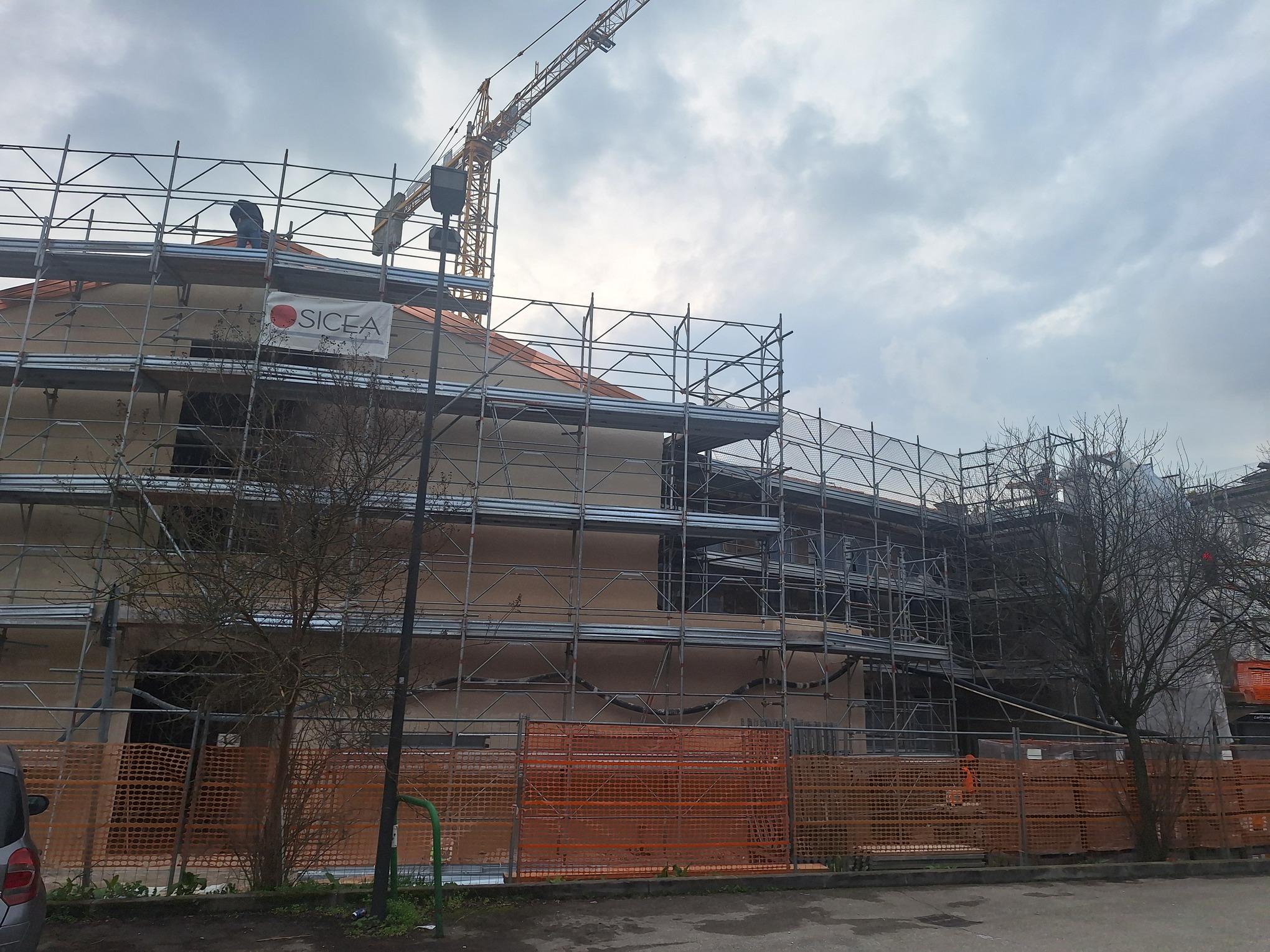 Sono completate tutte le demolizioni preventive delle strutture non facenti capo alla riqualificazione dello stabile. Inoltre, è stato rimosso tutto il paramento in mattoni originario ed è in atto la riproposizione con un nuovo paramento sempre dello stesso colore e stile. Infine, sono stati realizzati il tetto e le guaine, così da permettere la realizzazione delle prime lavorazioni interne.