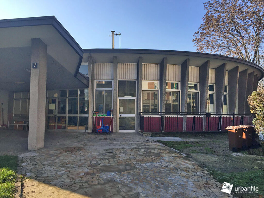Anche l’edificio per la Scuola Materna Comunale di via Console Marcello 7, venne realizzato nel 1961sempre da Arrighetti. Qui l’architettura di Arrighetti ha escogitato la forma circolare posta al centro di un giardinetto recintato. Anche in questo caso, forse, ci vorrebbe un po’ più di rispetto per il luogo, visto che il porticato secondario è utilizzato come deposito.