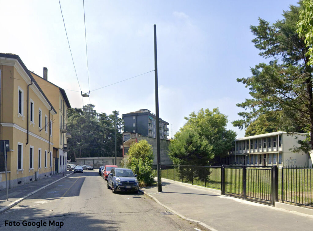 Altro discorso per il più grande edificio dell’Istituto Comprensivo Console Marcello (Via Console Marcello 9) che è stato recentemente riqualificato. Bellissima la parte che da verso il giardino e il “boschetto”, unica parte che potrebbe corrispondere all’area alberata che si vede nelle foto d’epoca della cascina Melgasciada, che si trovava esattamente al posto della scuola. Ultima nota: lungo la cancellata lato via Mantegazza, vi era un fitto filare d’alberi che è stato decimato tra il 2023 e il 2024.
