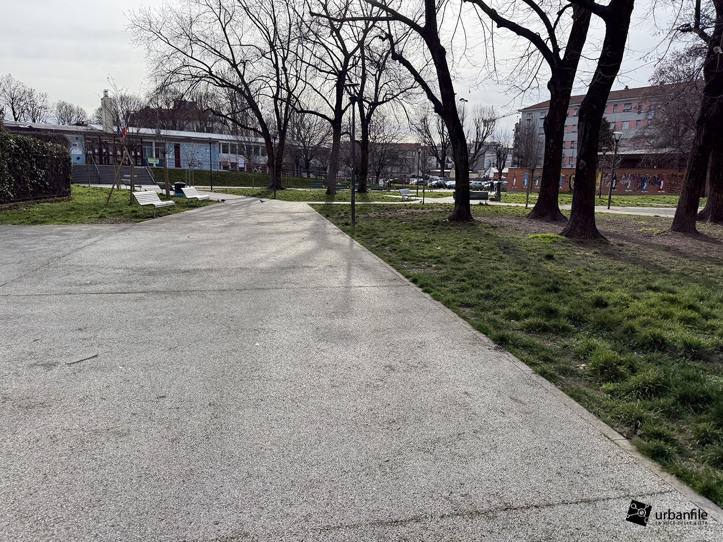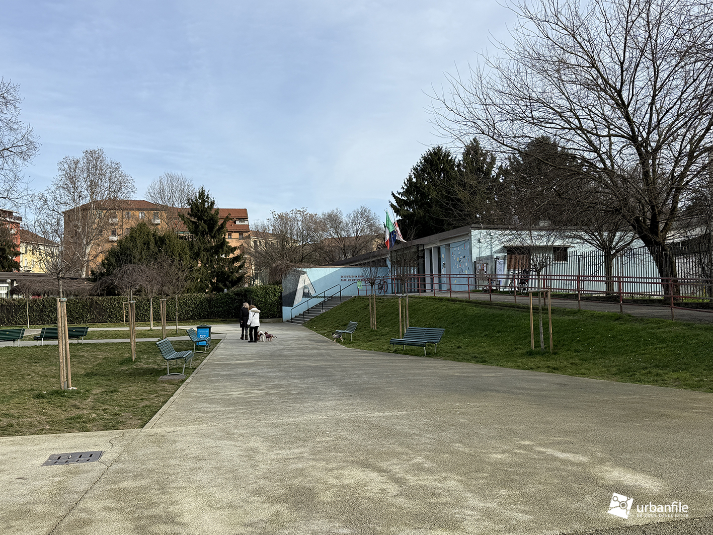 Altro discorso per il più grande edificio dell’Istituto Comprensivo Console Marcello (Via Console Marcello 9) che è stato recentemente riqualificato. Bellissima la parte che da verso il giardino e il “boschetto”, unica parte che potrebbe corrispondere all’area alberata che si vede nelle foto d’epoca della cascina Melgasciada, che si trovava esattamente al posto della scuola. Ultima nota: lungo la cancellata lato via Mantegazza, vi era un fitto filare d’alberi che è stato decimato tra il 2023 e il 2024.