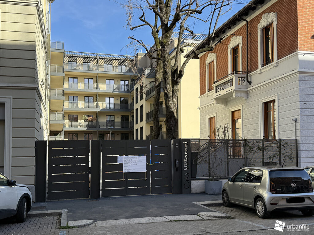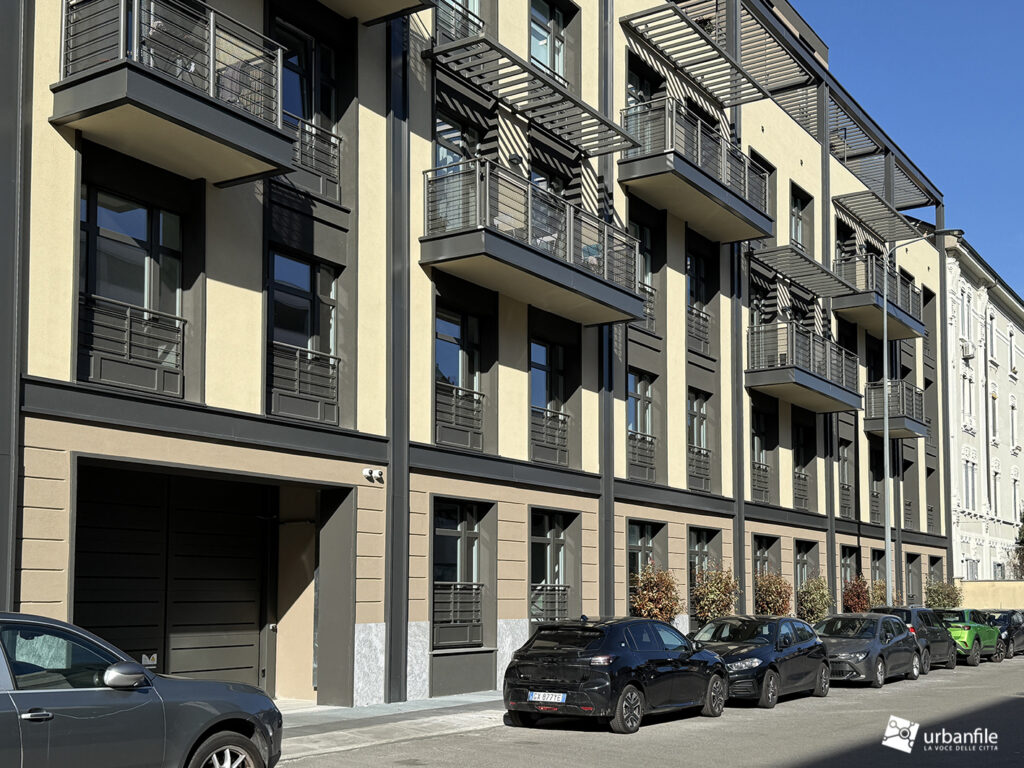 Proseguendo, al civico 13 e 15 di via Eugenio Villoresi, l’intervento ha riguardato un complesso più articolato: da un lato il recupero della palazzina storica di inizio Novecento, dall’altro la realizzazione di un nuovo edificio residenziale sorto dopo la demolizione del precedente stabile ad uso uffici.