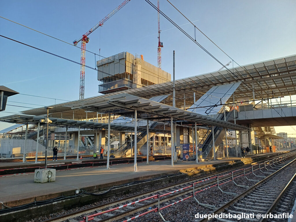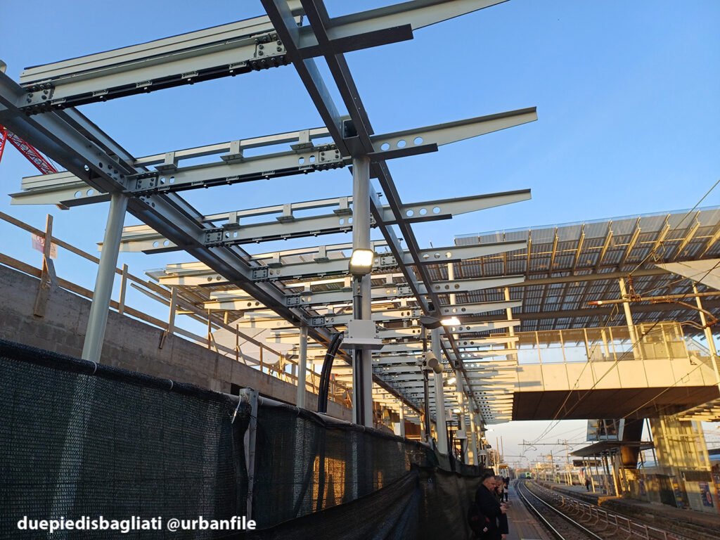 Per quanto riguarda la stazione, pare siano stati modificati e ricongiunti i binari 5 e 6 (anche i successivi), mentre sono iniziati i lavori di montaggio delle coperture delle pensiline.