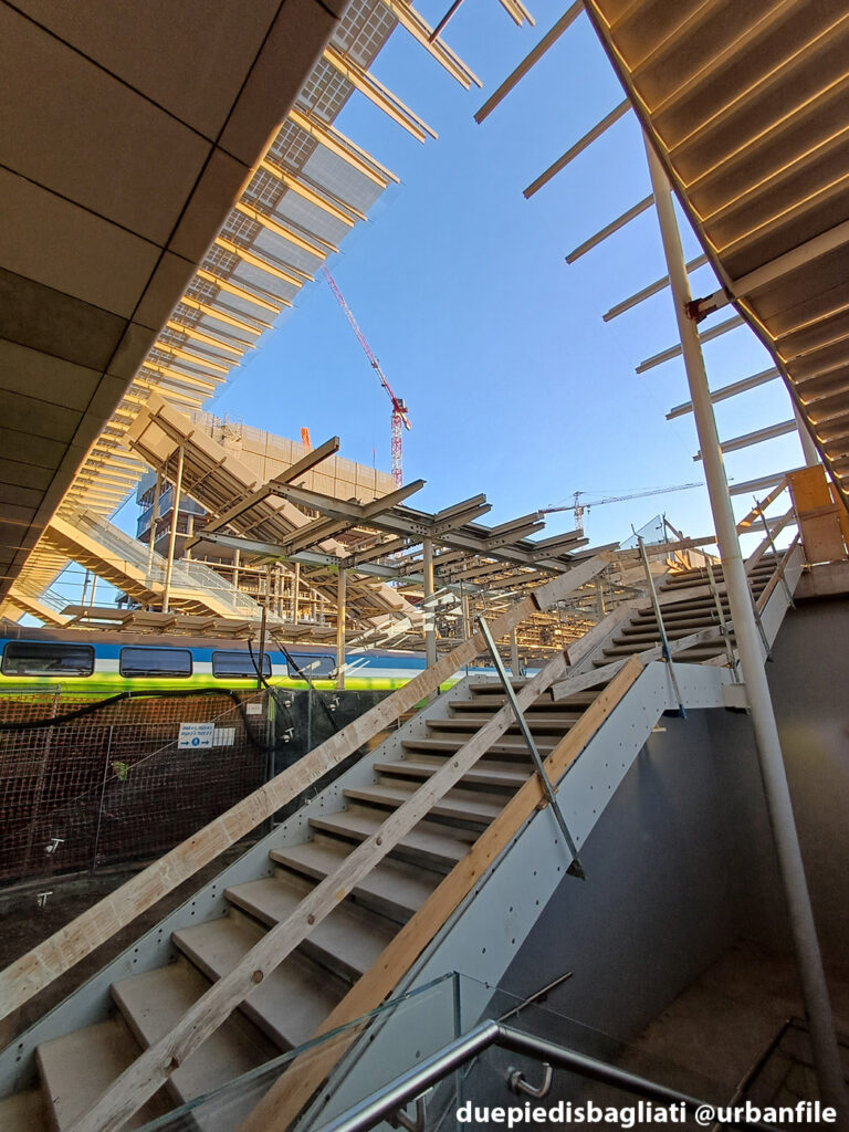 Innanzitutto hanno aperto il collegamento sotterraneo tra la stazione della metropolitana M1 e la rinnovata stazione ferroviaria. Il tunnel proseguirà anche verso il nuovo quartiere in costruzione di Unione Zero, sul lato opposto della stazione FS.