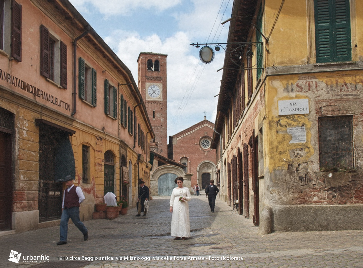 La strada principale di collegamento con Milano era la Baggina (oggi via delle Forze Armate), che partiva dal borgo della Maddalena (attuale piazza De Angeli). Lungo questa via, nel 1913, fu inaugurata la prima linea tranviaria per Baggio, che dal 1927 venne identificata con il celebre numero 34.