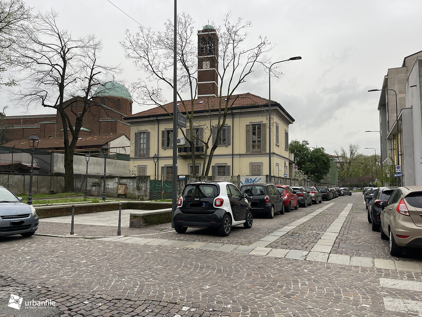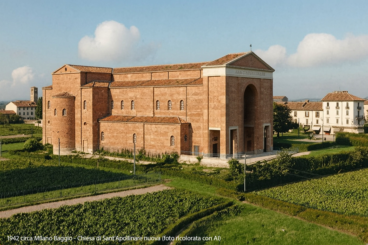Costruita tra il 1938 e il 1942 su progetto dell’ingegner architetto Egidio Aresi e consacrata dal cardinale Schuster, la nuova chiesa rispondeva alla crescita demografica della borgata. La facciata, in mattoni a vista, è divisa in tre specchiature e protetta da una volta a botte. L’interno presenta una navata centrale e due laterali separate da sei colonne rivestite di mosaici, con capitelli in stile bizantino. Il presbiterio è sopraelevato, mentre l’abside, decorata con mosaici, ospita l’organo. Spicca l’alto campanile con cupolino verde.