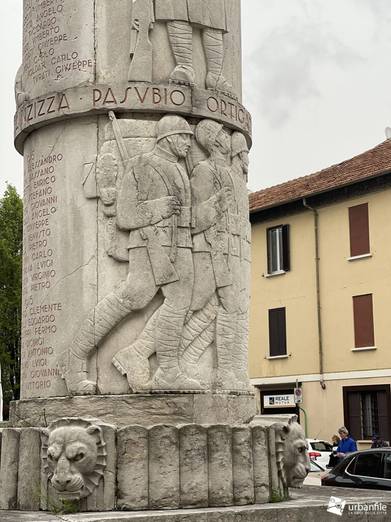 Realizzato nel 1928 dall’architetto Antonio Cavazzoni con opere di Oreste Zampieri, il monumento ricorda i caduti della Prima Guerra Mondiale ed è costituito da una colonna in pietra con bassorilievi rappresentanti scene di guerra.