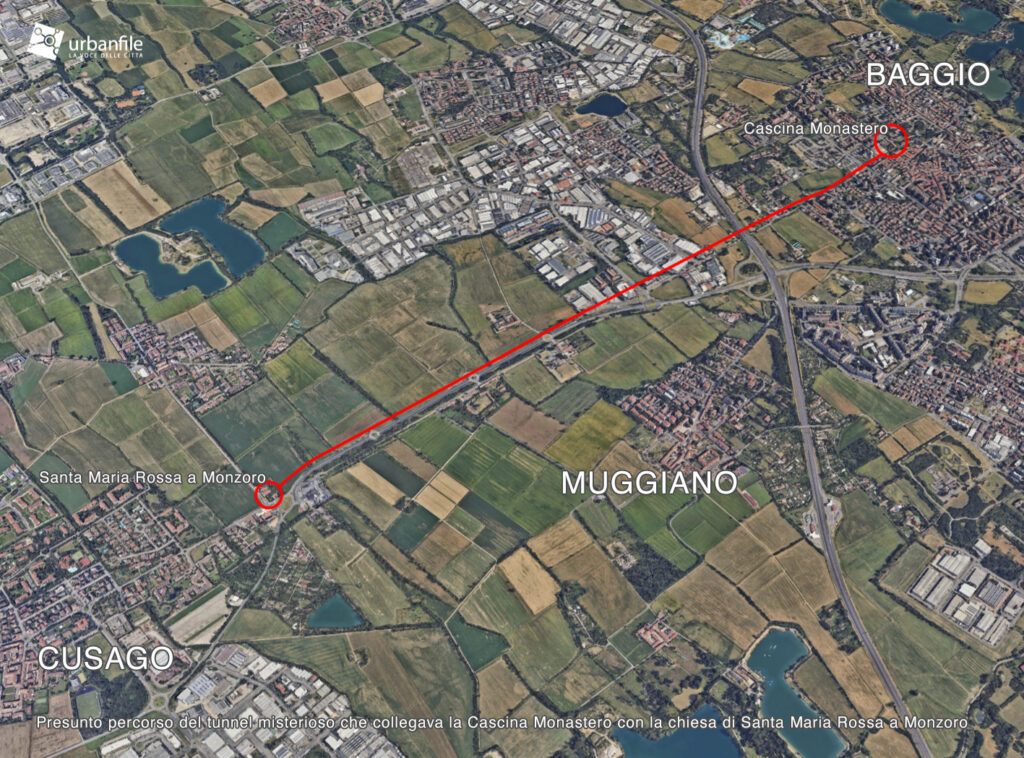 Santa Maria Rossa era stata donata nel 1375 da Bernabò Visconti ai Monaci Umiliati, che in seguito la trasformarono in una grangia. Questo misterioso passaggio sotterraneo, secondo i racconti popolari, sarebbe stato utilizzato in passato per intrighi segreti e, durante la Seconda guerra mondiale, come deposito di munizioni o via di fuga per i partigiani locali. Numerosi racconti aggiungono dettagli affascinanti, tra cui la leggenda di un tunnel lunghissimo che si sarebbe esteso fino al Castello Sforzesco.