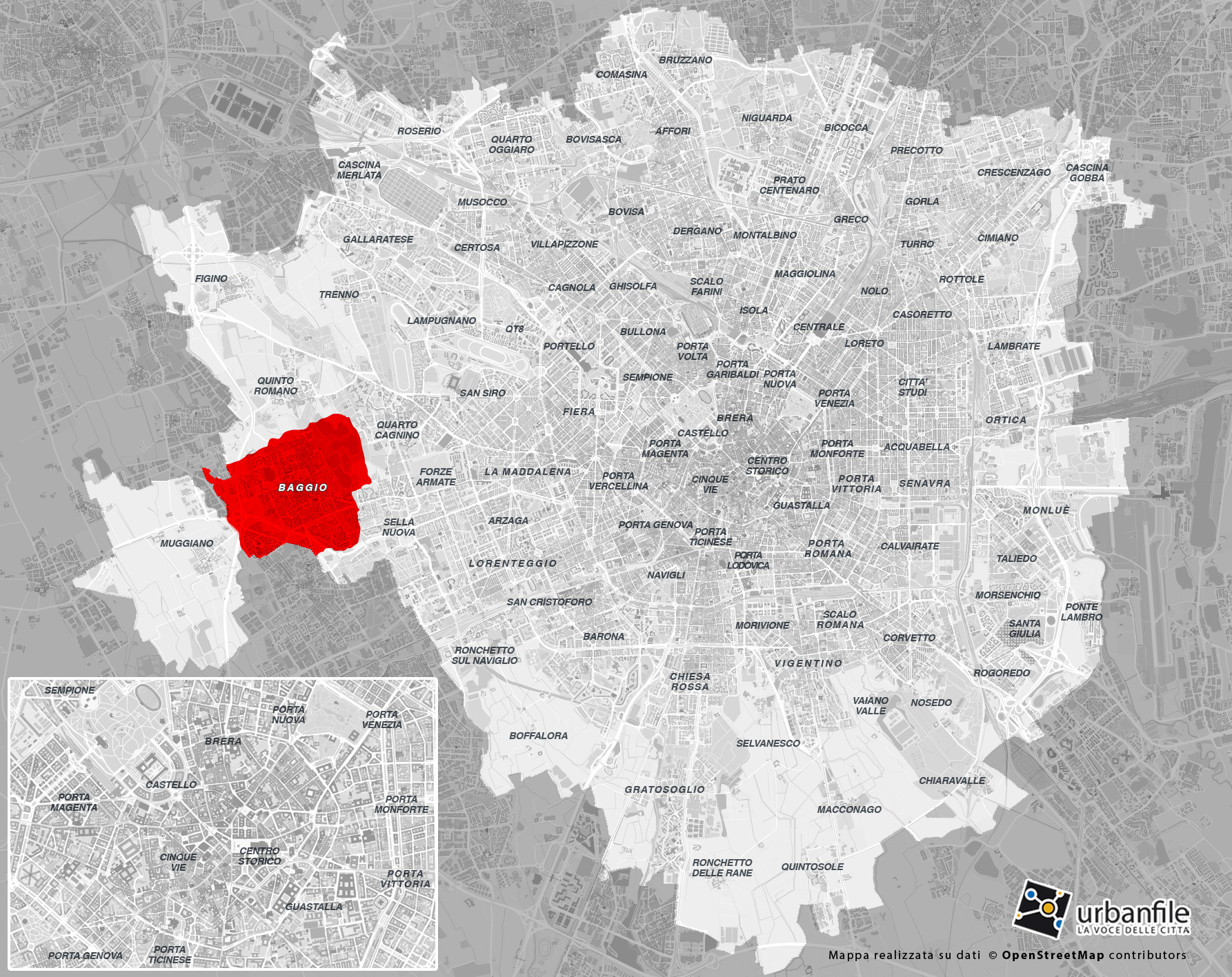 Baggio è uno dei territori più noti di Milano. Situato al confine occidentale della città, oggi è considerato periferia, anche se fino a circa cent’anni fa era un comune autonomo, circondato da frazioni come Muggiano, Assiano e Sella Nuova (e per un periodo inglobò anche Cesano Boscone).