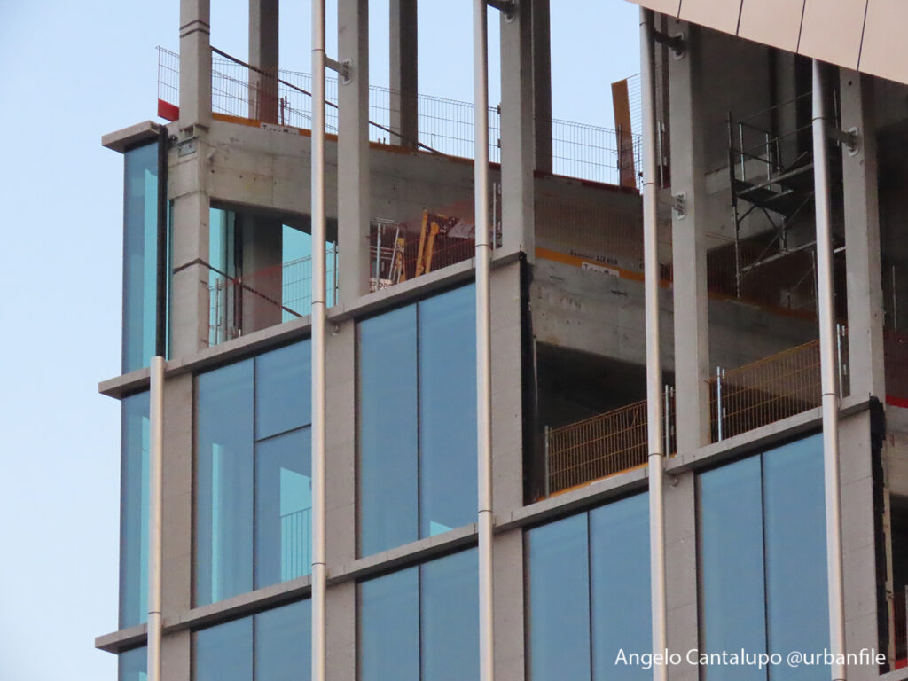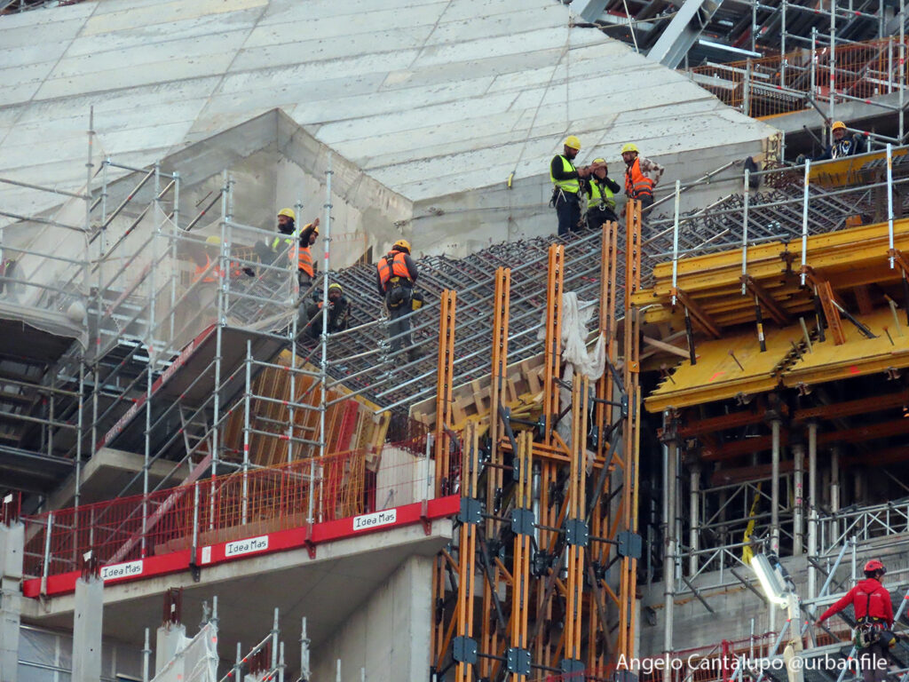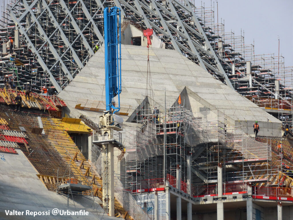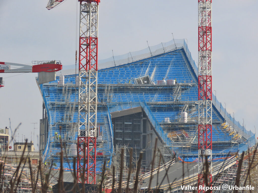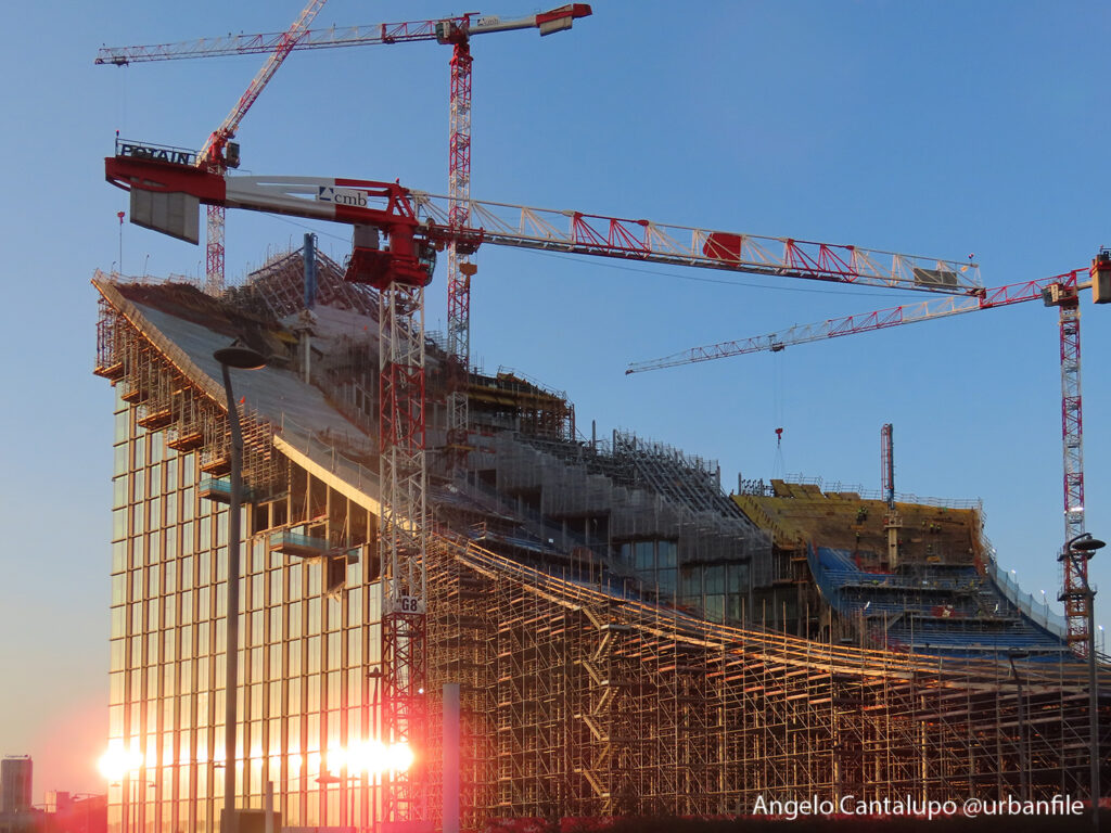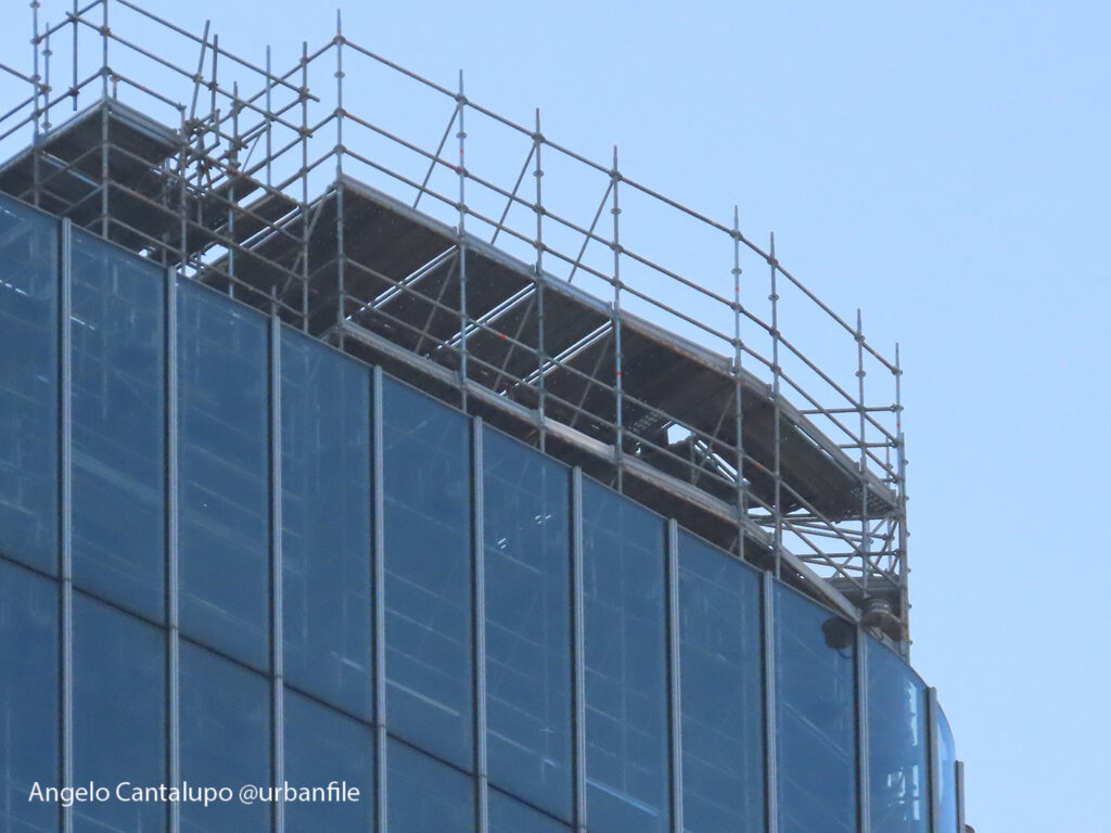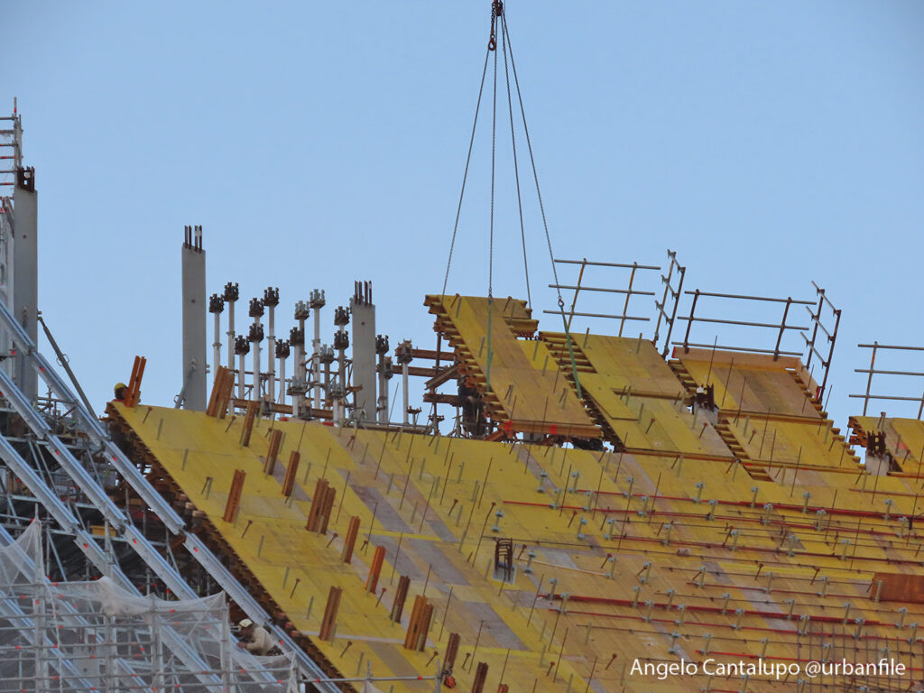Proseguono i lavori al CityWave, oltre al montaggio delle vetrate delle facciate, anche quelli per completare la copertura del tetto e l’incredibile e complessa tettoia (canopy) che come un “telo” unirà le due torri del nuovo edificio per uffici in realizzazione nell’area verso largo Domodossola.