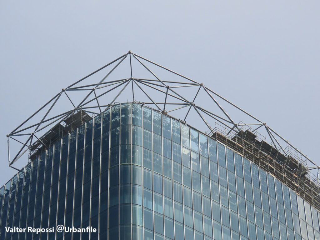 Dopo più di otto mesi (era il 30 giugno) dal collasso di parte dell’insegna Generali posta sulla vetta della Torre Hadid — conosciuta anche come Lo Storto — sede del gruppo Generali, e la rimozione dei pannelli rossi dell’insegna, era rimasta a ricordo la struttura metallica, sia quella rimasta intatta che quella che aveva ceduto. Dopo il via libera dalla Procura che aveva posto sotto sequestro il manufatto per verificare eventuali colpe (il crollo poteva causare dei feriti fosse crollato a terra), la struttura di sostegno è in totale fase di smontaggio. Rimossa quasi completamente la sezione crollata, ora tocca al lato “sano”. Ancora un mistero come verrà ridisegnata la nuova insegna.
