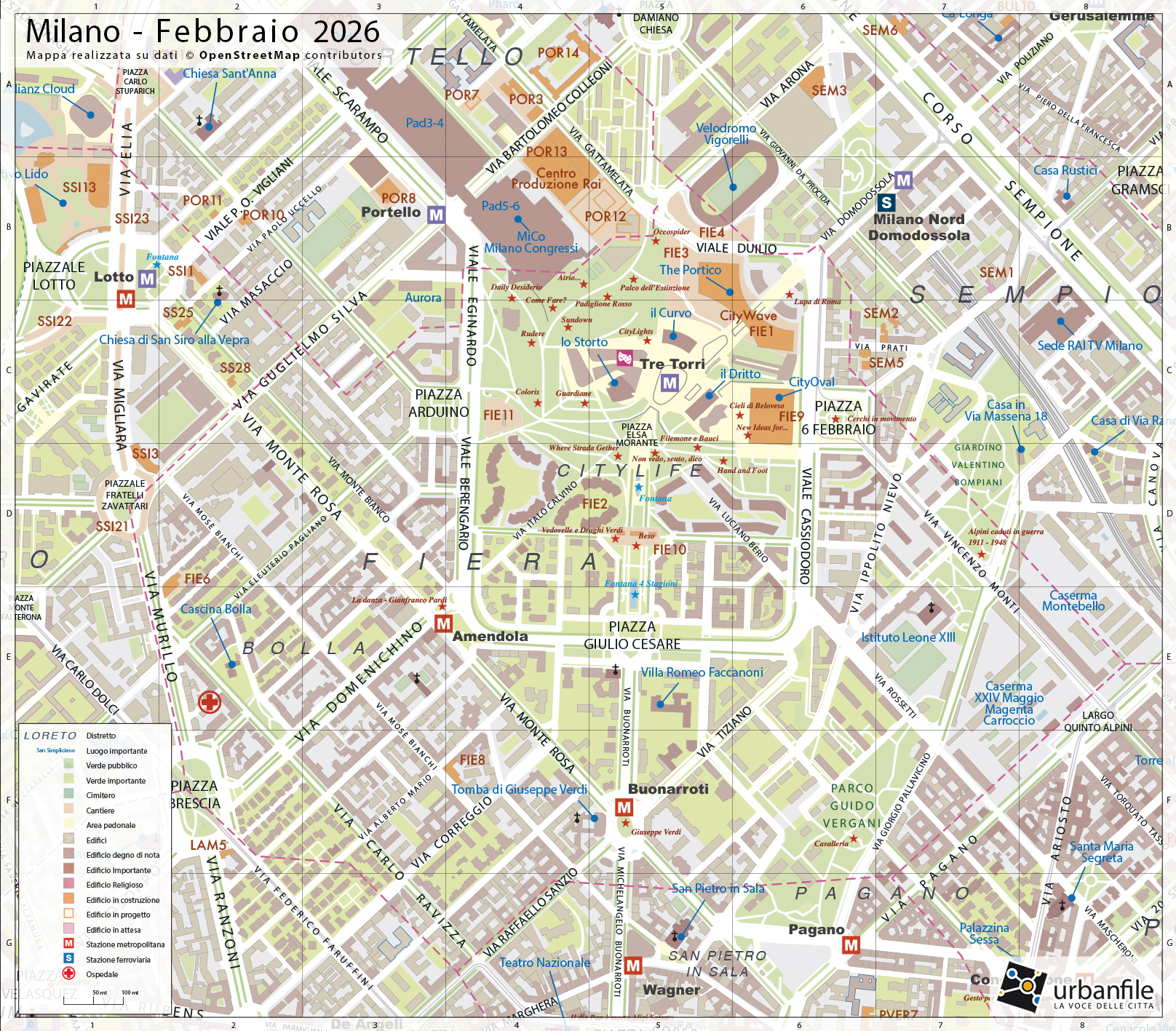 - CityLife, Fiera, Tre Torri, viale Duilio, viale Boezio, viale Cassiodoro, viale Berengario, Palazzo delle Scintille, Velodromo Vigorelli, piazza VI Febbraio, BIG-Bjarke, CityWave, CityOval