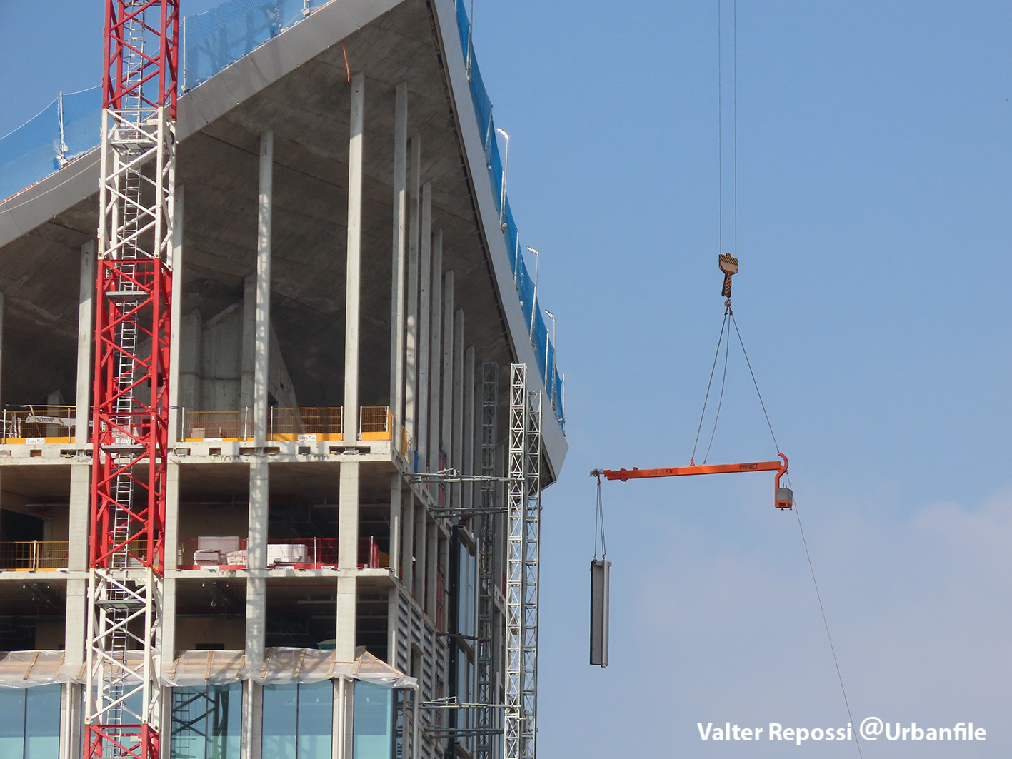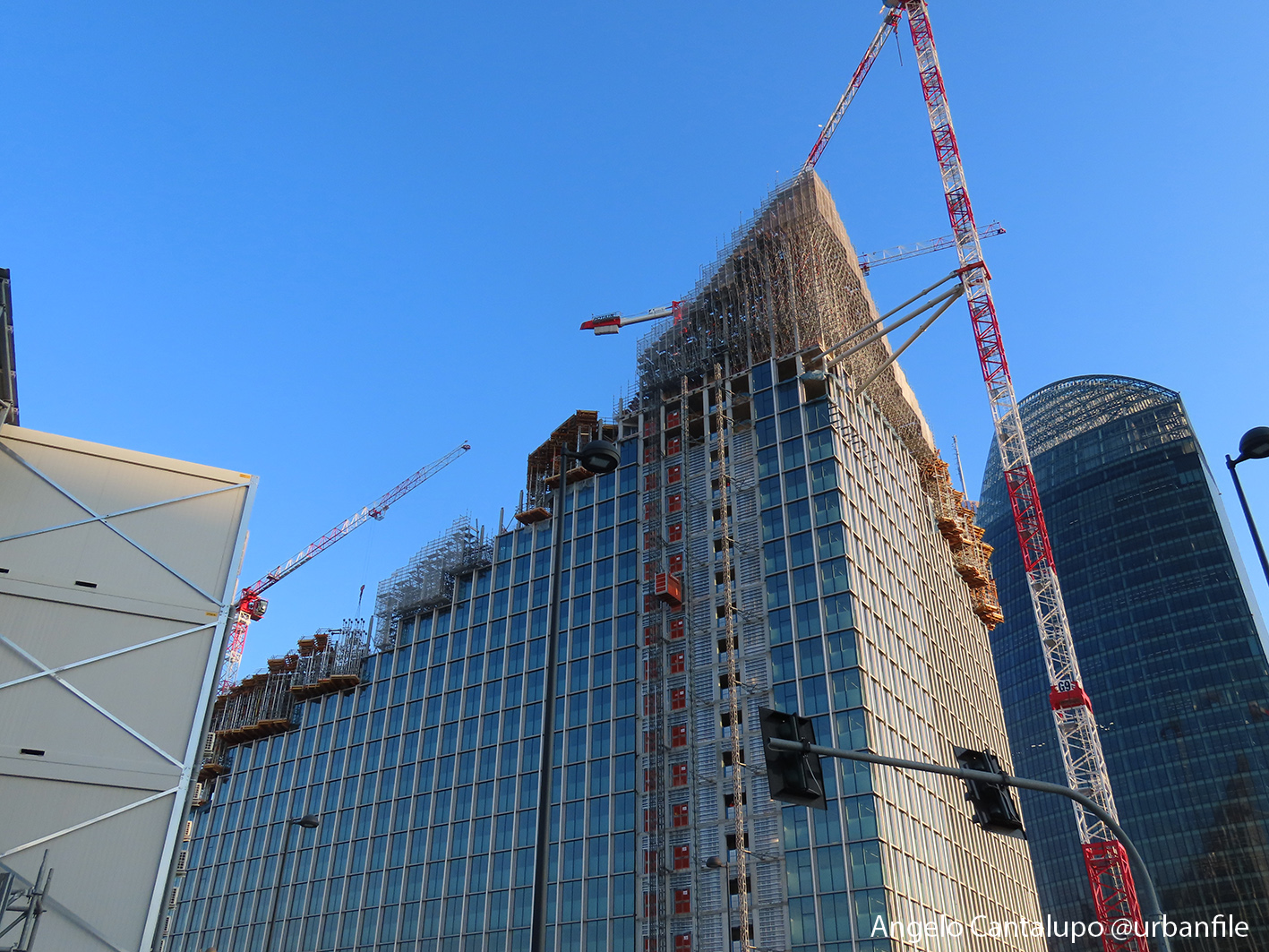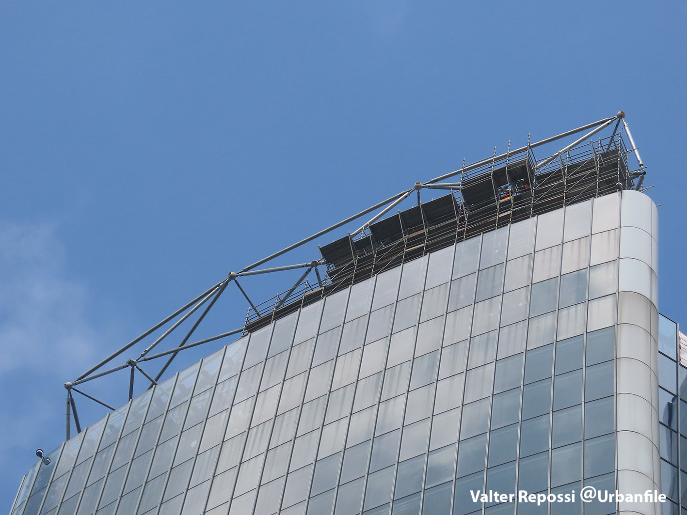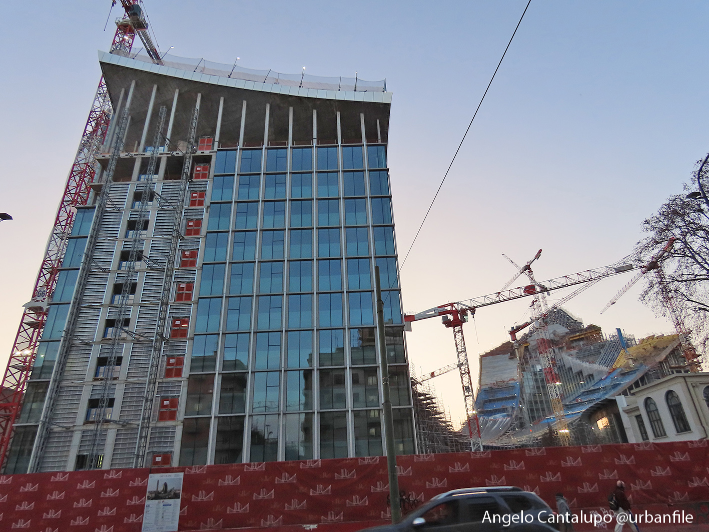 Proseguono i lavori al CityWave, oltre al montaggio delle vetrate delle facciate, anche quelli per completare la copertura del tetto e l’incredibile e complessa tettoia (canopy) che come un “telo” unirà le due torri del nuovo edificio per uffici in realizzazione nell’area verso largo Domodossola.