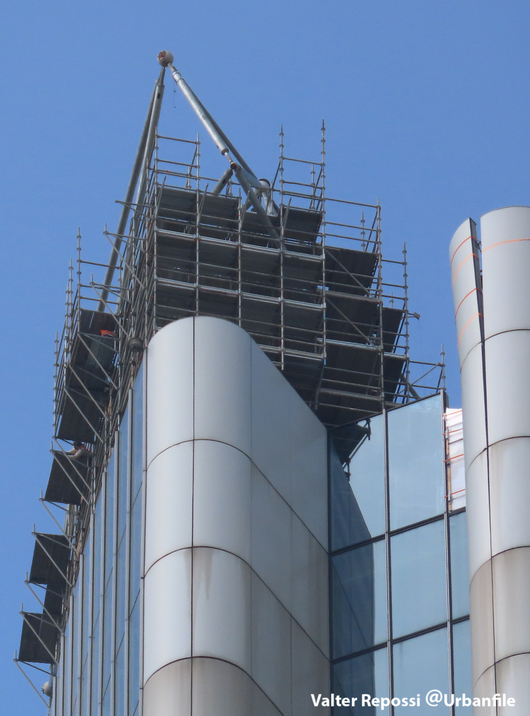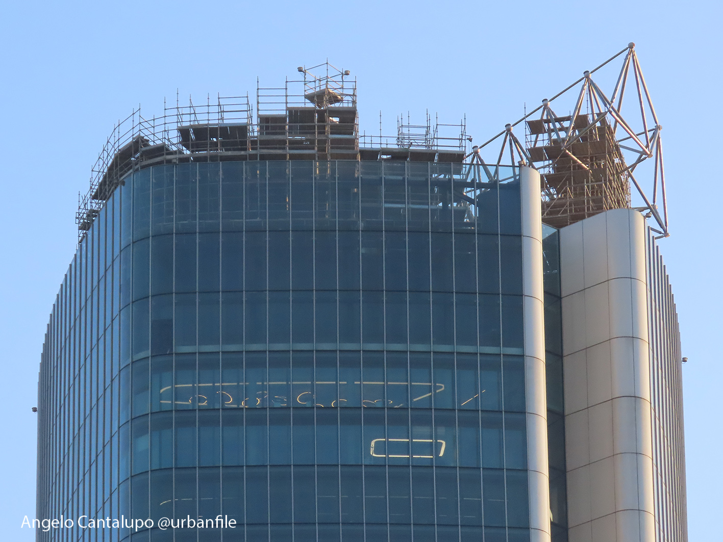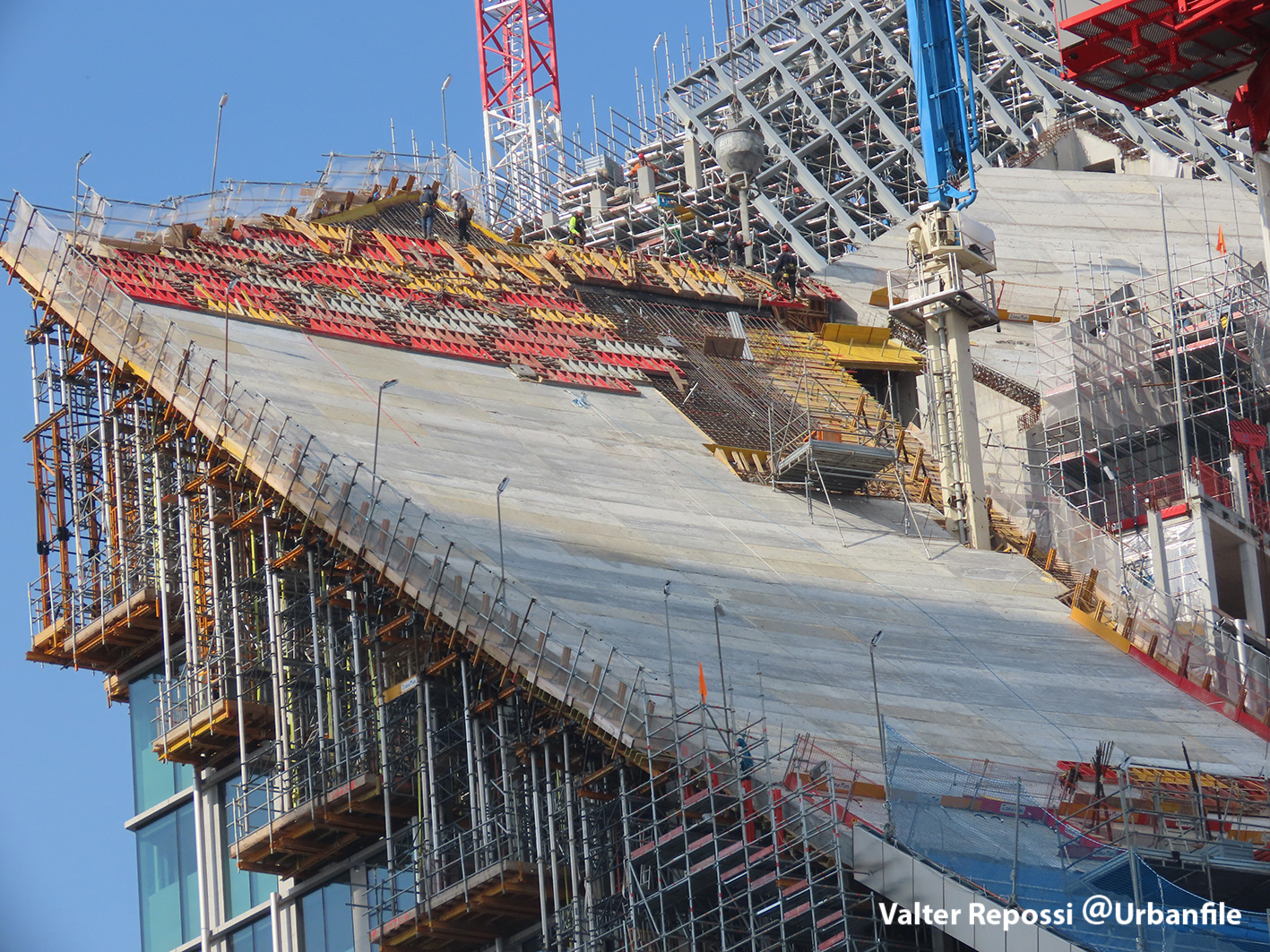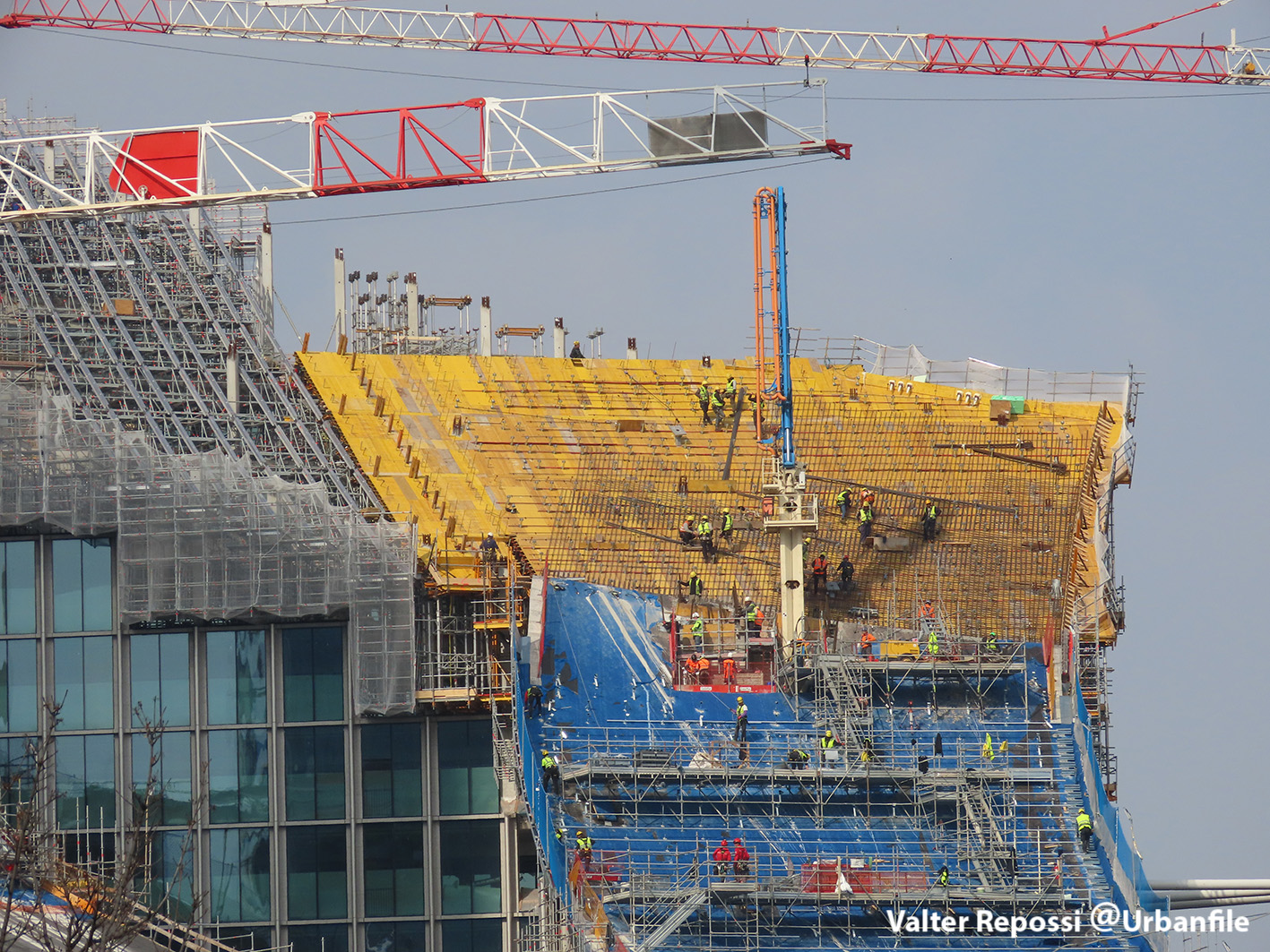 Proseguono i lavori al CityWave, oltre al montaggio delle vetrate delle facciate, anche quelli per completare la copertura del tetto e l’incredibile e complessa tettoia (canopy) che come un “telo” unirà le due torri del nuovo edificio per uffici in realizzazione nell’area verso largo Domodossola.