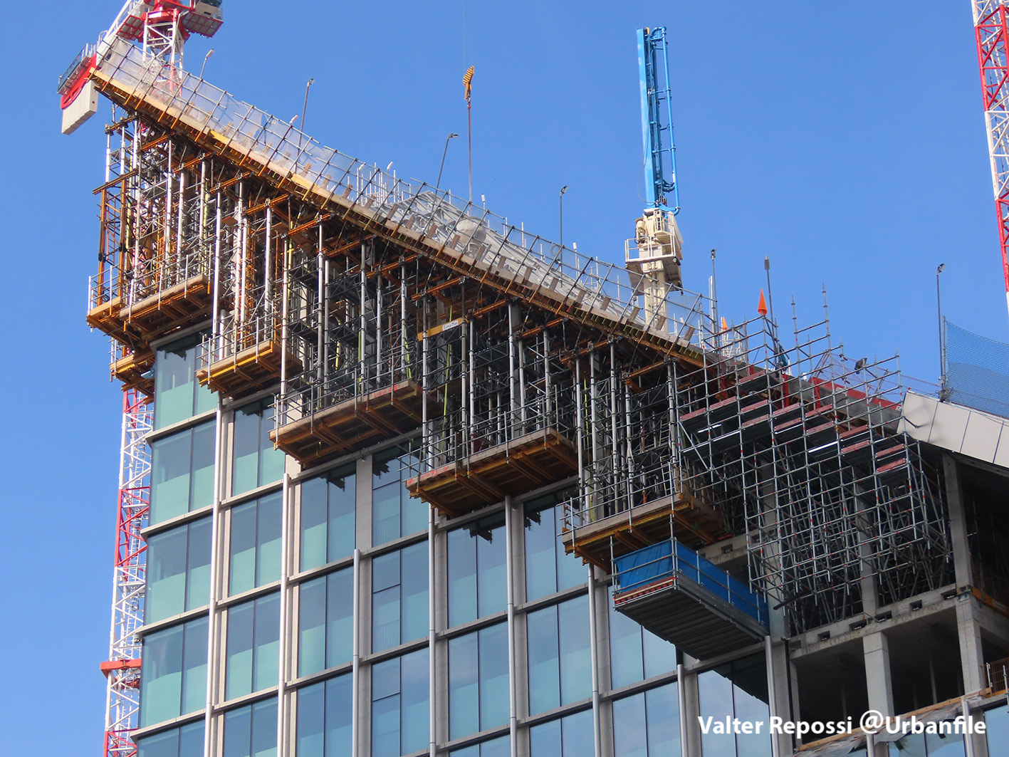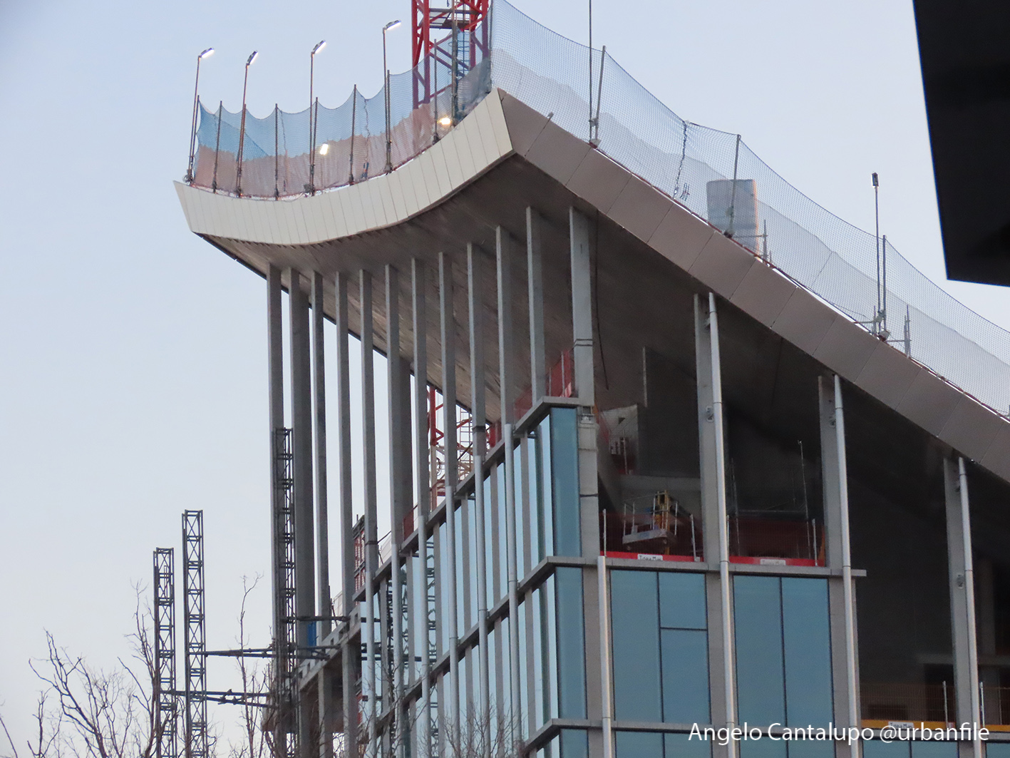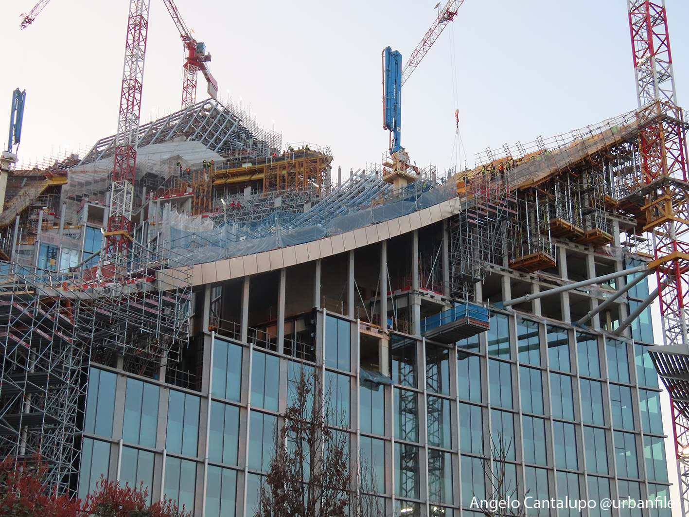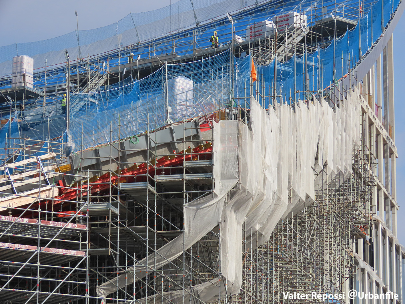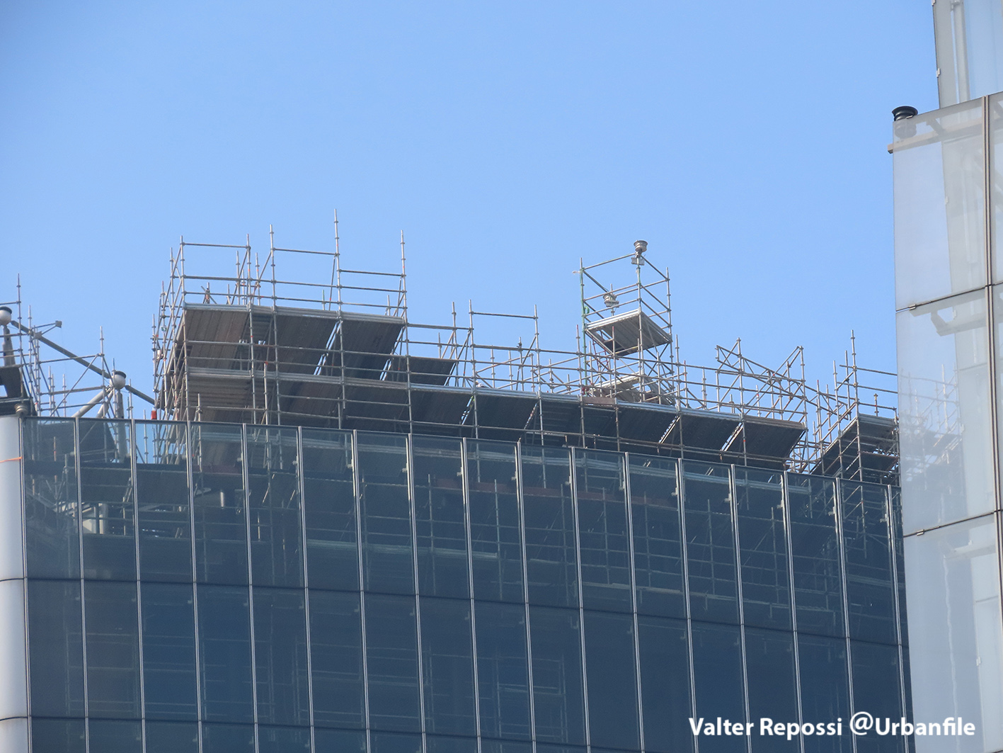 Proseguono i lavori al CityWave, oltre al montaggio delle vetrate delle facciate, anche quelli per completare la copertura del tetto e l’incredibile e complessa tettoia (canopy) che come un “telo” unirà le due torri del nuovo edificio per uffici in realizzazione nell’area verso largo Domodossola.