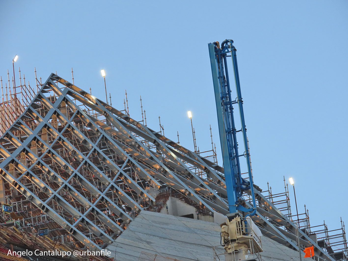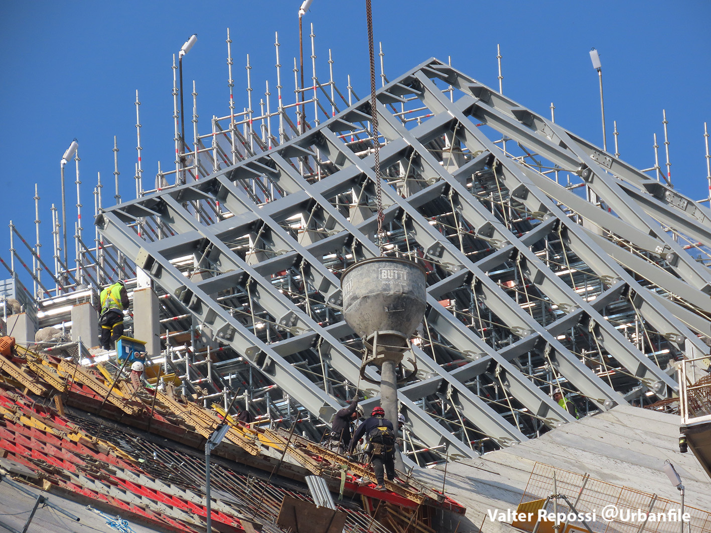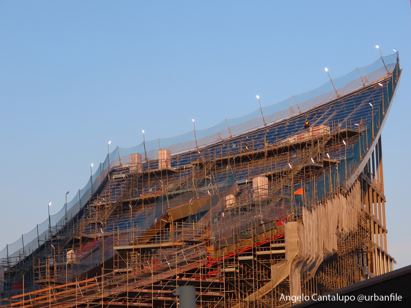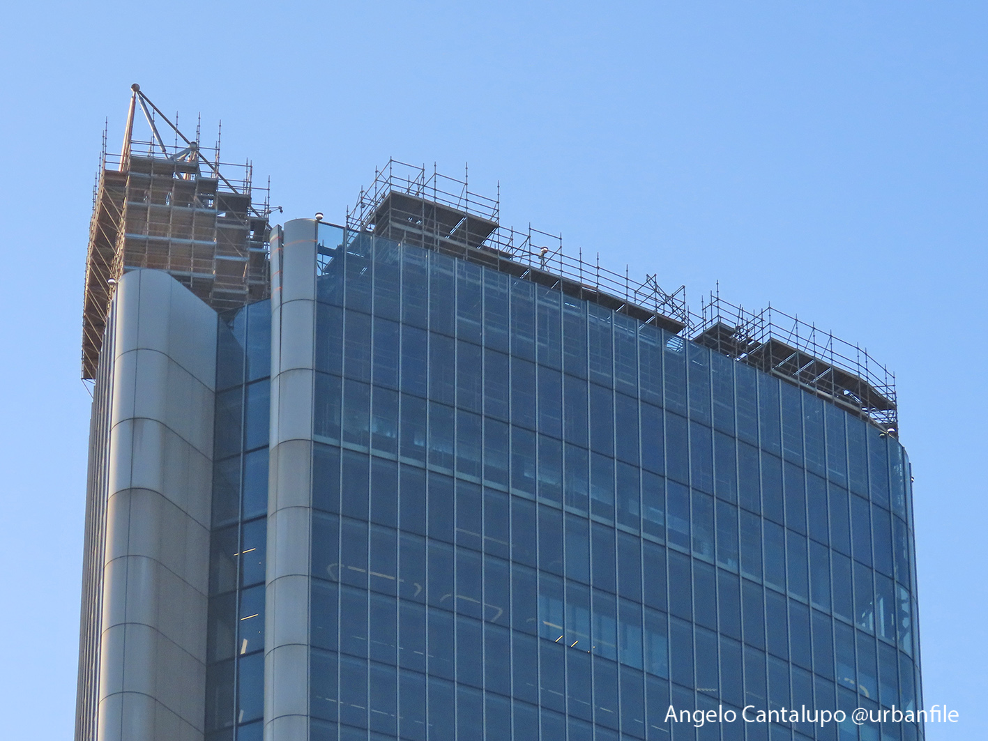 Proseguono i lavori al CityWave, oltre al montaggio delle vetrate delle facciate, anche quelli per completare la copertura del tetto e l’incredibile e complessa tettoia (canopy) che come un “telo” unirà le due torri del nuovo edificio per uffici in realizzazione nell’area verso largo Domodossola.
