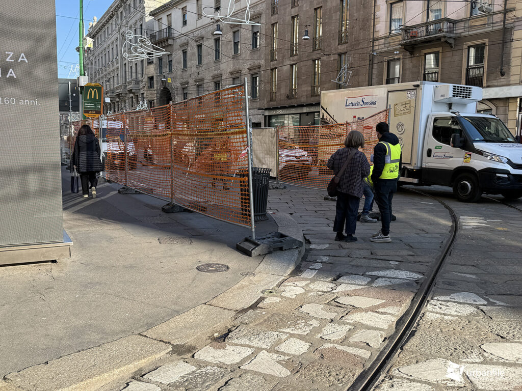 Marzo 2026. Come abbiamo visto, dal 9 marzo sono stati avviati i lavori per il nuovo armamento tranviario in via Torino, riportando il centro città in una situazione di forte pressione urbanistica. Una fase che si era temporaneamente interrotta dopo il periodo natalizio, quando – dopo mesi di lavori – erano stati riconsegnati piazza Cordusio e un tratto di via Orefici.