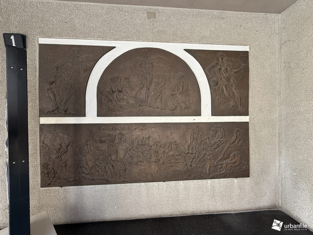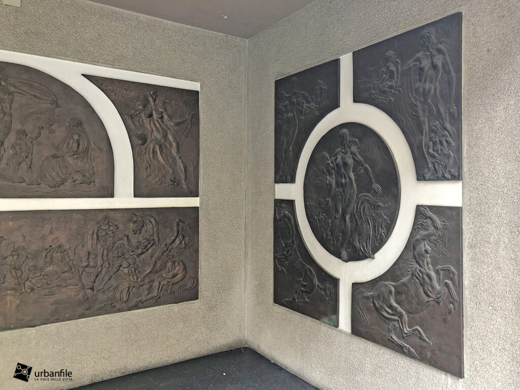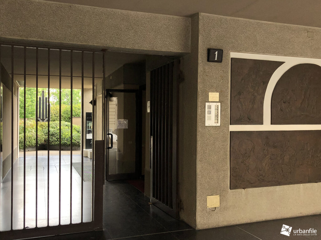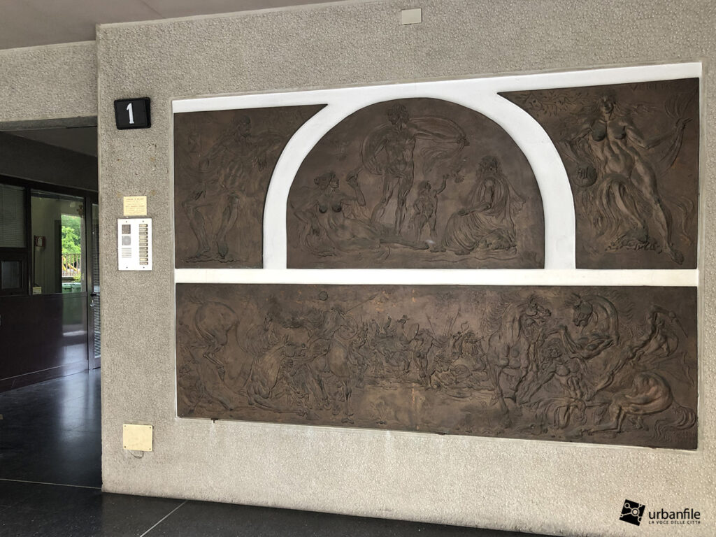 Dobbiamo ricordare che l’ingresso all’edificio è caratterizzato da una graziosa composizione a bassorilievo della quale purtroppo non abbiamo trovato riferimenti, ma che crediamo rimanga anche dopo l’intervento, che alla fine riguarda solo la facciata e i piani superiori.