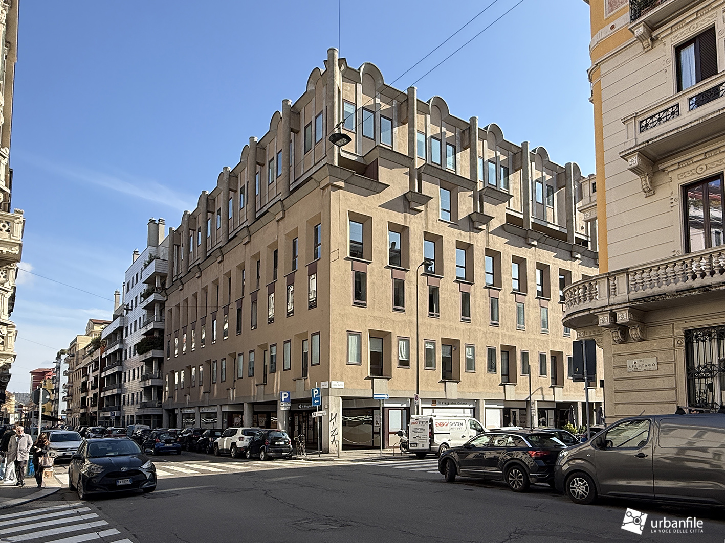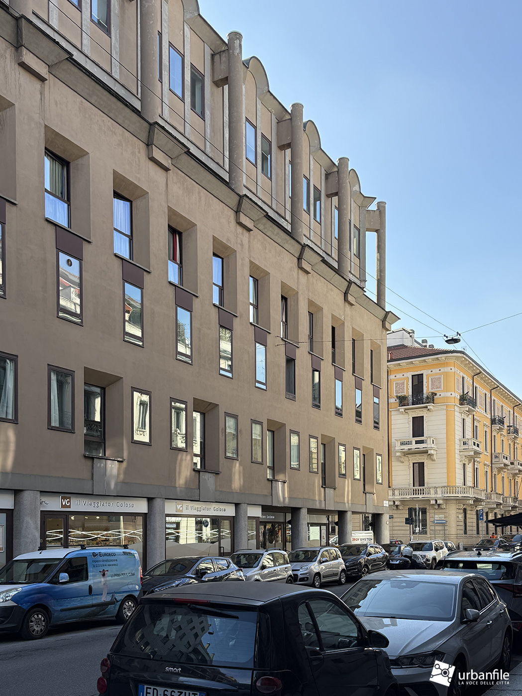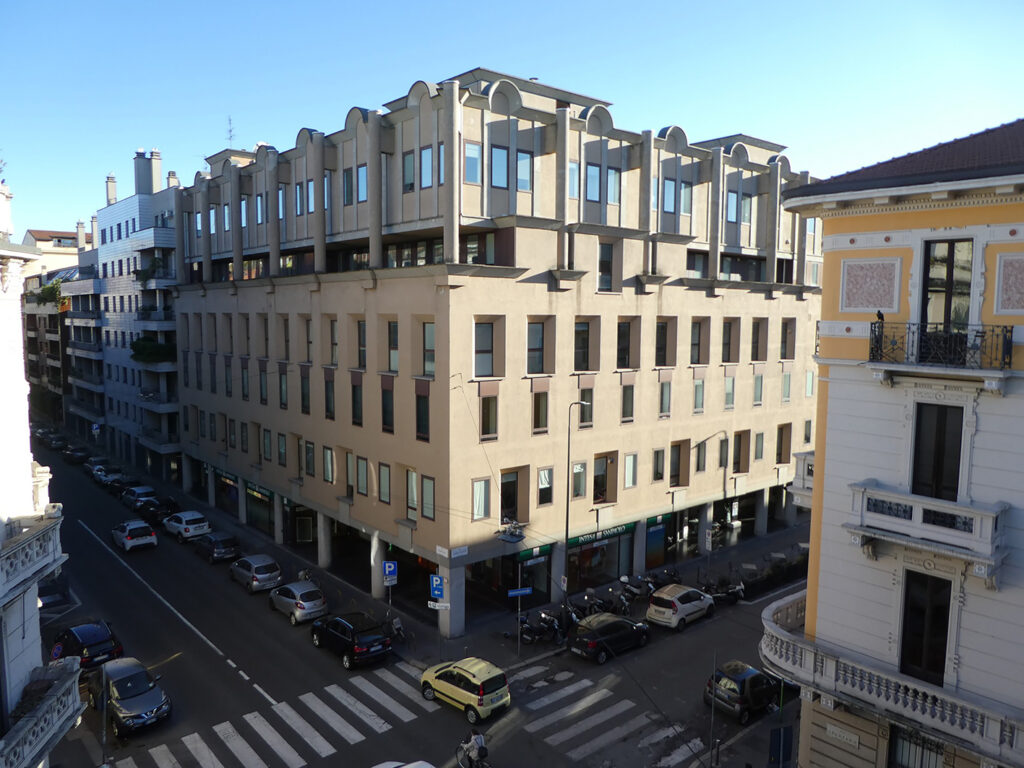 Non si può certo dire che il cosiddetto “postmoderno” sia ampiamente rappresentato a Milano e che sia rappresentativo di un certo periodo, ma, perlomeno, si potrebbe dire, in quegli anni, almeno tentarono di definire uno stile, di riportare la creatività nelle facciate degli edifici…niente, da rifare, sembra proprio che tutto debba sempre essere solo squadrato…edifici copia e incolla, fotocopie, oltre non si va, conformismo assoluto anni settanta e niente di più; a cosa servono poi tutte queste “logge” in una città come Milano e lungo certe vie perennemente trafficate resta un mistero.