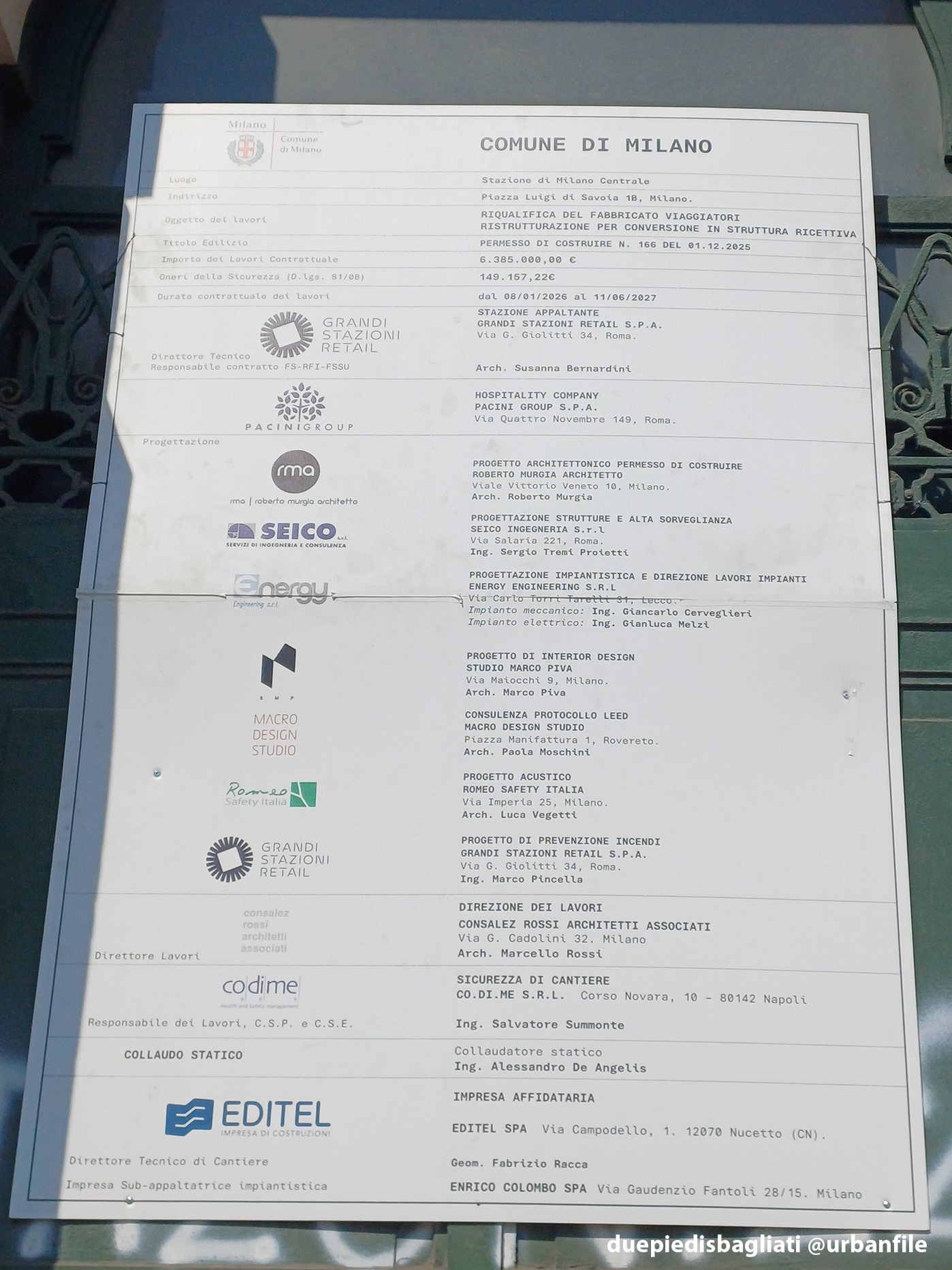 - direttore tecnico responsabile contratto FS-RFI-FSSU: arch. Susanna Bernardini @ Grandi Stazioni Retail spa – Roma, RM)