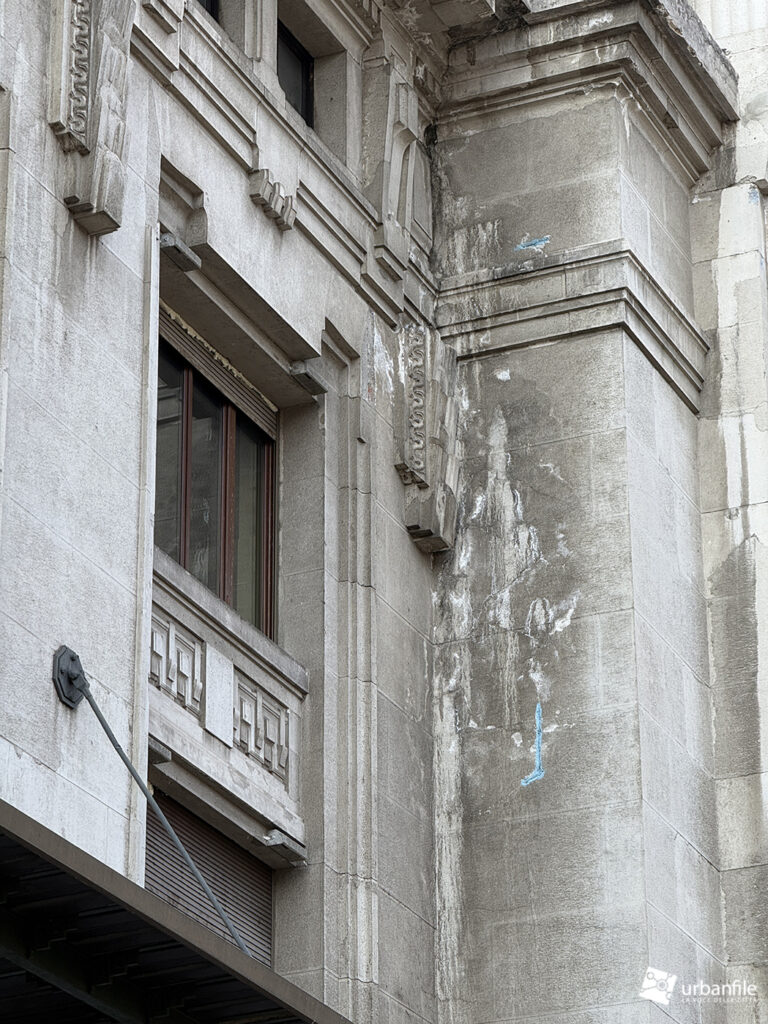 Al momento, dall’esterno, l’intervento non è ancora particolarmente evidente. Tuttavia, alcuni segnali ne testimoniano l’avanzamento: il cartello di cantiere affisso in corrispondenza del futuro accesso principale, la presenza di schiuma isolante alle finestre in prossimità degli avvolgibili e le pennellate di vernice blu sui ferri del cemento affioranti, indicativi di interventi di restauro in corso.