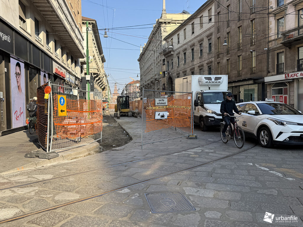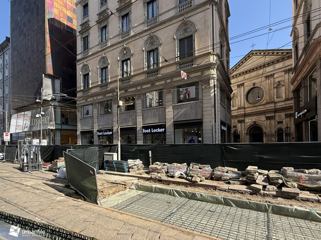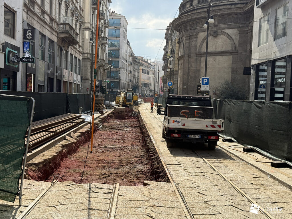 Marzo 2026. Nuovo aggiornamento fotografico dai cantieri partiti lo scorso 9 marzo per il nuovo armamento tranviario in via Torino e via Cesare Correnti, riportando il centro città in una situazione di forte “pressione urbanistica”. Una fase che si era temporaneamente interrotta dopo il periodo natalizio, quando – dopo mesi di lavori – erano stati riconsegnati piazza Cordusio e un tratto di via Orefici.