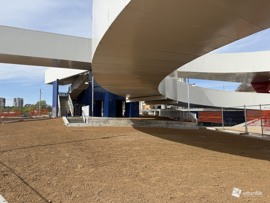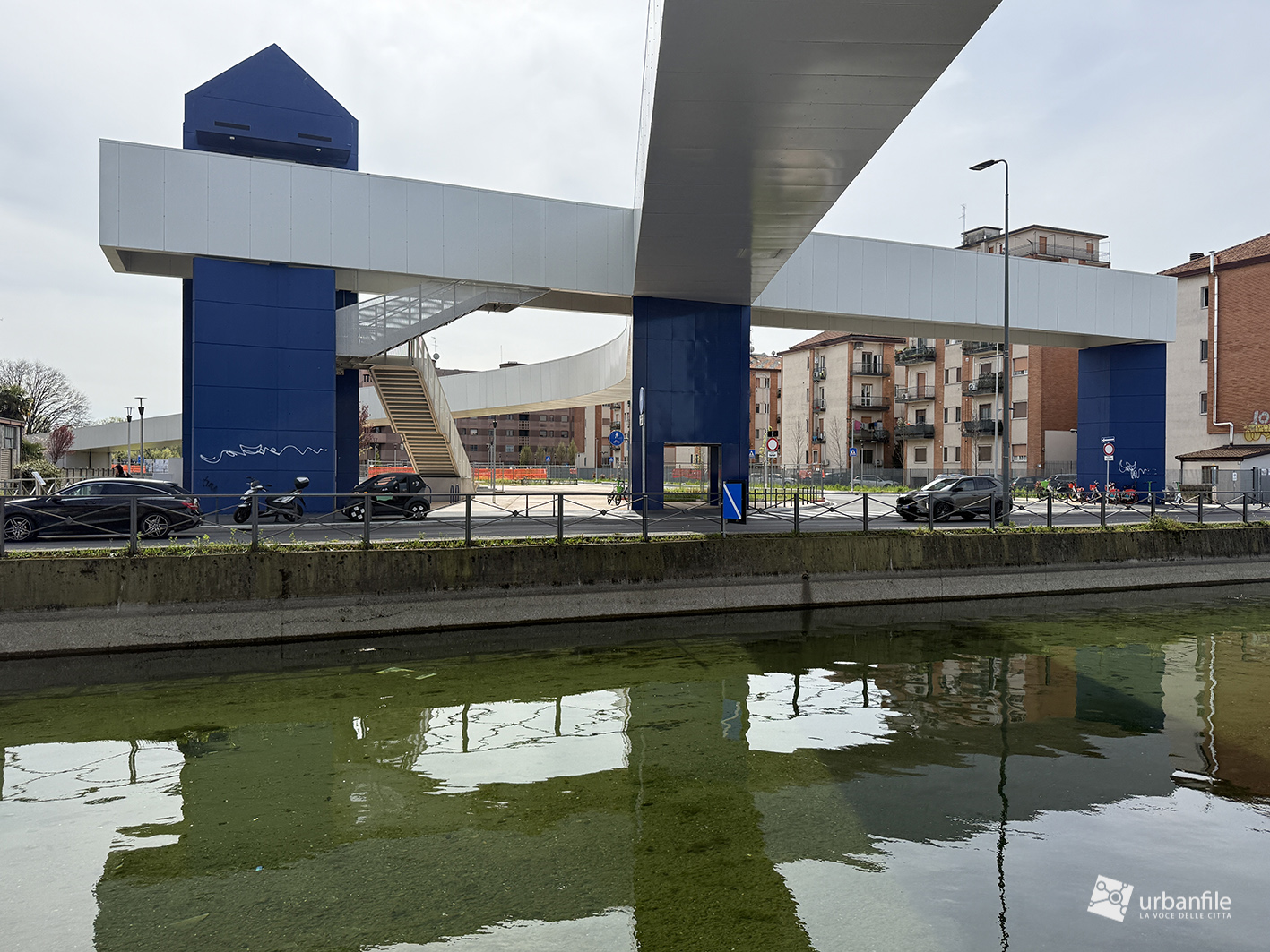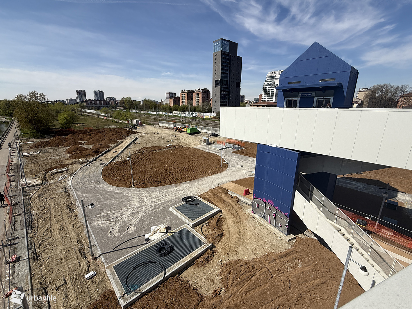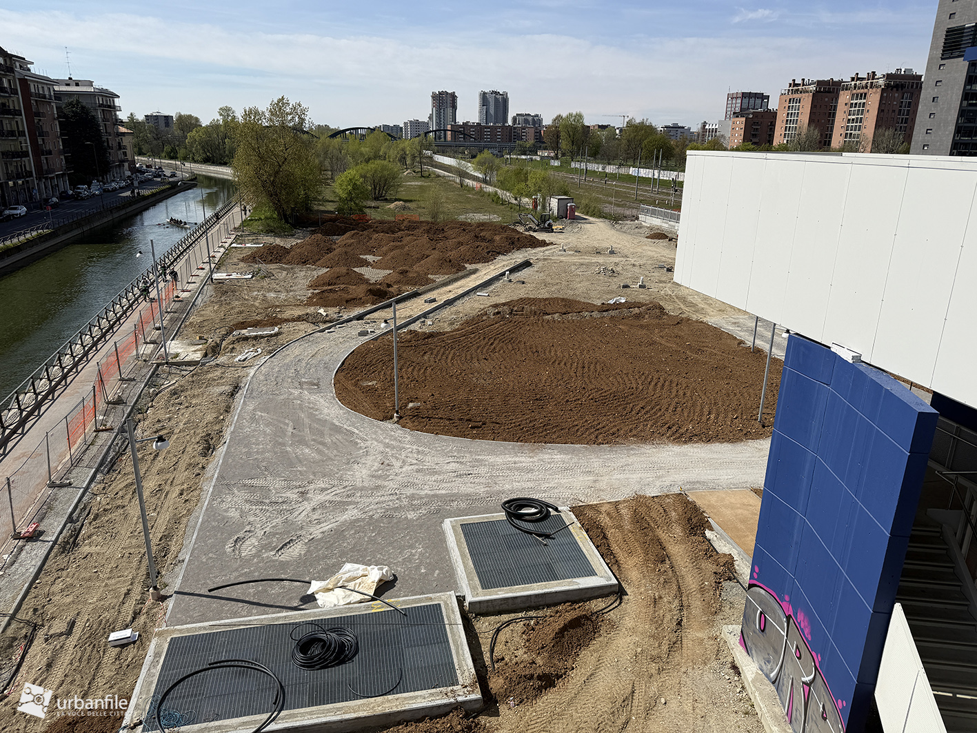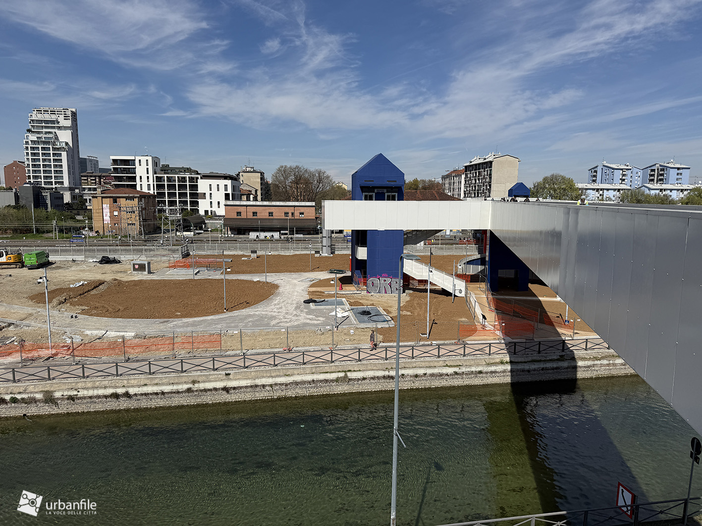 Marzo 2026. Nuovo aggiornamento fotografico dal cantiere per la costruzione del ponte/passerella ciclopedonale che collega piazza Tirana e il Lorenteggio all’area di Ronchetto sul Naviglio e via Lodovico il Moro, attraversando sia la ferrovia, sia il Naviglio Grande così come la via Lodovico il Moro, unendo i due territori separati da secoli.