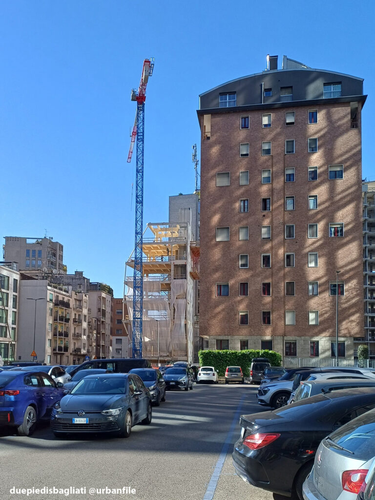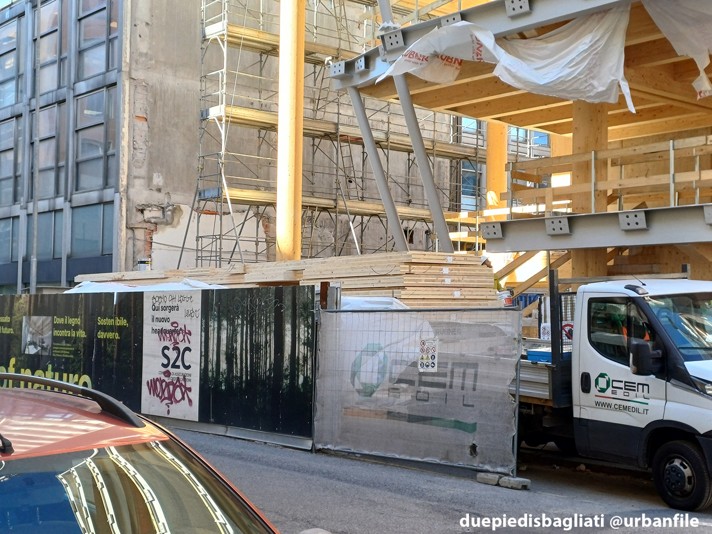 Si tratta del piccolo cantiere di Via Cornalia 17 adiacente alle due torri gemelle di via Pirelli 30 e 31, dove prende forma il piccolo grattacielino di S2C Tower, il cosiddetto “diamantino” futura sede della società assicurativa S2C. L’edificio pre-esistente è stato demolito nel 2021.