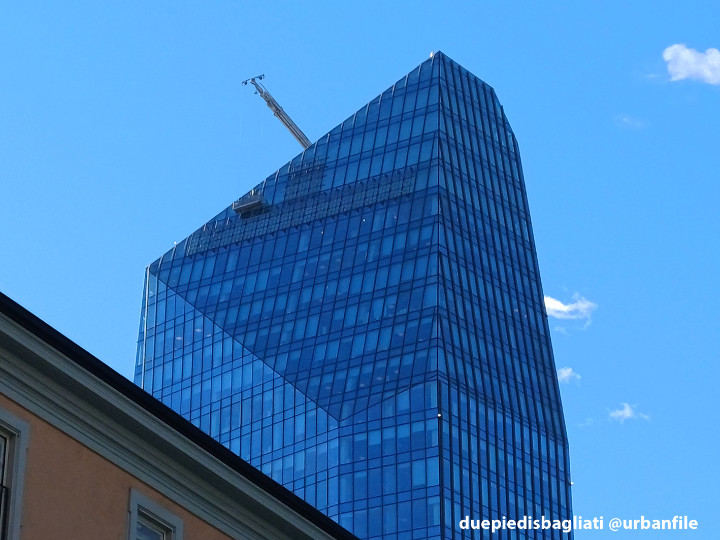 Da qualche settimana sono in corso lavori sull’insegna sul lato nord della torre, rimossa completamente in questi giorni. Non siamo certi di quale sia l’intervento previsto, ma da alcuni anni alcune lamelle di vetro della facciata continua risultano mancanti: possiamo quindi ipotizzare che sia giunto il momento del loro ripristino. Le parti assenti sono ben visibili osservando i “buchi” nella trama della porzione alta della facciata della torre.