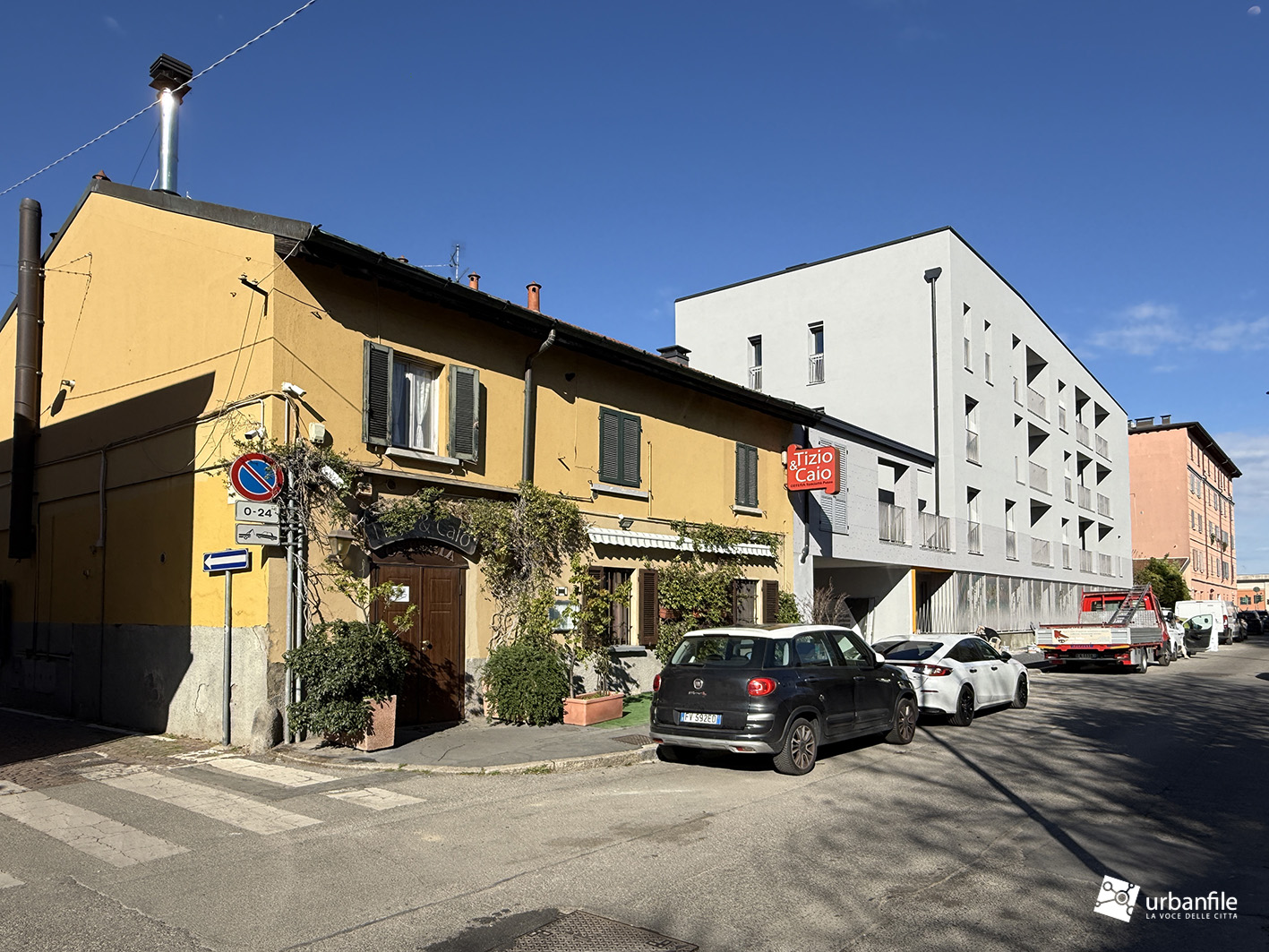 1. “Intonaco color grigio ghiaccio, una tonalità tenue che dialoga con l’ambiente urbano”?? Ma se è completamente irrispettoso del contesto! Fa a pugni sia col giallo a sinistra che col rosa a destra.