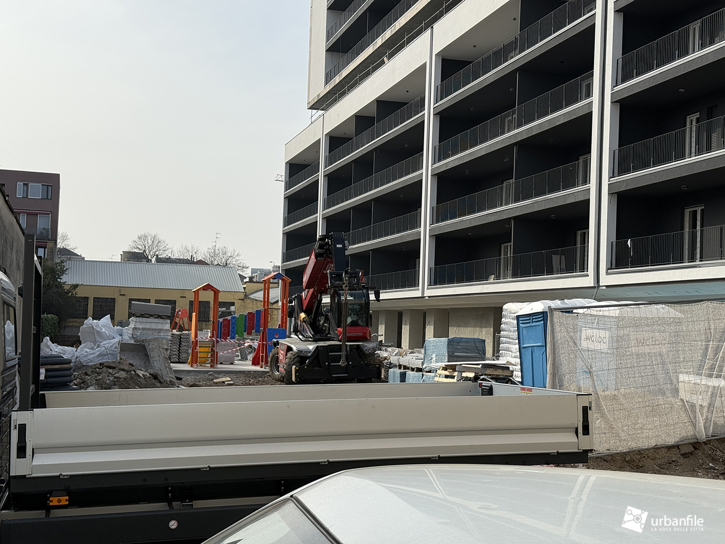 Quasi di fronte troviamo l’altro cantiere partito quasi assieme, anche questo per un nuovo palazzo residenziale.