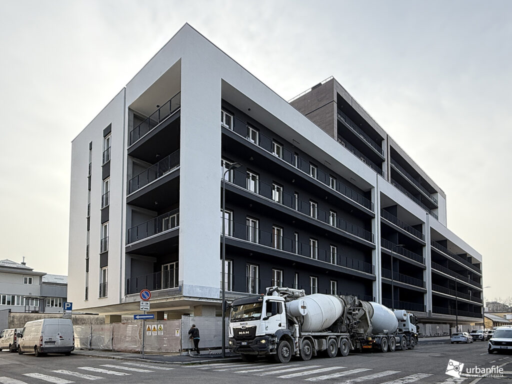 In via Monte Prato Magno 7 si trova un cantiere che sta progredendo rapidamente. Si tratta di un edificio residenziale di 6 piani in costruzione nella via laterale di viale Monza.