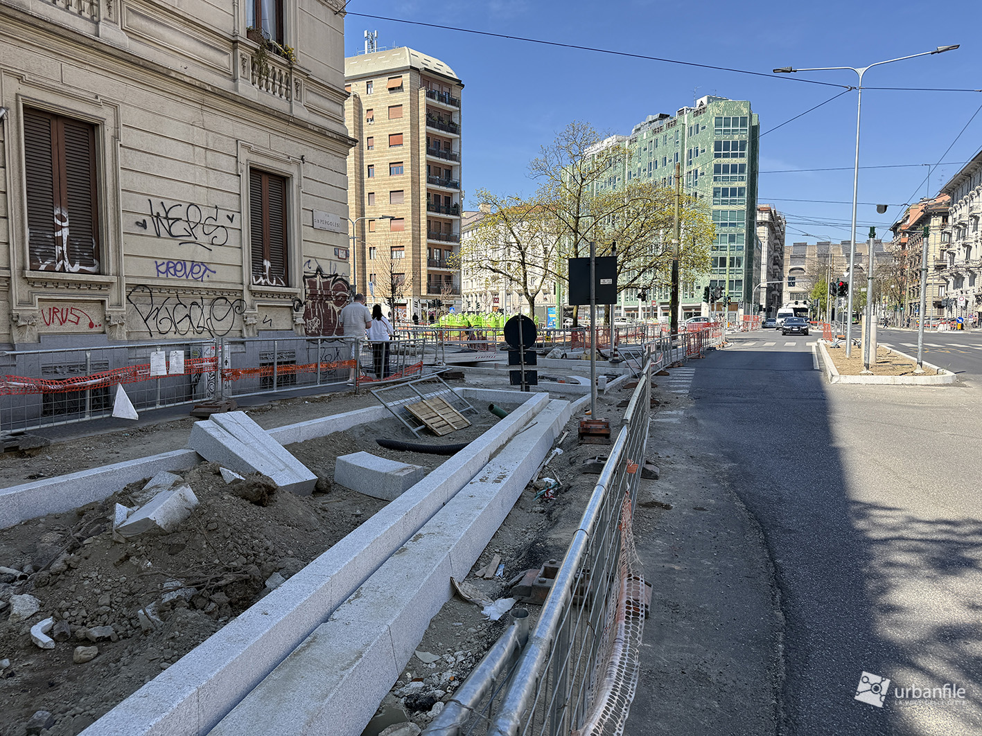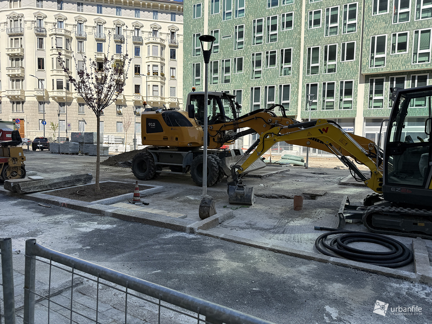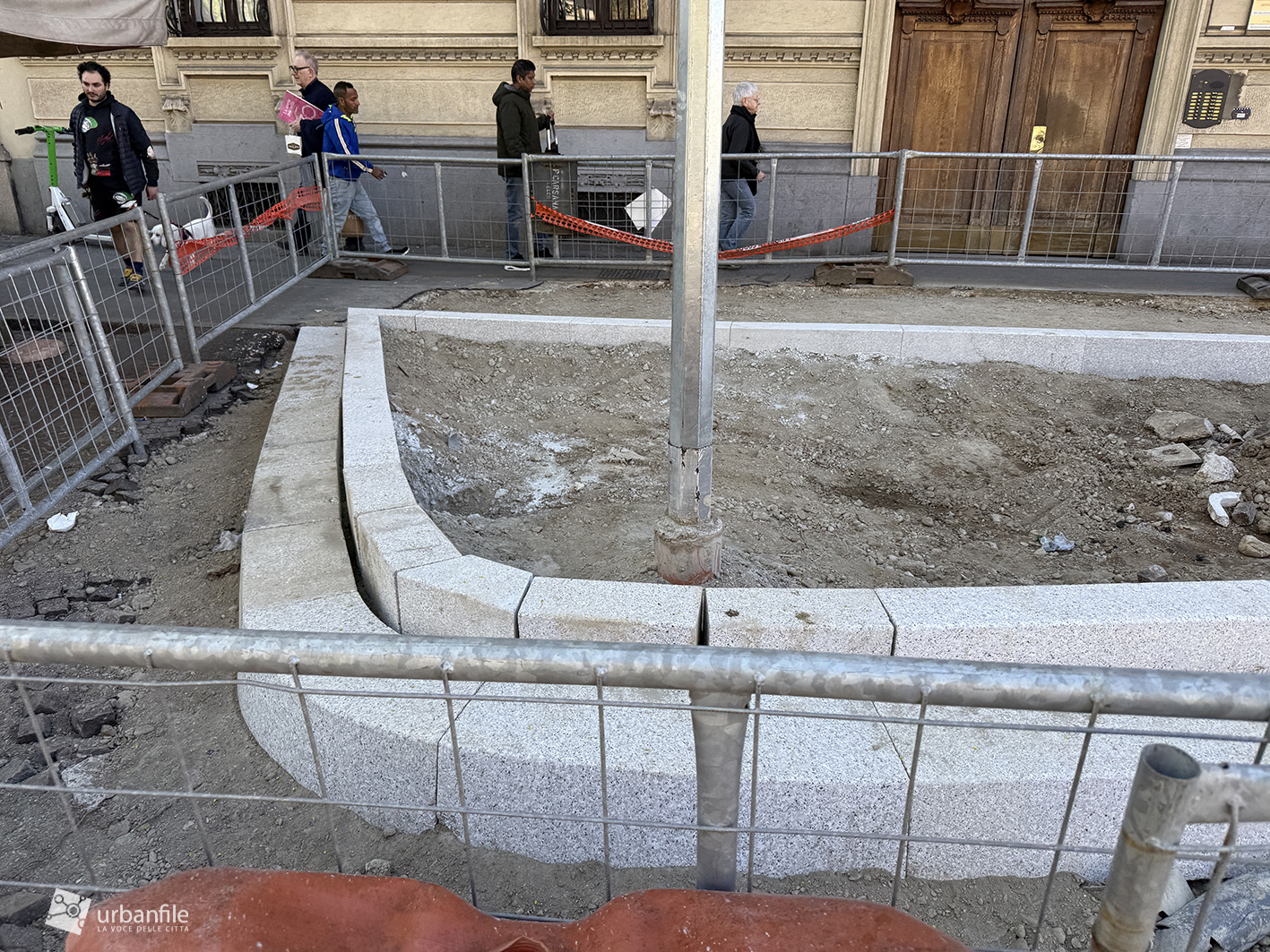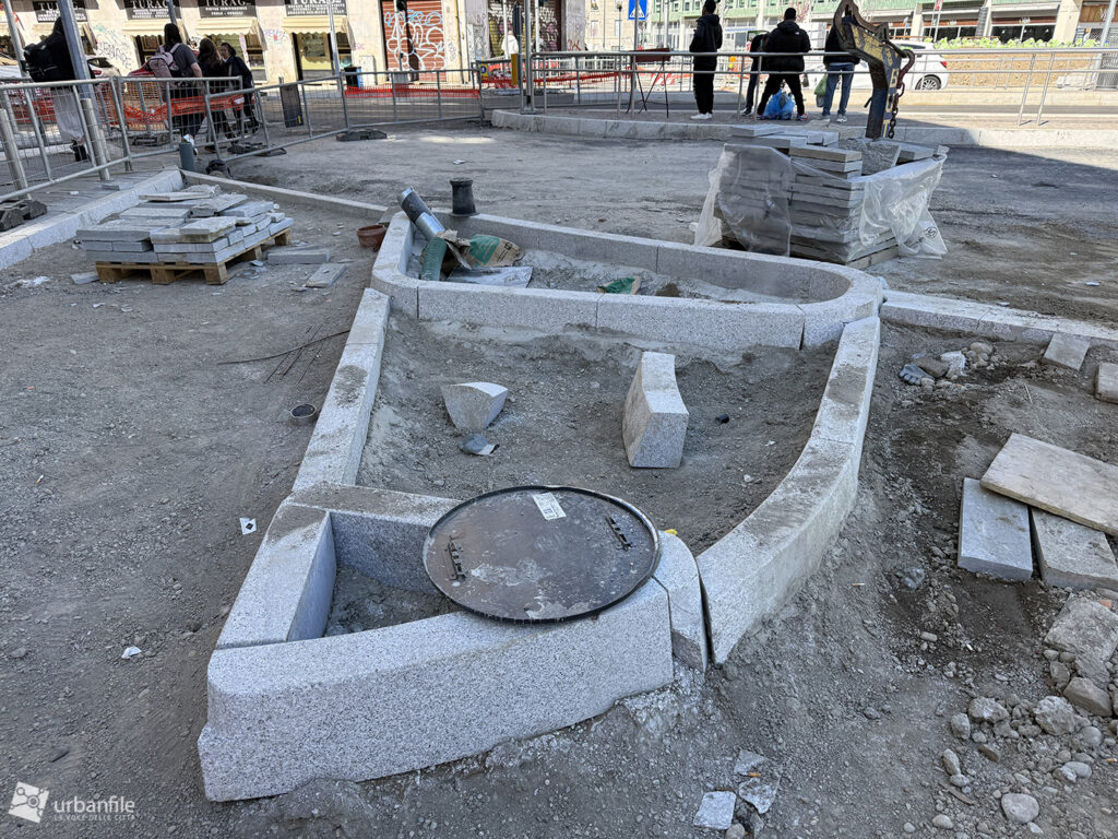 Abbiamo compiuto il nostro solito giretto attorno alla piazza circolare e al cantiere partendo dall’incrocio con via Venini, qualche foto lungo il lato nord della piazza per poi tornare verso via Andrea Doria per compiere il percorso in senso anti orario fino all’incrocio con via Pergolesi.