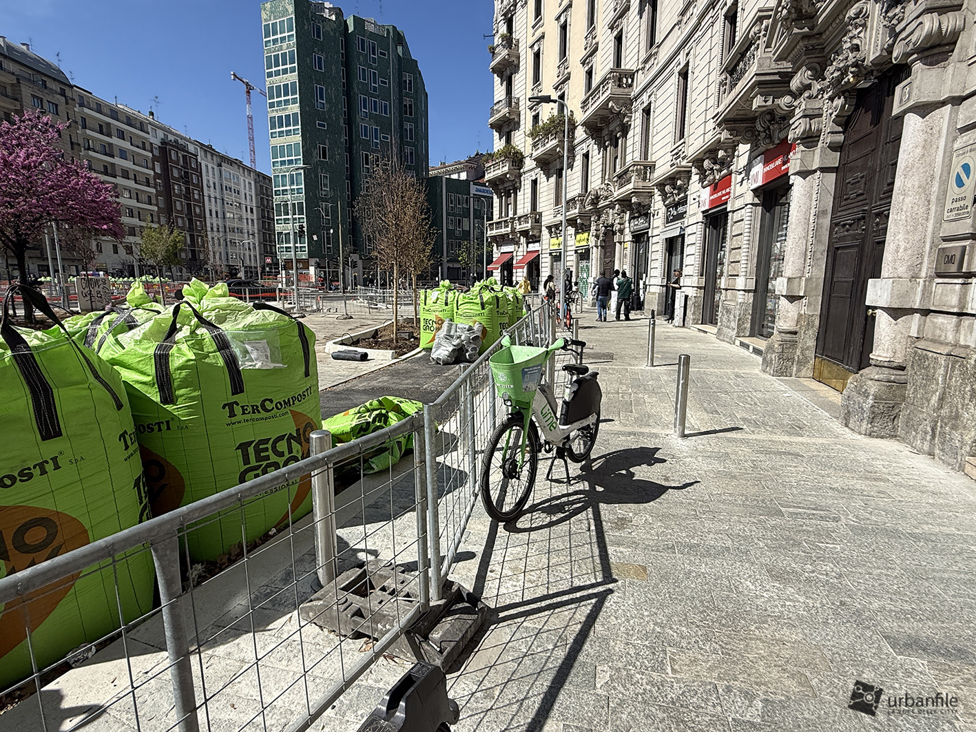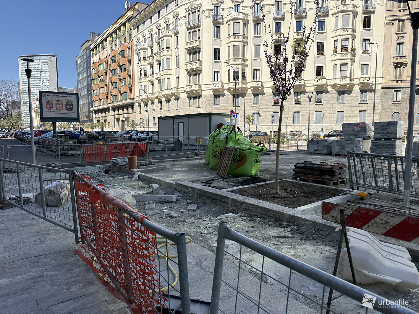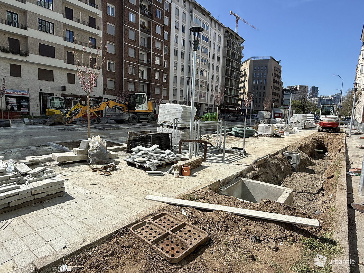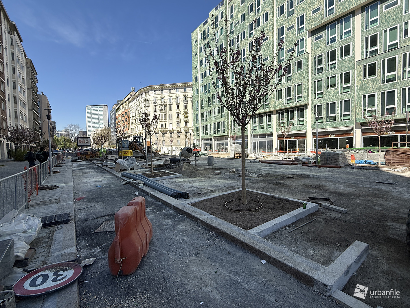 Abbiamo compiuto il nostro solito giretto attorno alla piazza circolare e al cantiere partendo dall’incrocio con via Venini, qualche foto lungo il lato nord della piazza per poi tornare verso via Andrea Doria per compiere il percorso in senso anti orario fino all’incrocio con via Pergolesi.
