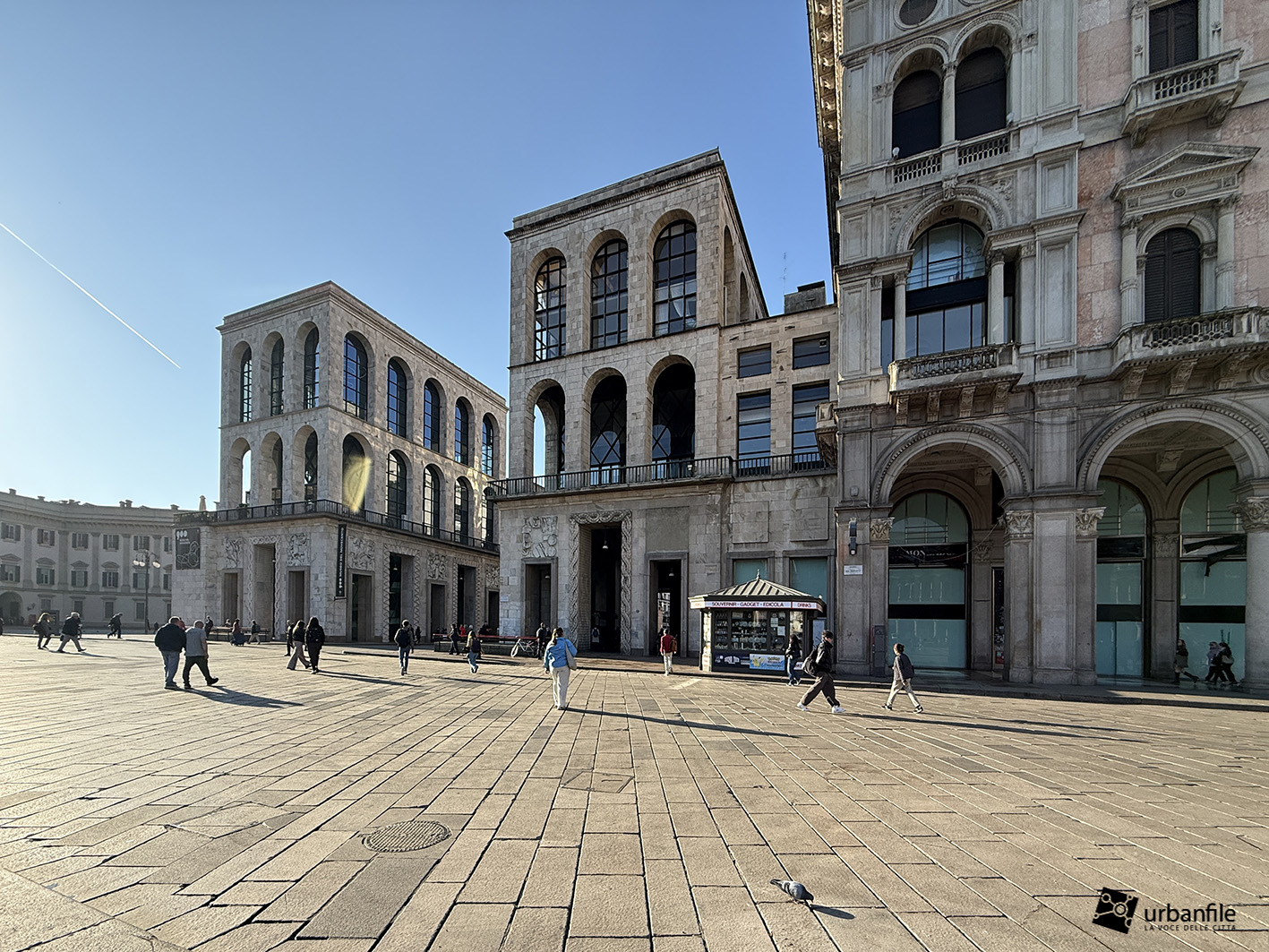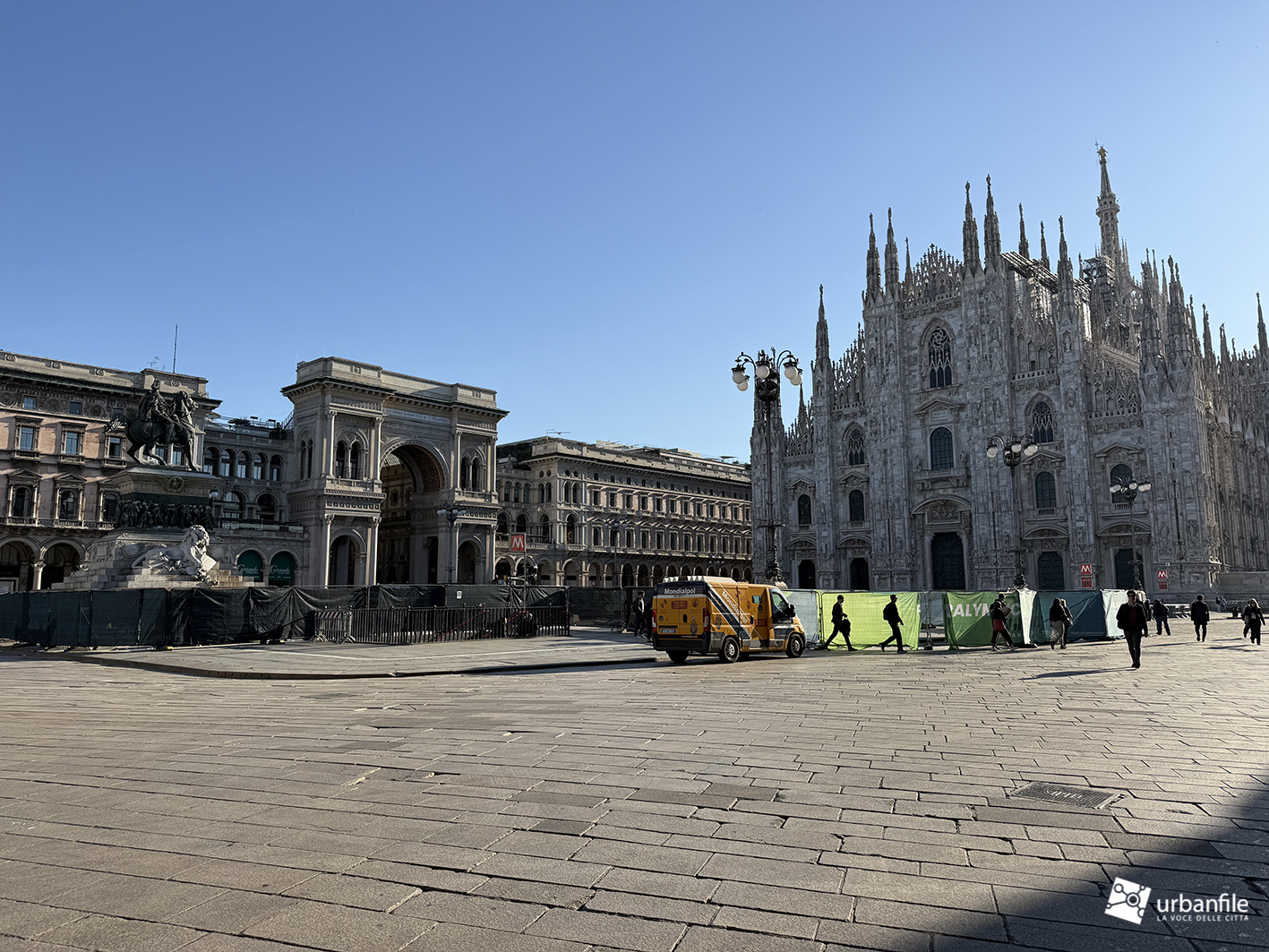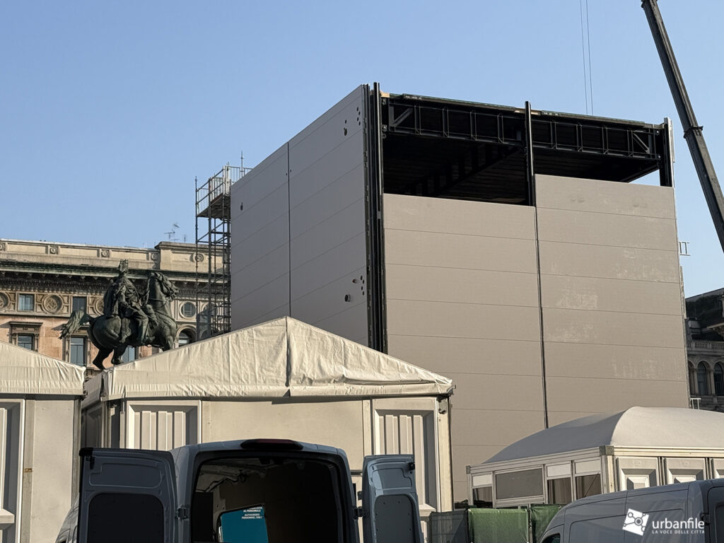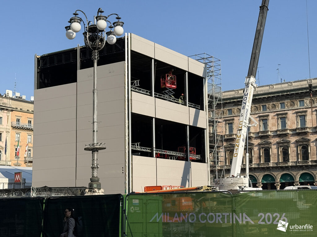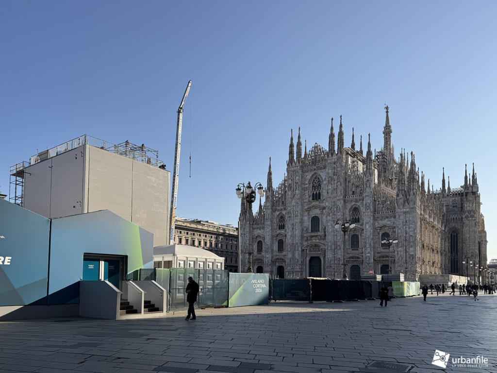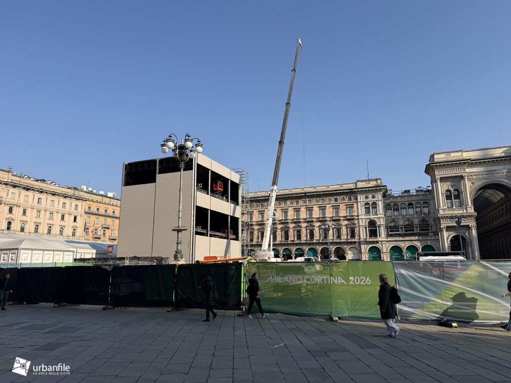 Aprile 2026. Dopo circa venti giorni di smontaggio, sono state completamente rimosse le strutture che, per quasi quattro mesi, hanno occupato la parte centrale della piazza, attorno al monumento equestre di Vittorio Emanuele II. Si trattava del grande allestimento posizionato proprio di fronte al Duomo di Milano, simbolo della città: una struttura destinata a ospitare gli studi televisivi internazionali per la copertura dei Giochi Olimpici Invernali Milano-Cortina 2026.