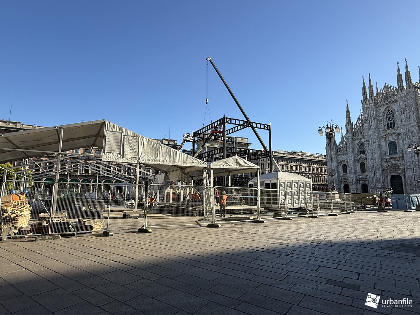 L’evento si è ormai concluso da settimane e, fortunatamente, queste strutture sono state rimosse, restituendo ordine e respiro alla piazza. Resta però l’attesa — sempre più urgente — per un intervento di restauro e riqualificazione dei palazzi porticati che formano piazza del Duomo, che appaiono segnati da un progressivo e preoccupante degrado.