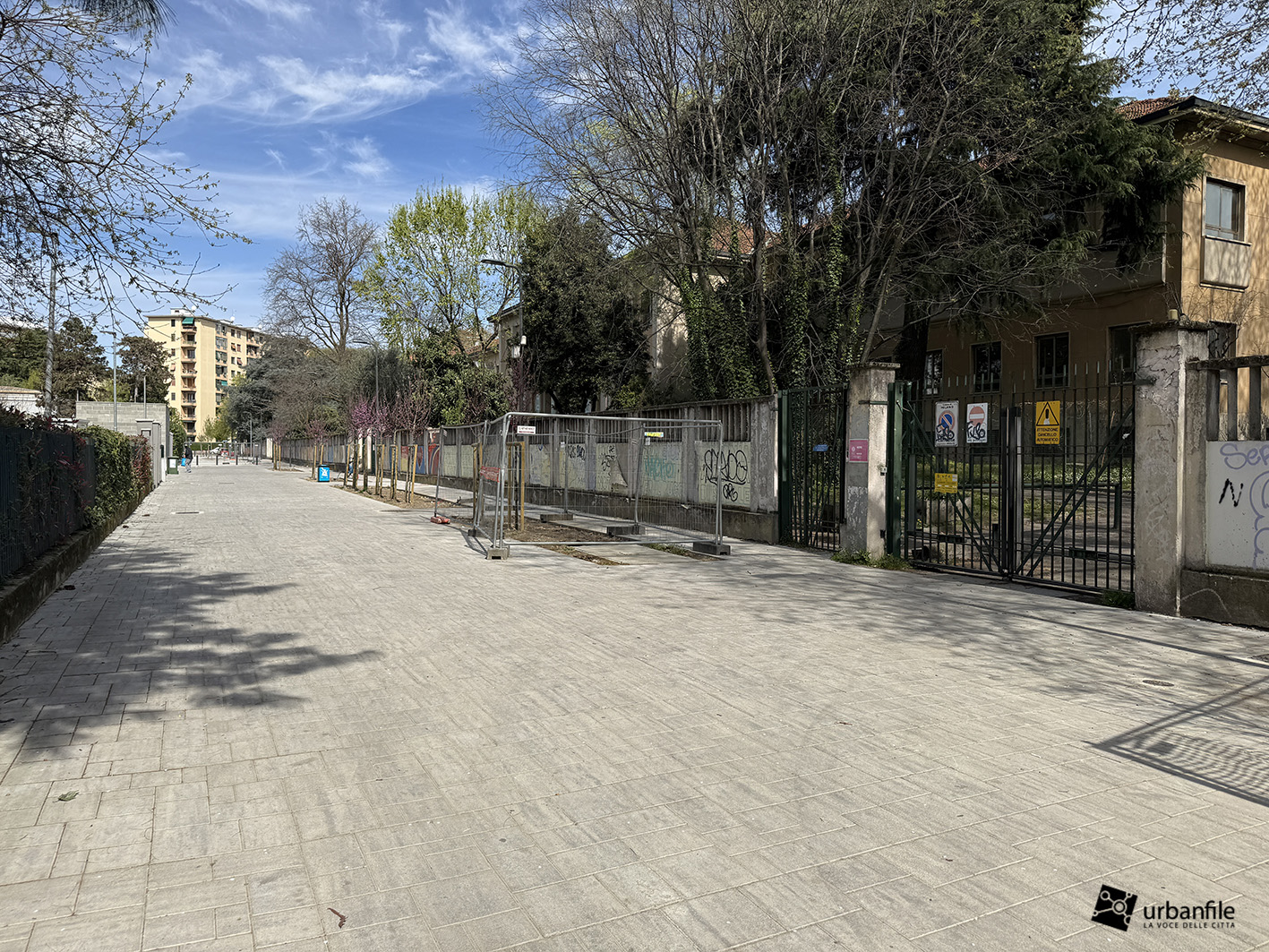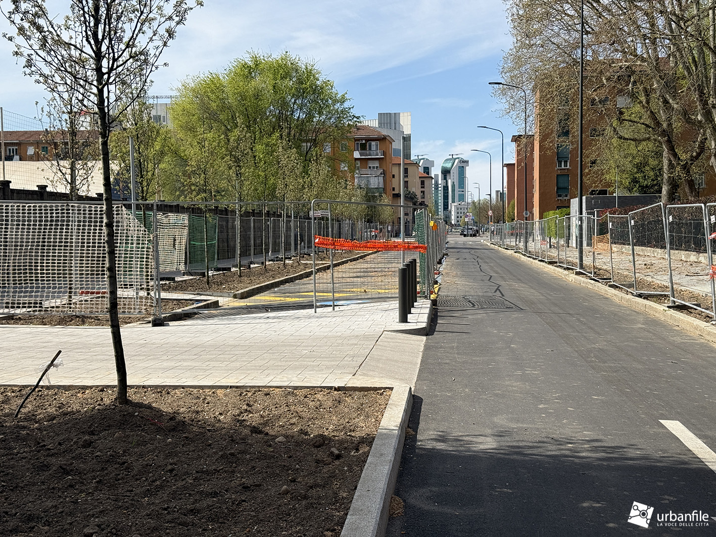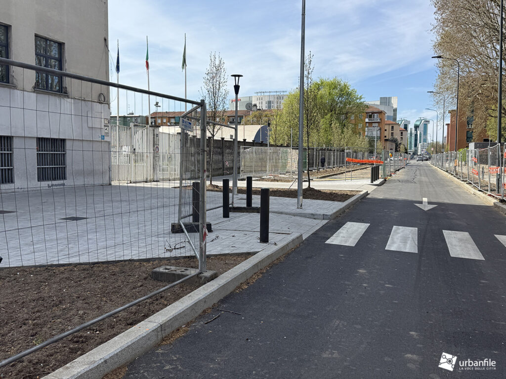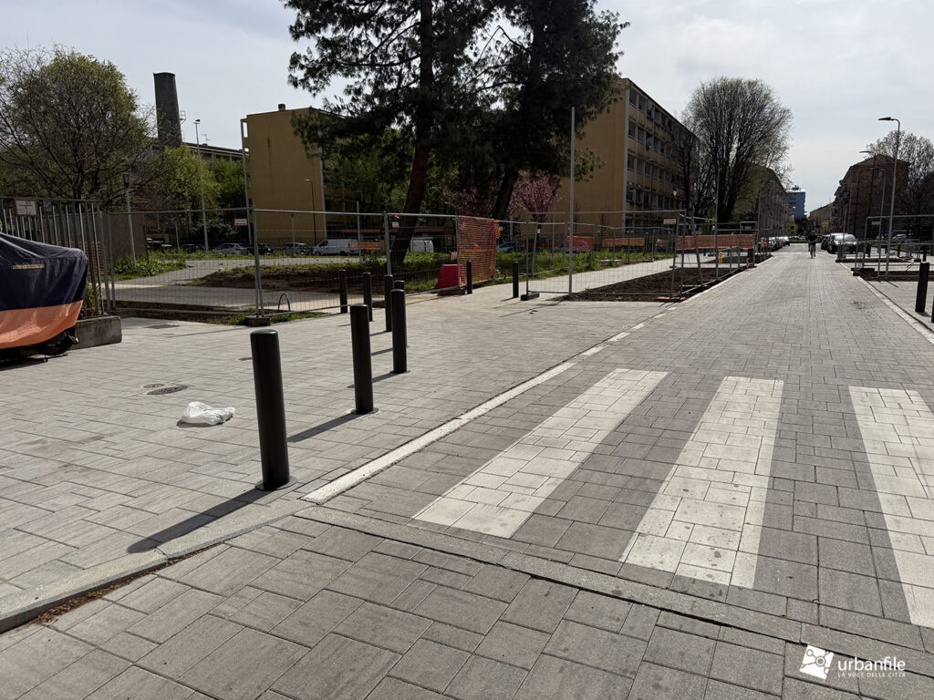 Cominciamo il nostro giretto da Via dei Giaggioli angolo via Lorenteggio e via dei Giacinti, già completata ma ancora in attesa di piante e apertura completa al transito.