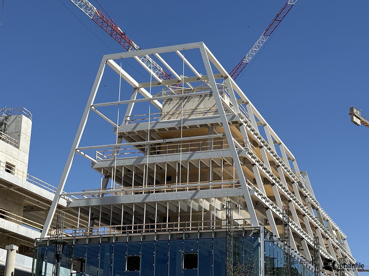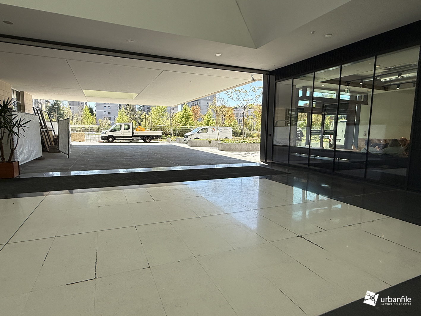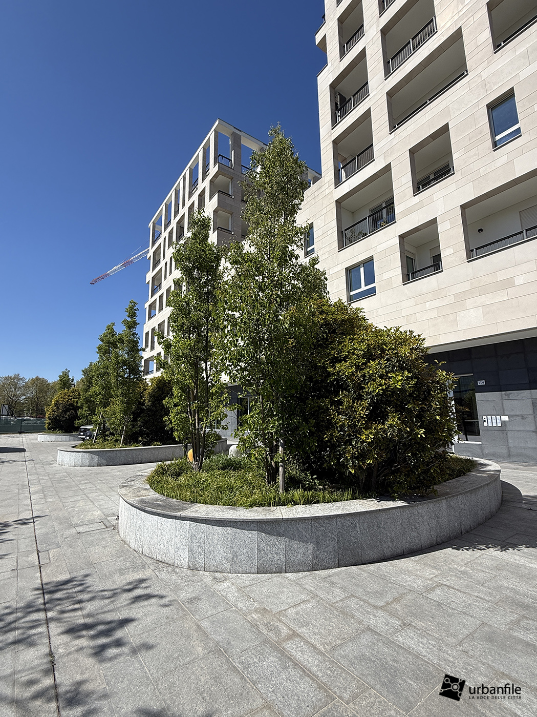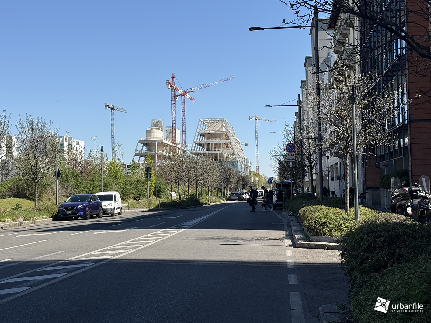 Il resto dell’area in cantiere è la seguente: aree comuni e percorsi pedonali ancora da ultimare, così come il cantiere dell’Hotel. Collegamento con viale Umbria aperto.