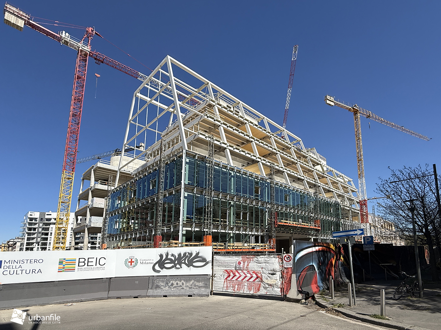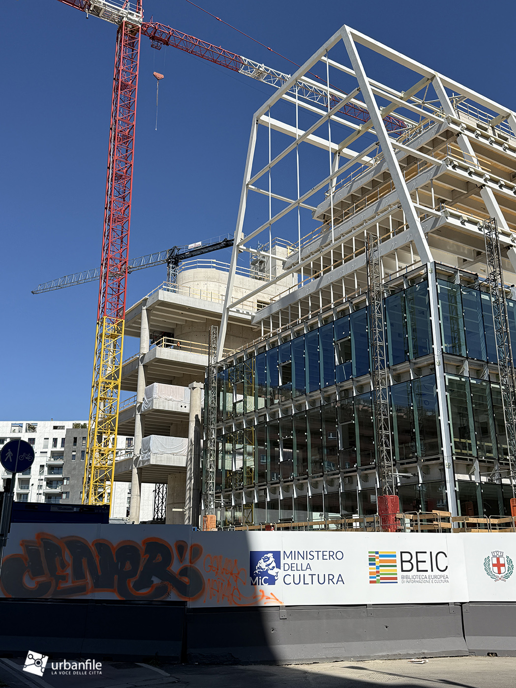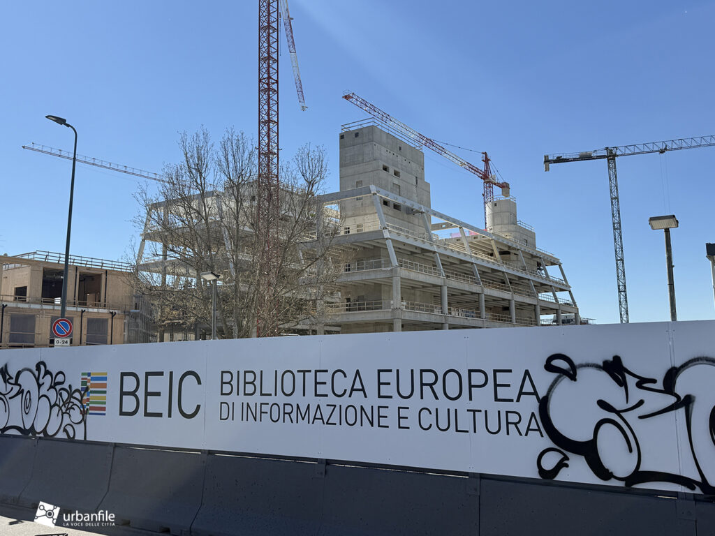 Cominciamo col cantiere per la costruzione della BEIC – Biblioteca Europea di Informazione e Cultura – in fase di realizzazione nell’area di viale Molise, via Monte Ortigara e Via Cervignano, un cantiere partito nel novembre 2023.