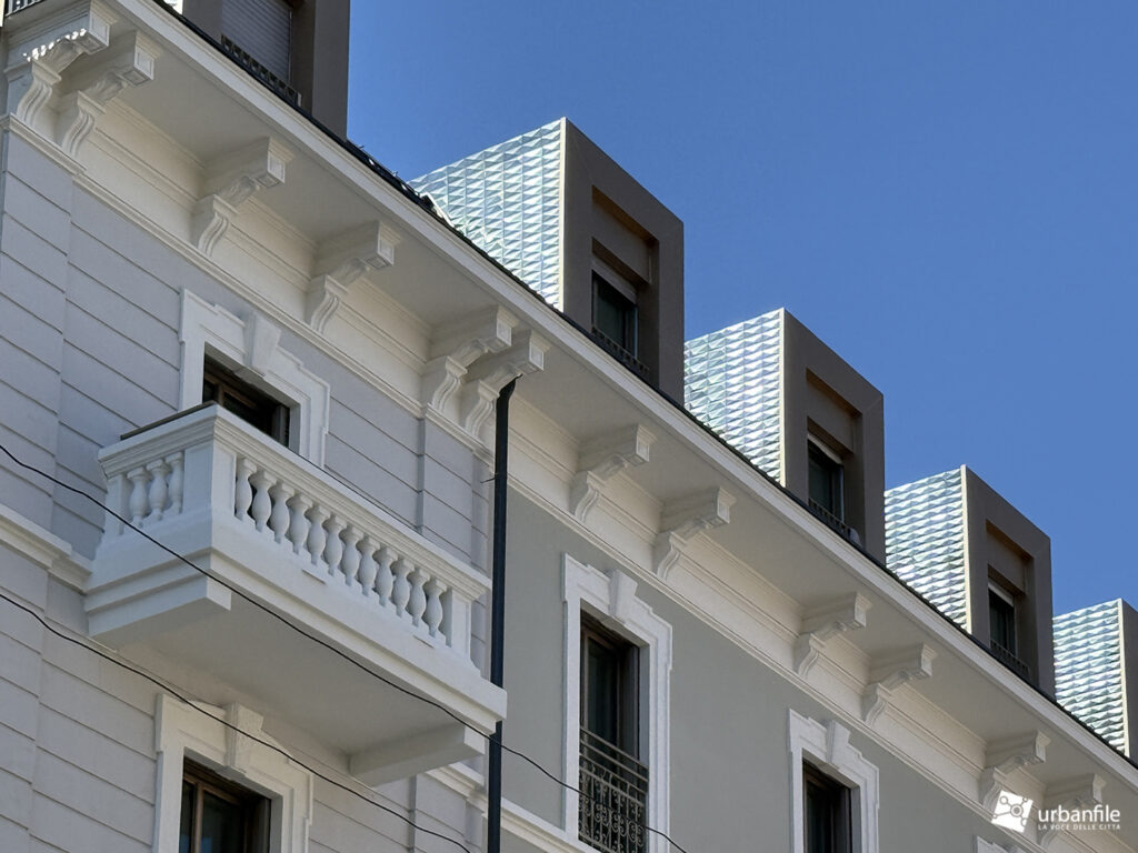 Lo scorso anno abbiamo visto l’avvio del cantiere per la riqualificazione con recupero del sottotetto di una deliziosa palazzina a uso residenziale e commerciale di fine Ottocento/inizio Novecento, situata in Via Benvenuto Cellini 11 (angolo Via Marcona). Ora è già in fase di “spacchettamento” e possiamo già ammirare la firma dello studio AF517* – Atelier(s) Alfonso Femia, che lascia il suo particolare “marchio” negli abbaini del nuovo piano del sottotetto.
