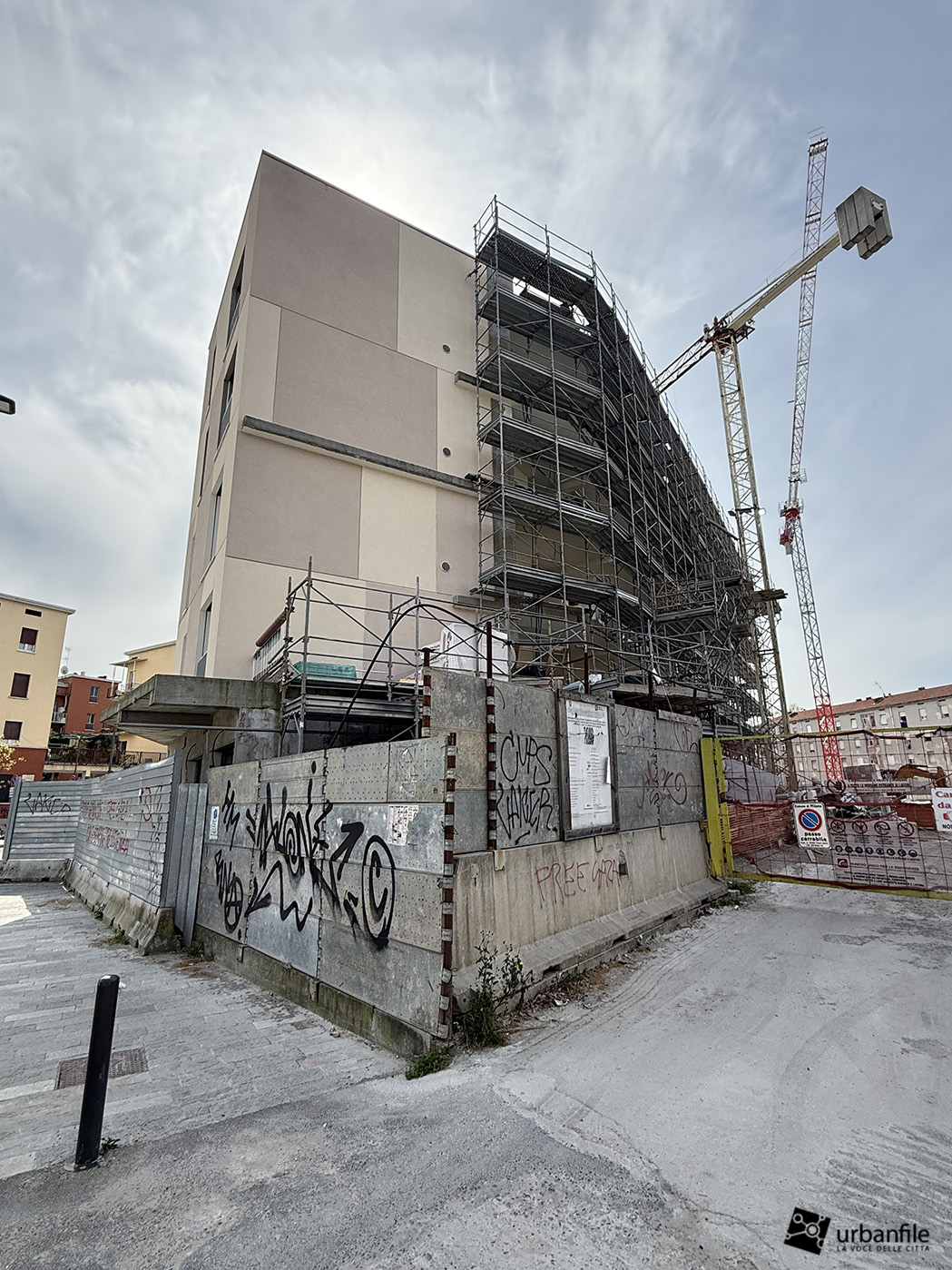 Ora le tre stecche hanno preso il posto dei palazzi demoliti. Quello che affaccia su via dei Giacinti mostra già la sua facciata, una casa di ringhiera degli anni 2000.
