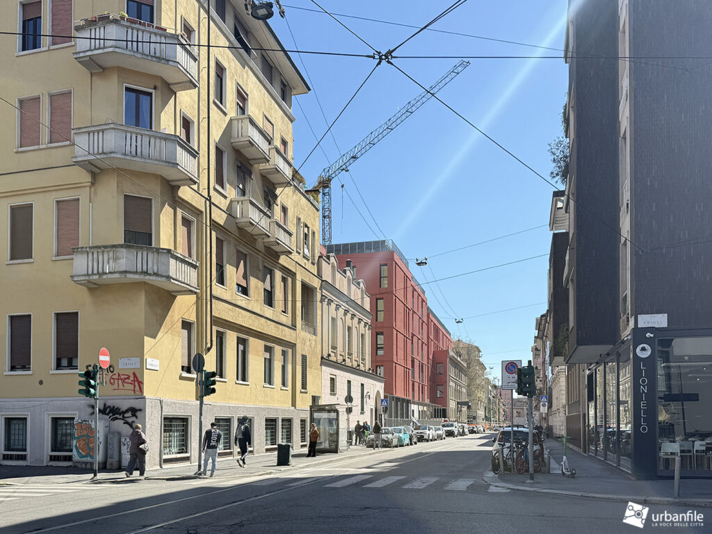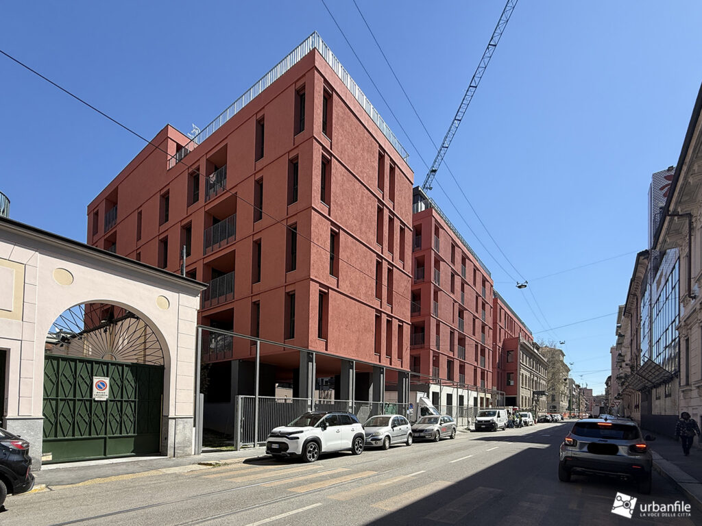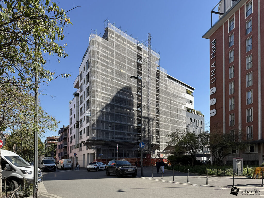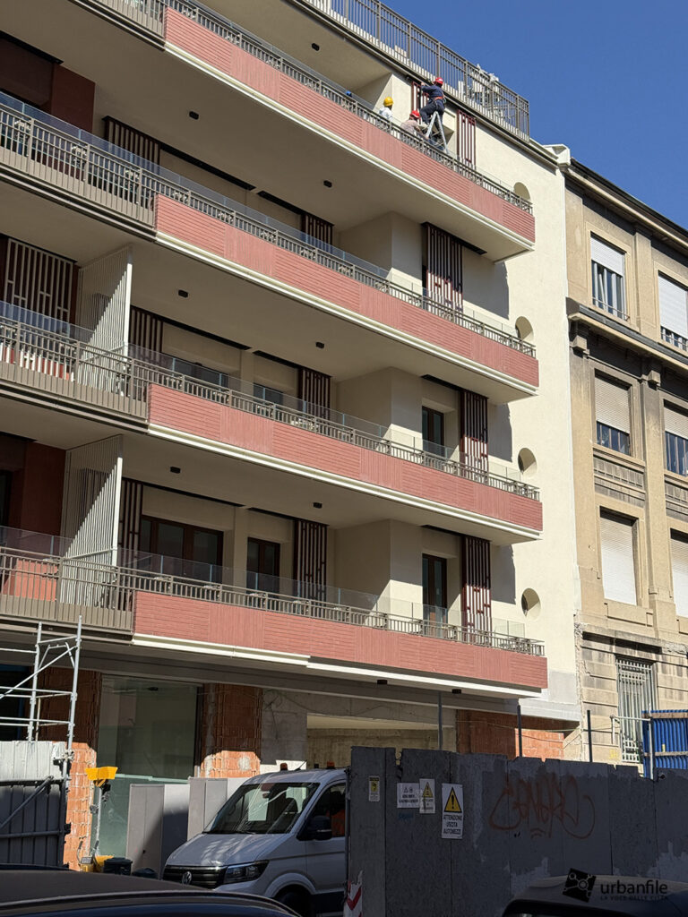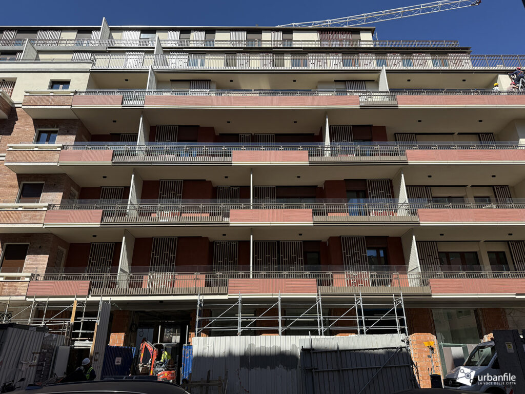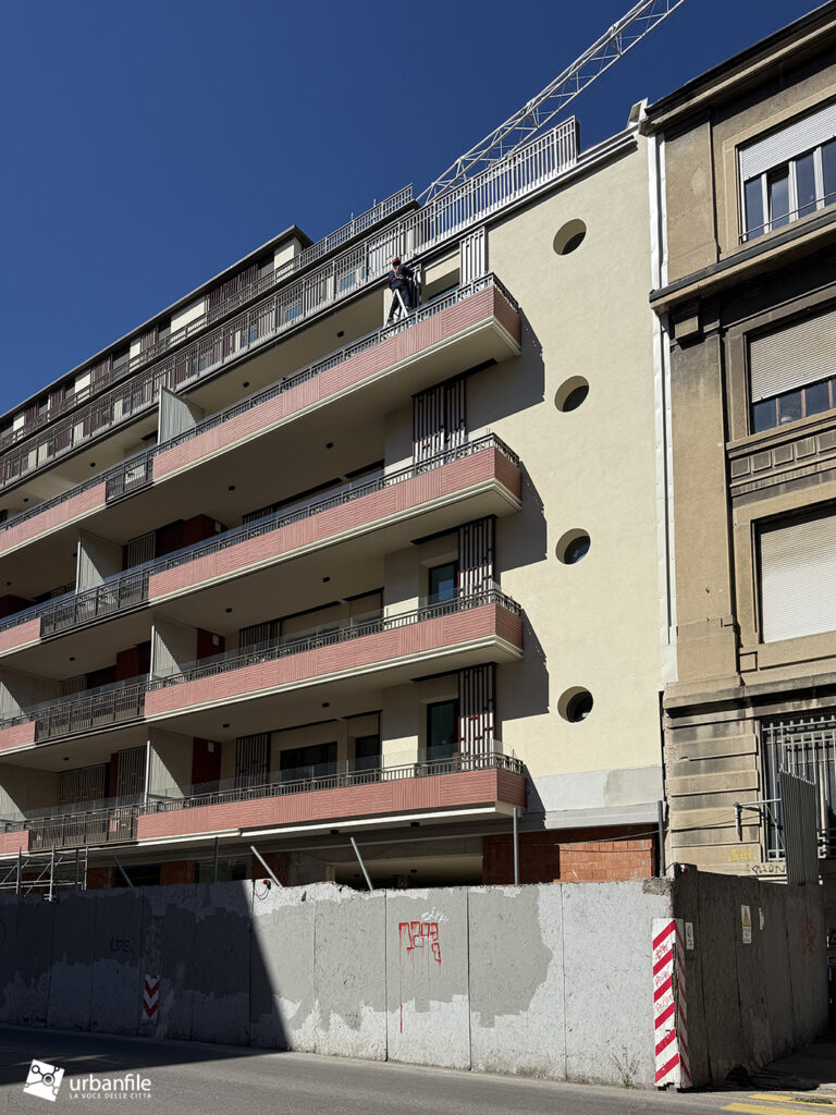 Dimore Milanesi di via Comelico 41 è ormai in dirittura d’arrivo, con buona parte delle facciate completate. Onestamente speravamo di vedere progressi maggiori tornando in loco, ma c’è ancora la gru e qualcosa da completare c’è ancora.