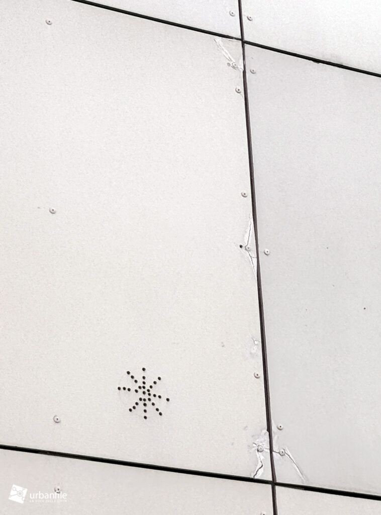 Via Lodovico Muratori 13 è un edificio completato nel 2012/13, notavamo (come succede un po’ spesso ormai, con i materiali da costruzione moderni) che è in ristrutturazione. Non ne conosciamo le motivazioni, ma come avevamo già visto, l’edificio che ha circa una decina d’anni è stato “impacchettato” per la sistemazione dei rivestimenti e una manutenzione straordinaria. Che dire, le nuove costruzioni dureranno “un eternità”…