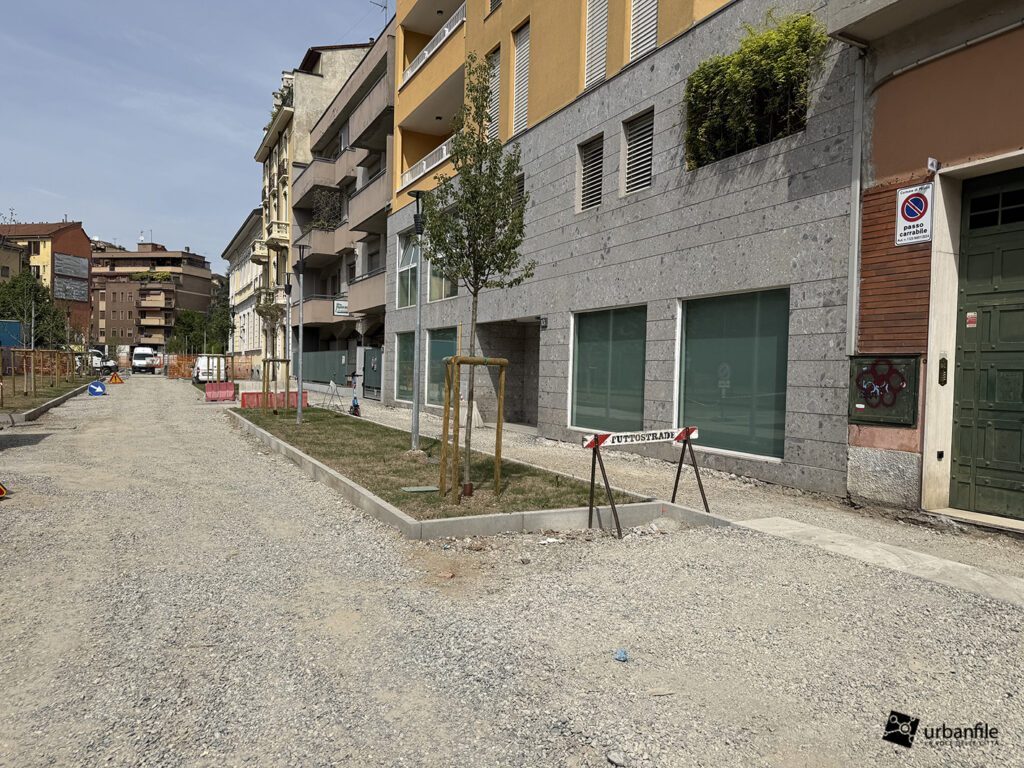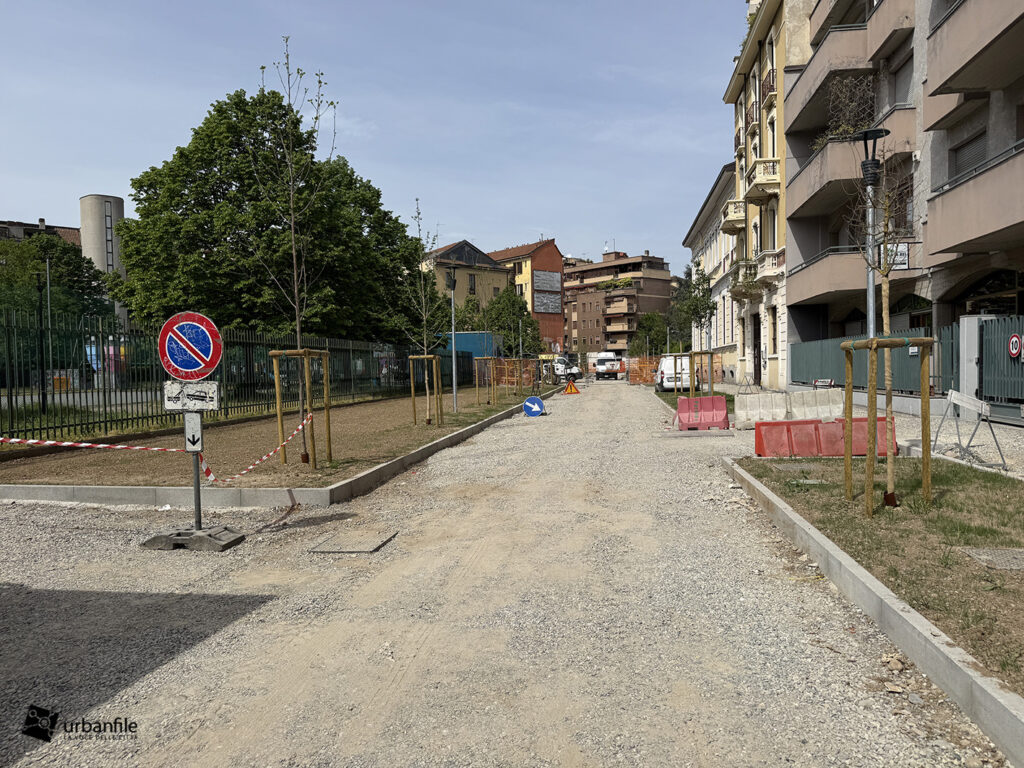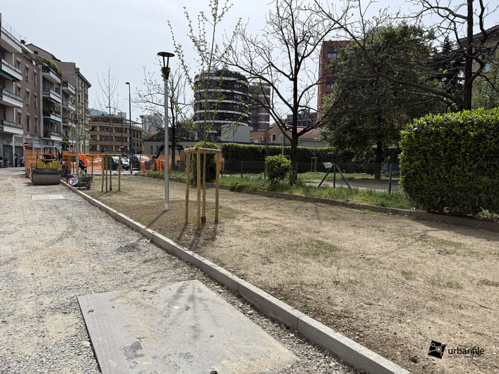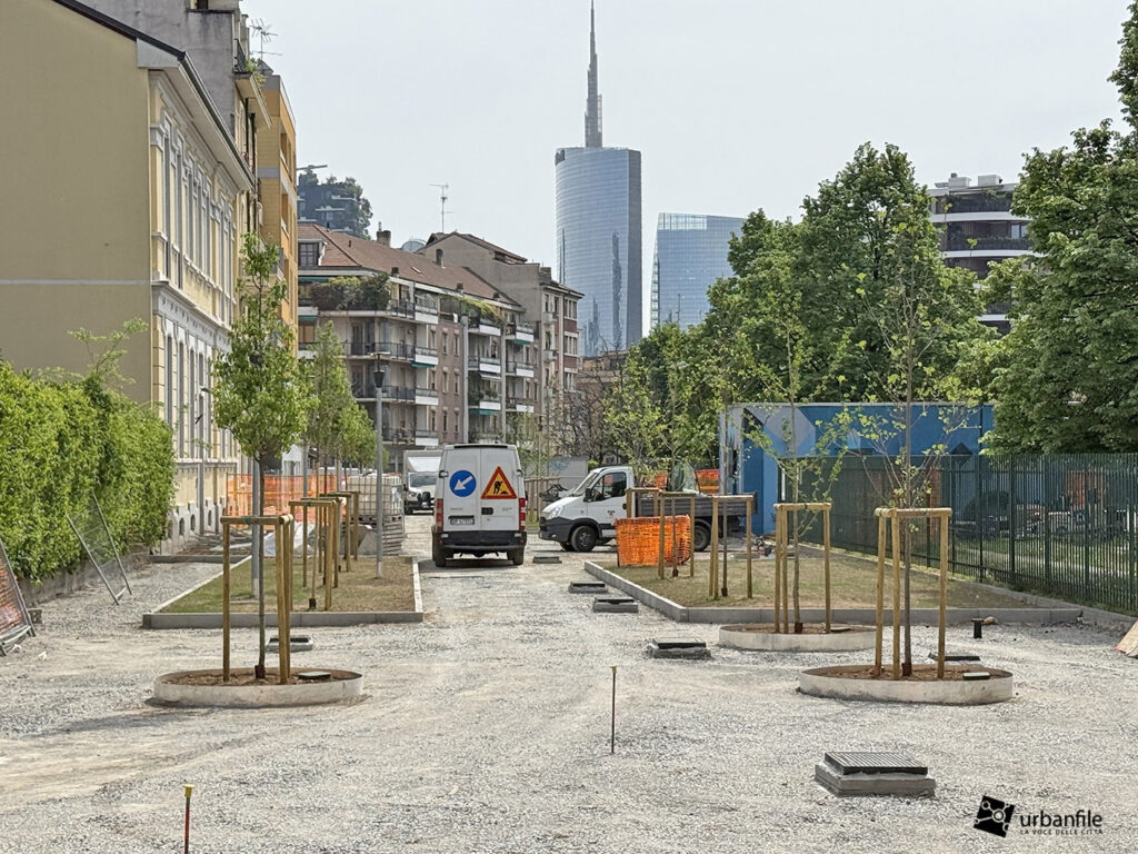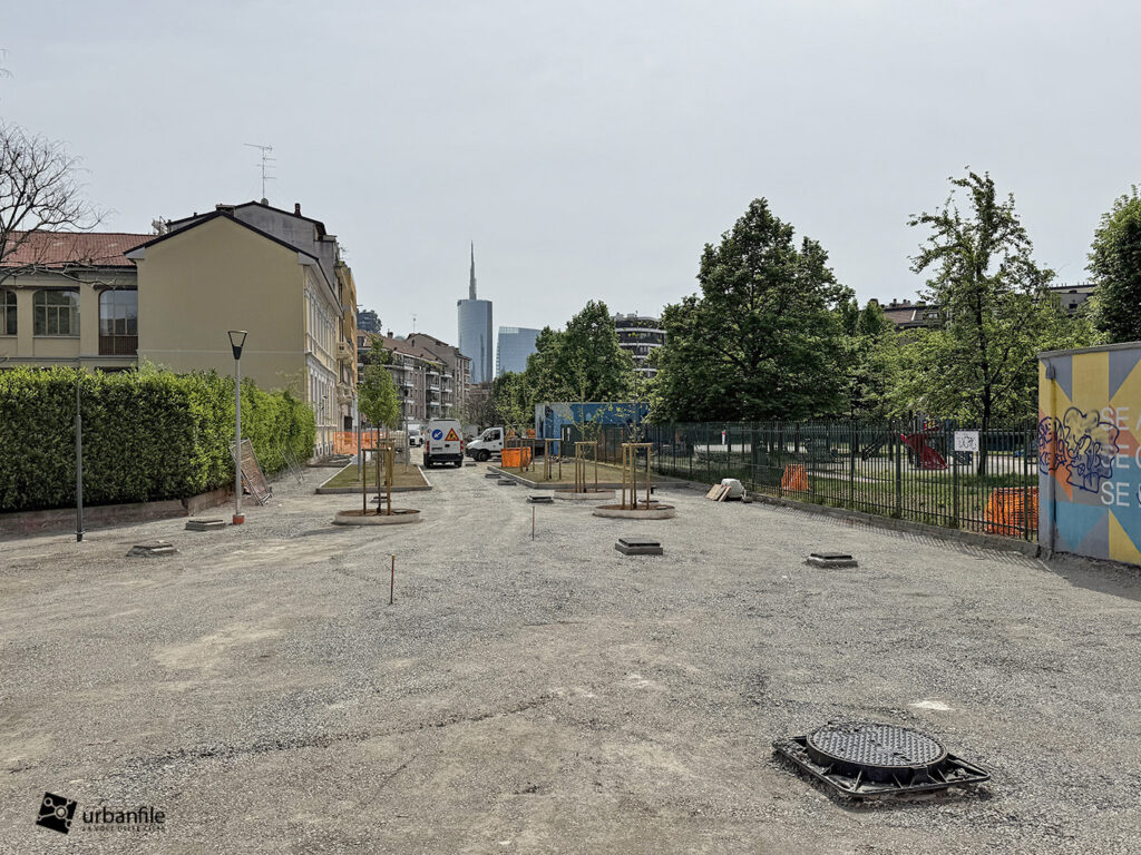 Aprile 2026. Dallo scorso ottobre sono in corso i lavori al cantiere per rendere definitivo l’esperimento di “piazza aperta” in via Toce, all’Isola. Il progetto prevede la pedonalizzazione di una parte della via, in prossimità di due parchi esistenti: il Giardino Santa Maria alla Fontana e il Giardino Bruno Munari trasformandolo in un unico spazio urbano per i pedoni. Da alcune settimane sono state inserite le piante, e la via comincia ad avere un aspetto definitivo con aiuole e parterre pedonale.