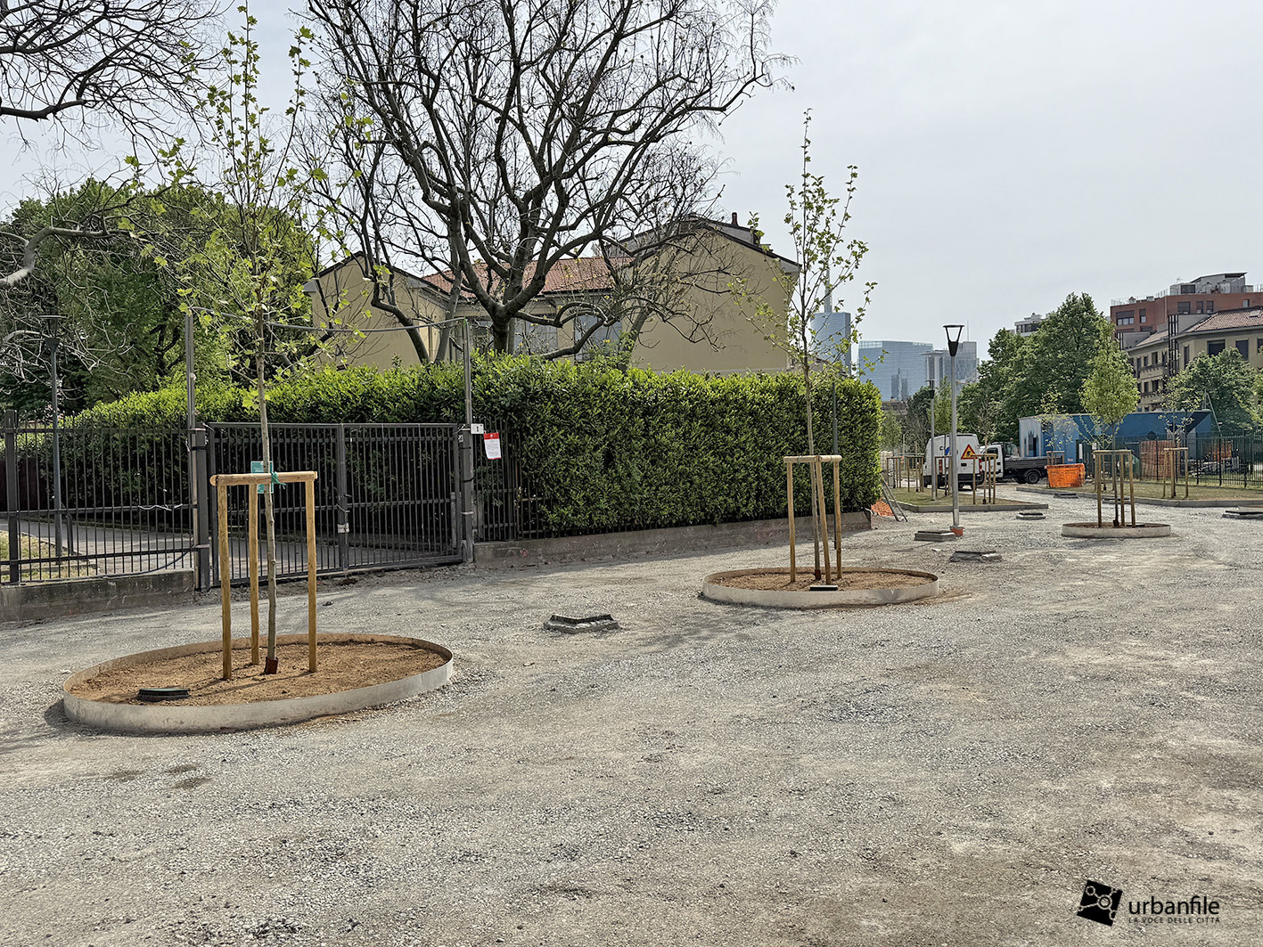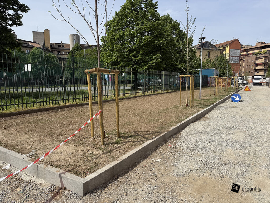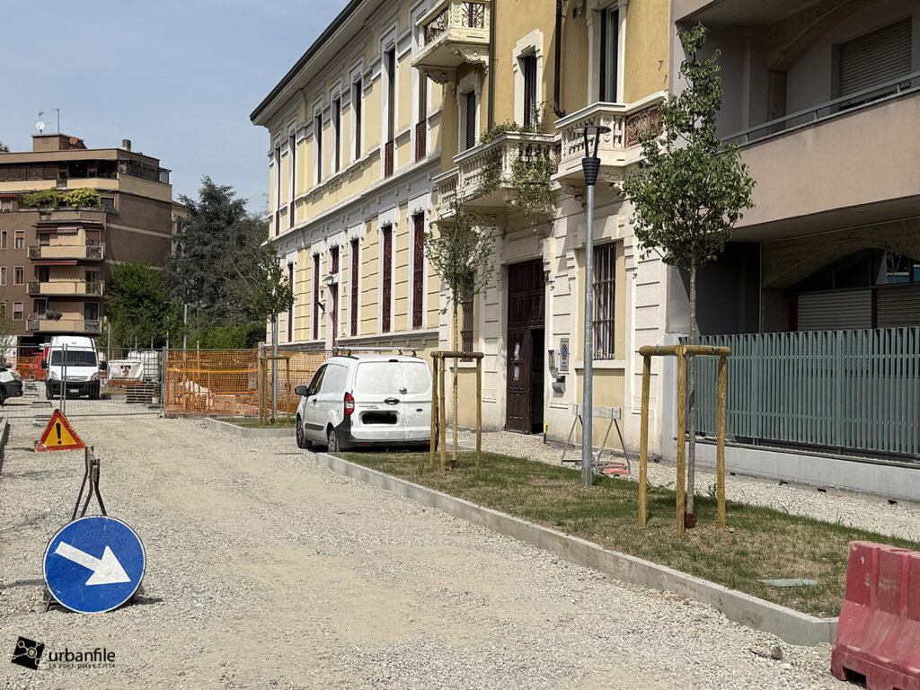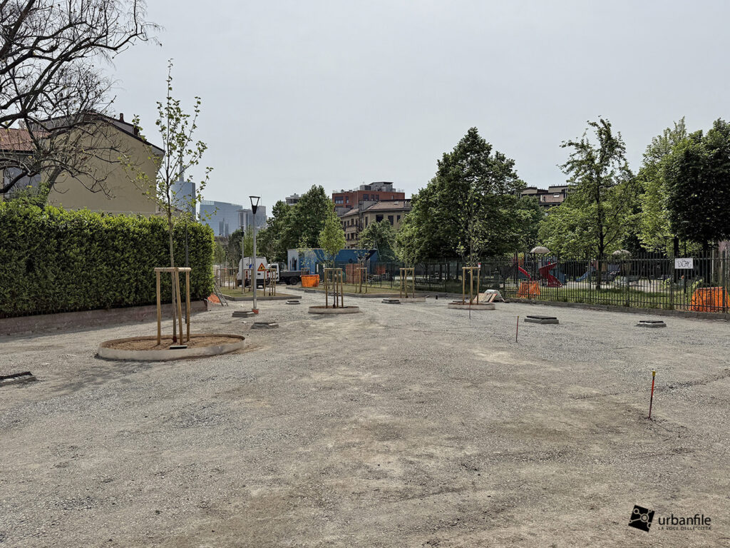 Aprile 2026. Dallo scorso ottobre sono in corso i lavori al cantiere per rendere definitivo l’esperimento di “piazza aperta” in via Toce, all’Isola. Il progetto prevede la pedonalizzazione di una parte della via, in prossimità di due parchi esistenti: il Giardino Santa Maria alla Fontana e il Giardino Bruno Munari trasformandolo in un unico spazio urbano per i pedoni. Da alcune settimane sono state inserite le piante, e la via comincia ad avere un aspetto definitivo con aiuole e parterre pedonale.