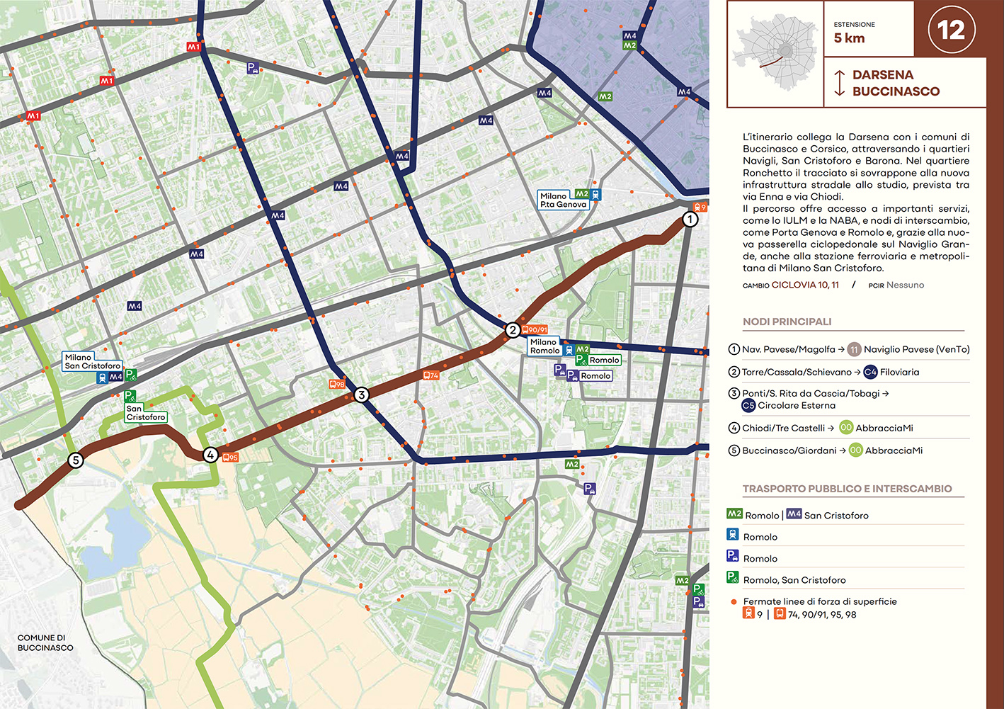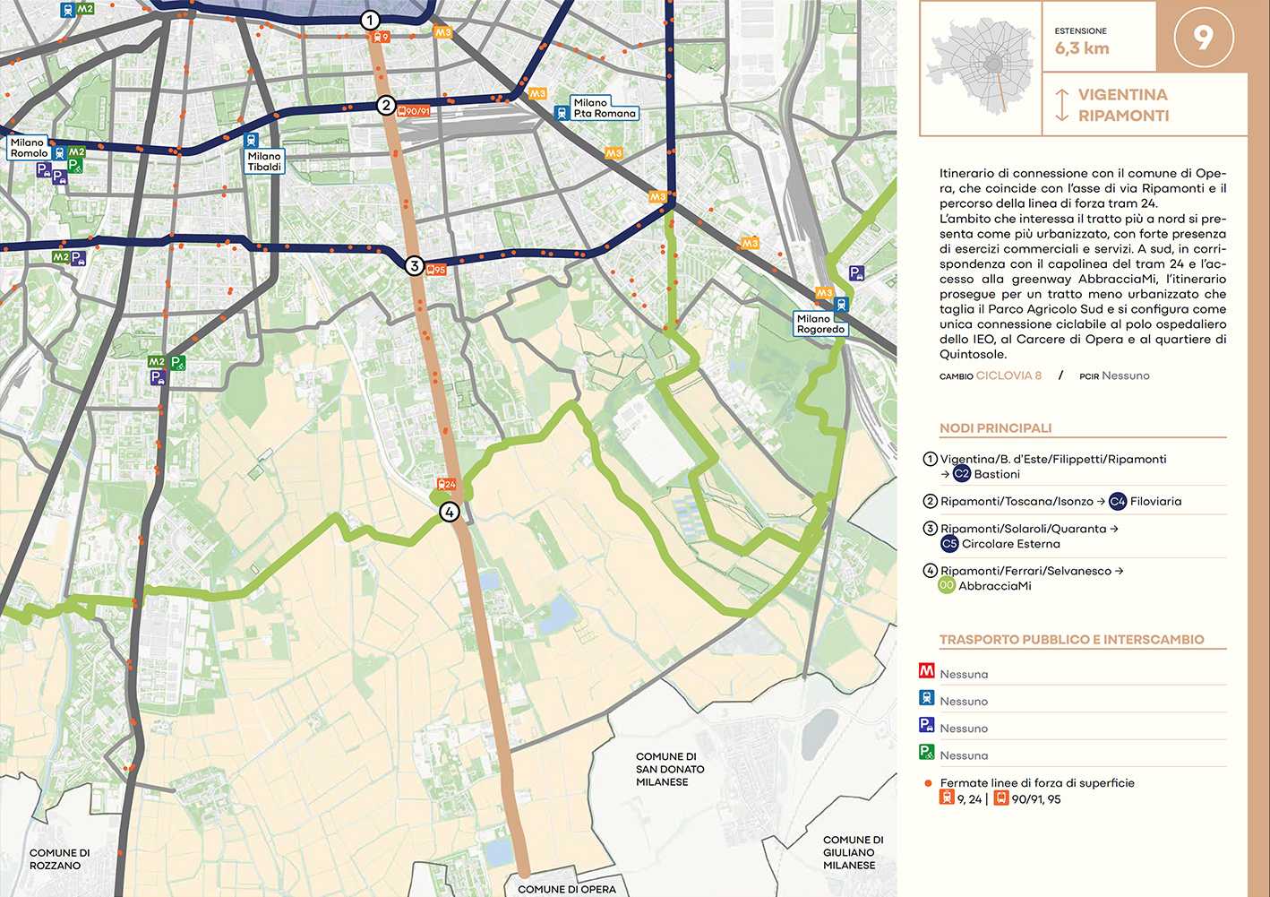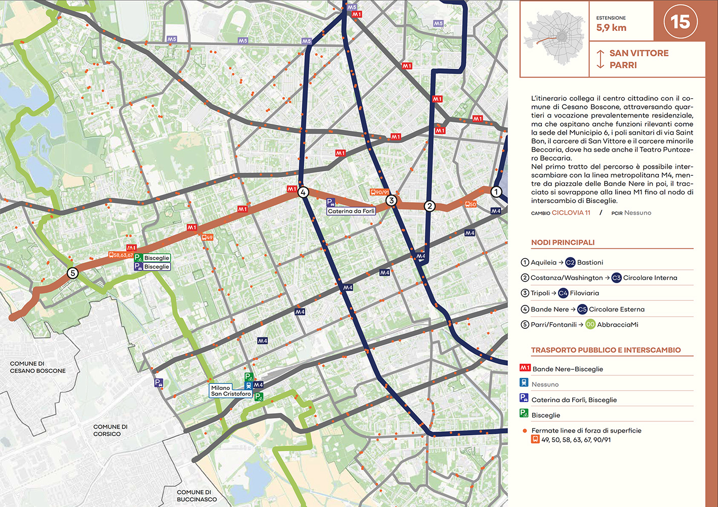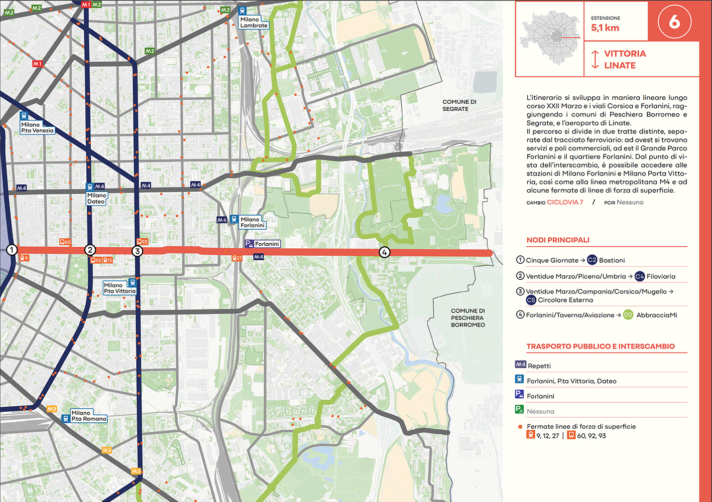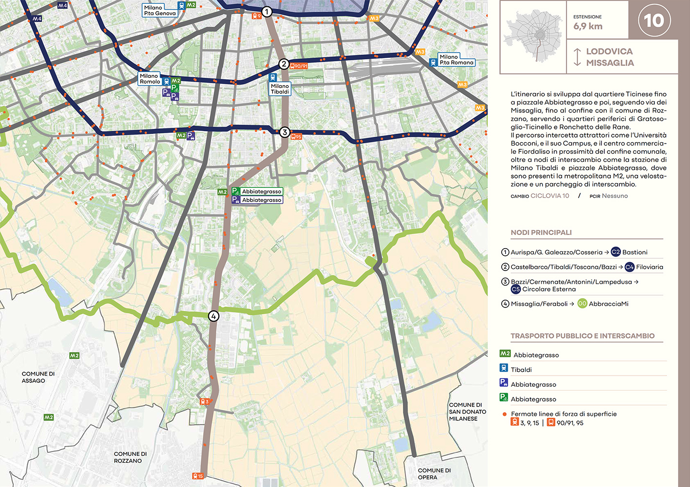 Per quanto riguarda la mobilità ciclabile, il documento prevede una rete complessiva di 565 km, articolata in 210 km di percorsi principali (suddivisi in 29 itinerari) e 355 km secondari. Attualmente è stato realizzato circa il 46% della rete principale. Alcuni tracciati strategici sono già oltre l’80% di completamento, tra cui Buenos Aires-Monza, Gioia-Martesana, Monforte-Corelli, Naviglio Pavese (VenTo), Naviglio Grande, Sempione-Gallarate e Garibaldi-Testi.