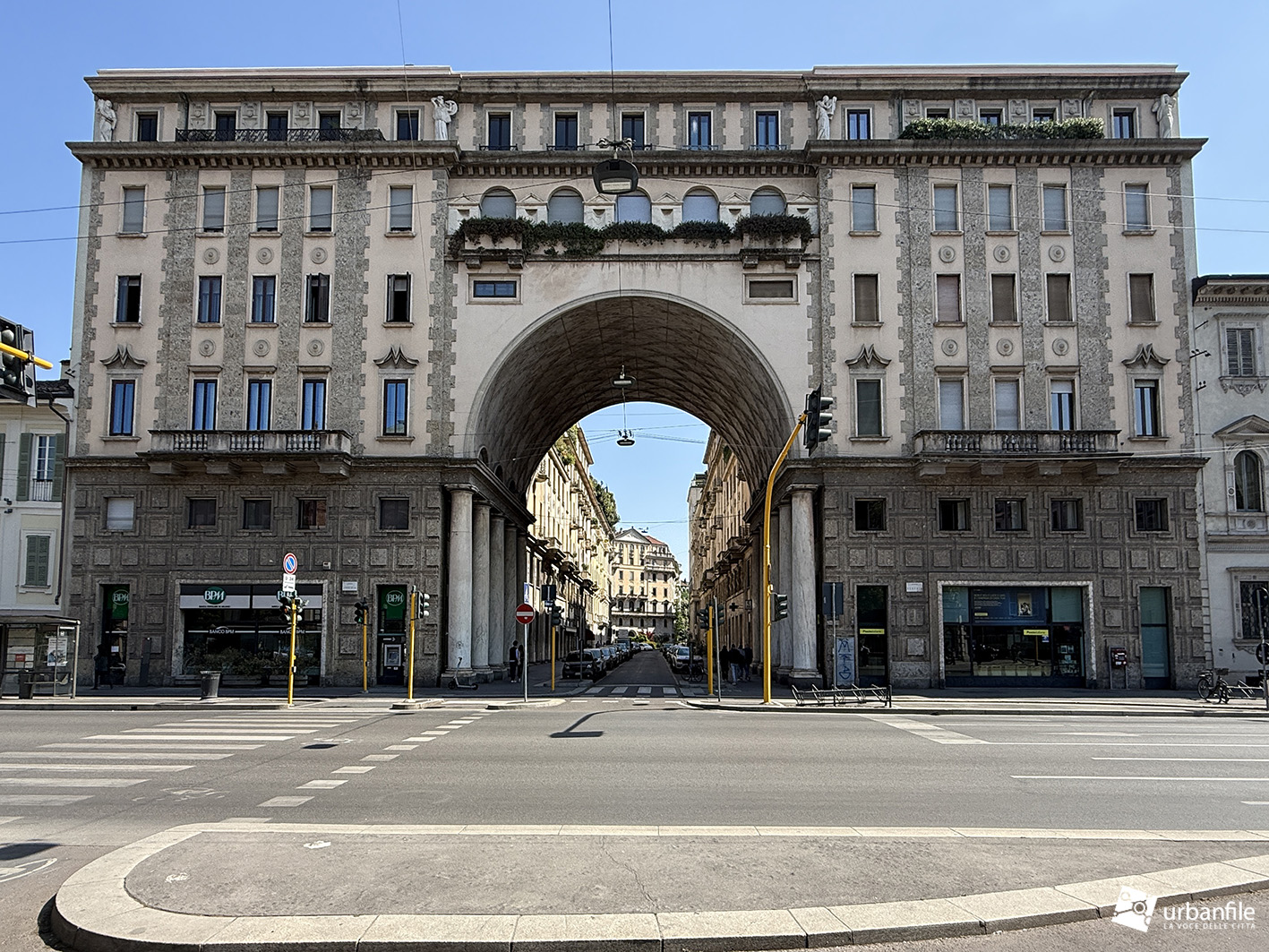 In Corso Venezia, a pochi passi dall’omonima porta e di fronte ai Giardini Pubblici, si trova lo splendido Palazzo della società Buonarroti-Carpaccio-Giotto, noto anche per il celebre arco di Corso Venezia, realizzato tra il 1926 e il 1930 su progetto dell’architetto milanese Piero Portaluppi.