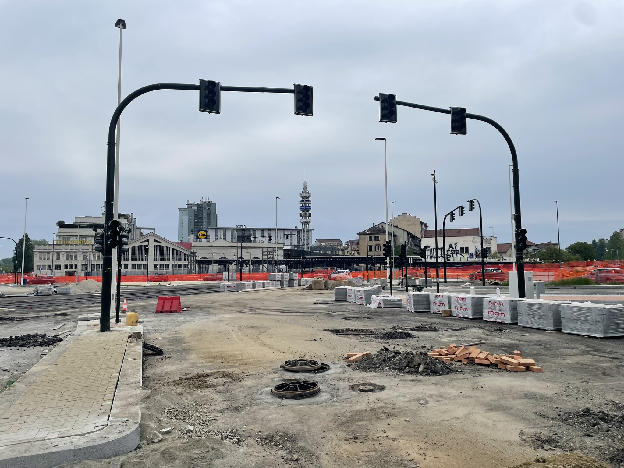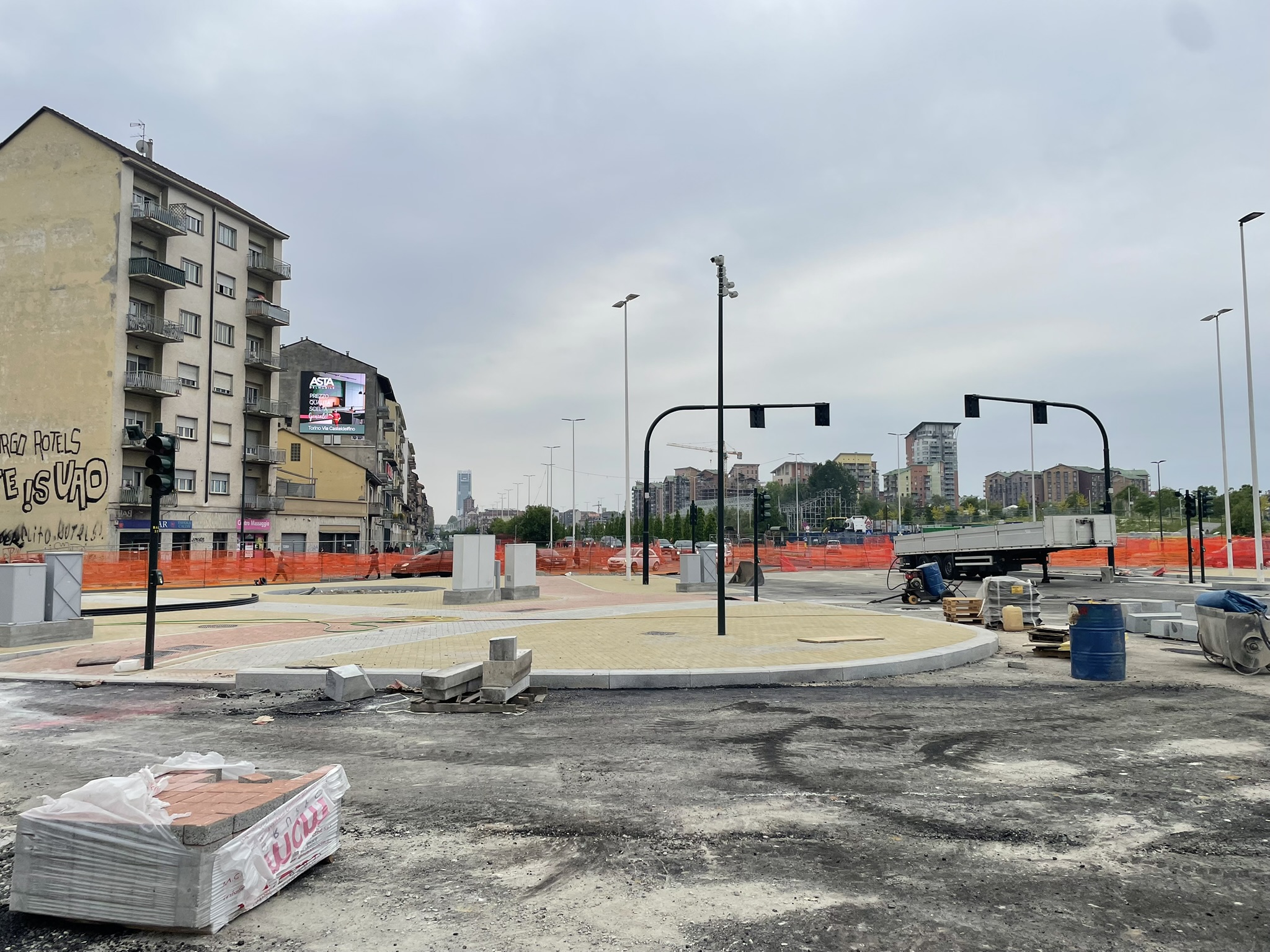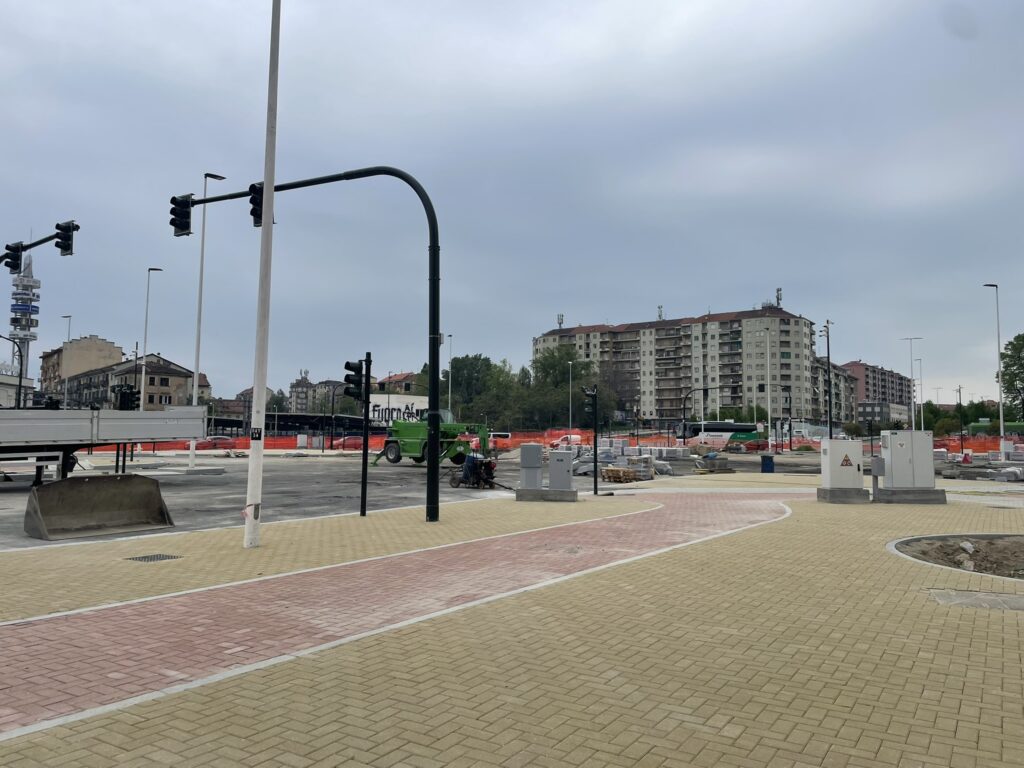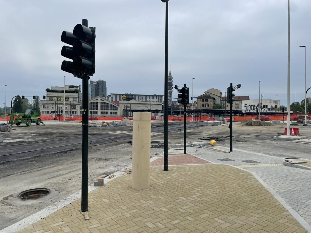 Lo stato attuale del cantiere, abbastanza avanzato, da già l’idea di come sarà il nuovo incrocio, dotato di semafori intelligenti progettati per smaltire il traffico veicolare che connette 6 arterie importantissime, tra cui C.so Principe Oddone, C.so Venezia, C.so Vigevano, Via Cecchi.