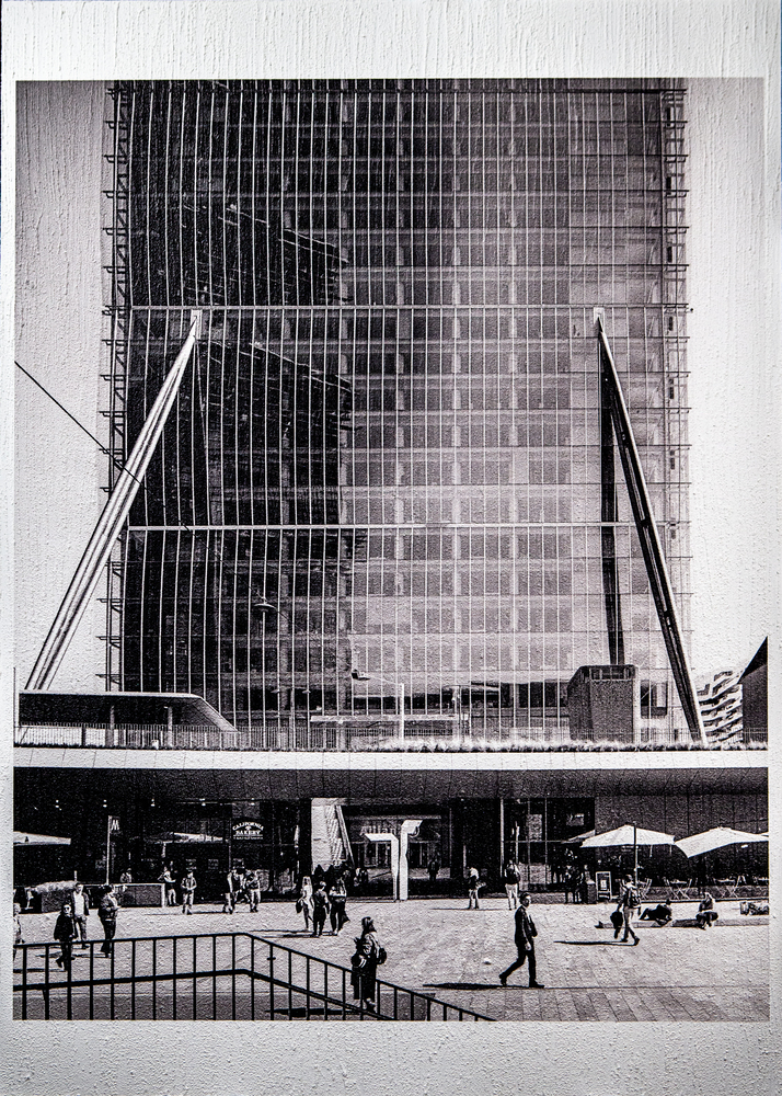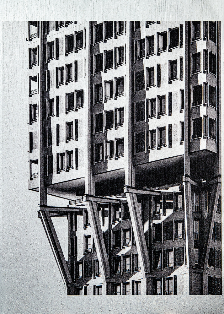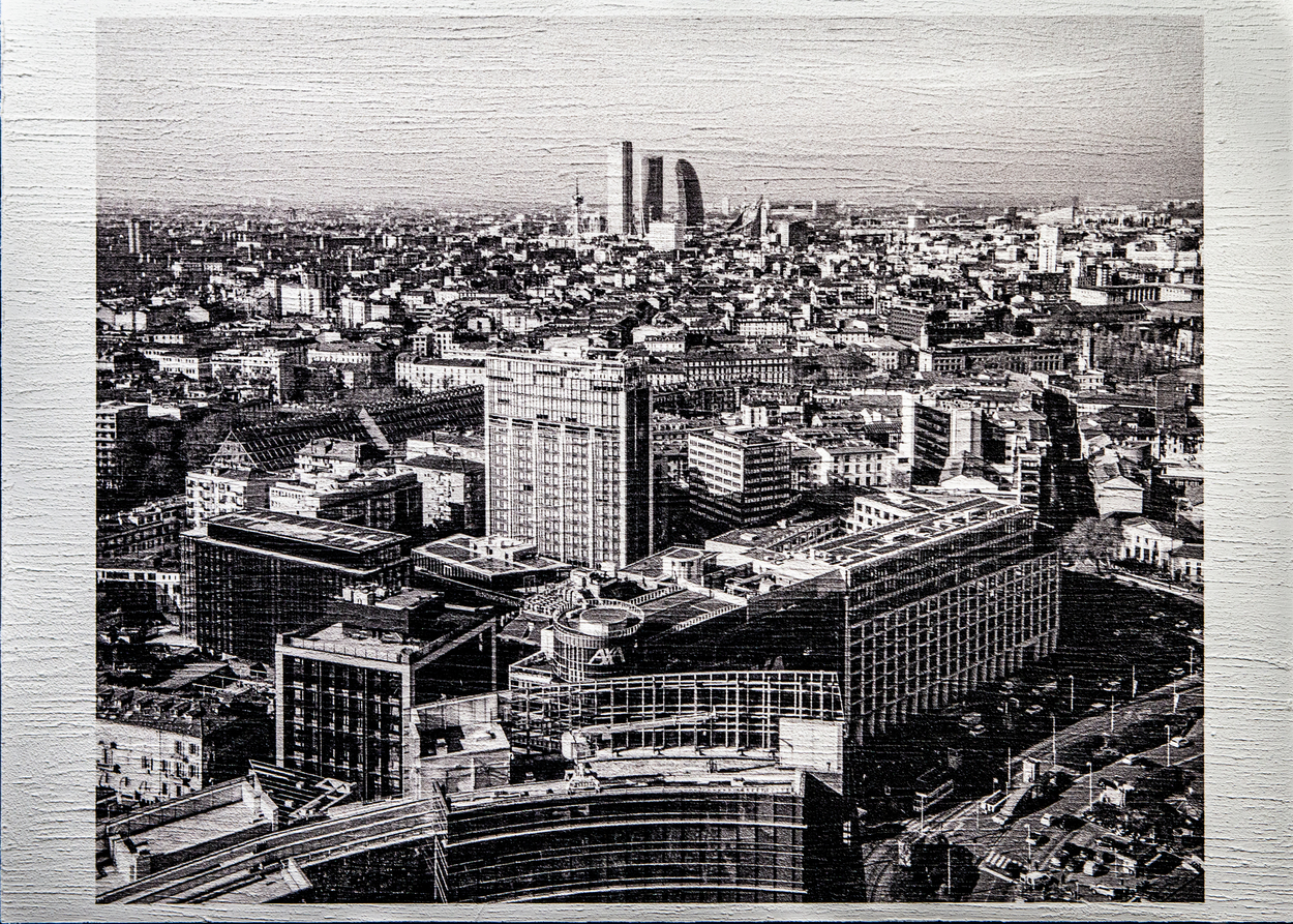 Per Milano, il lavoro si concentra su dettagli e stratificazioni che evitano l’immagine più canonica della città: dalla Torre Velasca, riletta attraverso i suoi elementi strutturali, fino agli scenari contemporanei tra Fondazione Prada, piazza Gae Aulenti, il Belvedere di Palazzo Lombardia e CityLife. Ne emerge una città fatta di volumi sovrapposti e funzioni che convivono, dove il cemento agisce come infrastruttura silenziosa ma continua.