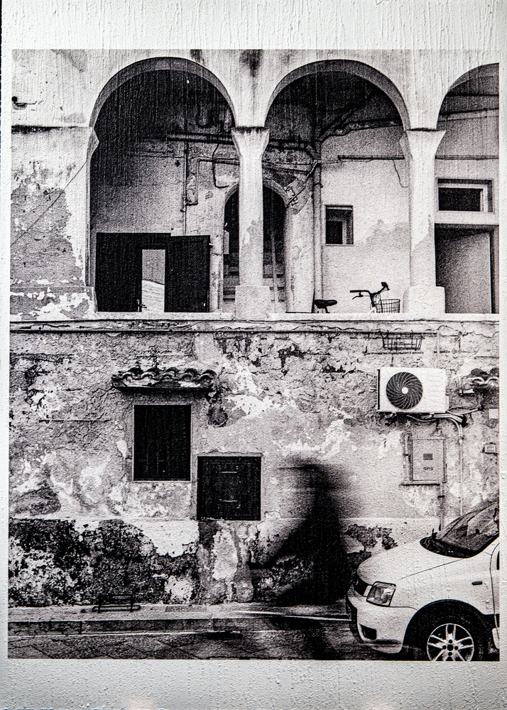 Al centro della mostra ci sono 13 scatti in bianco e nero, realizzati prevalentemente nelle ore dell’alba o del tramonto, momenti in cui la luce enfatizza la matericità delle superfici e le texture delle architetture. Le immagini, firmate da Davide Canella, mettono in relazione Milano e Bari attraverso un equilibrio costante tra ambiente, costruito e presenza umana.